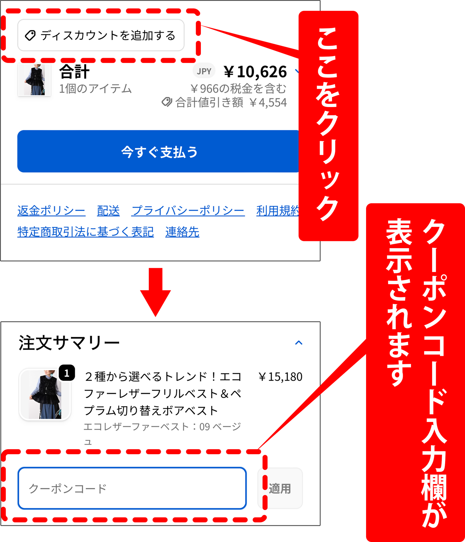 「クーポンコード」の入力欄が表示されます。