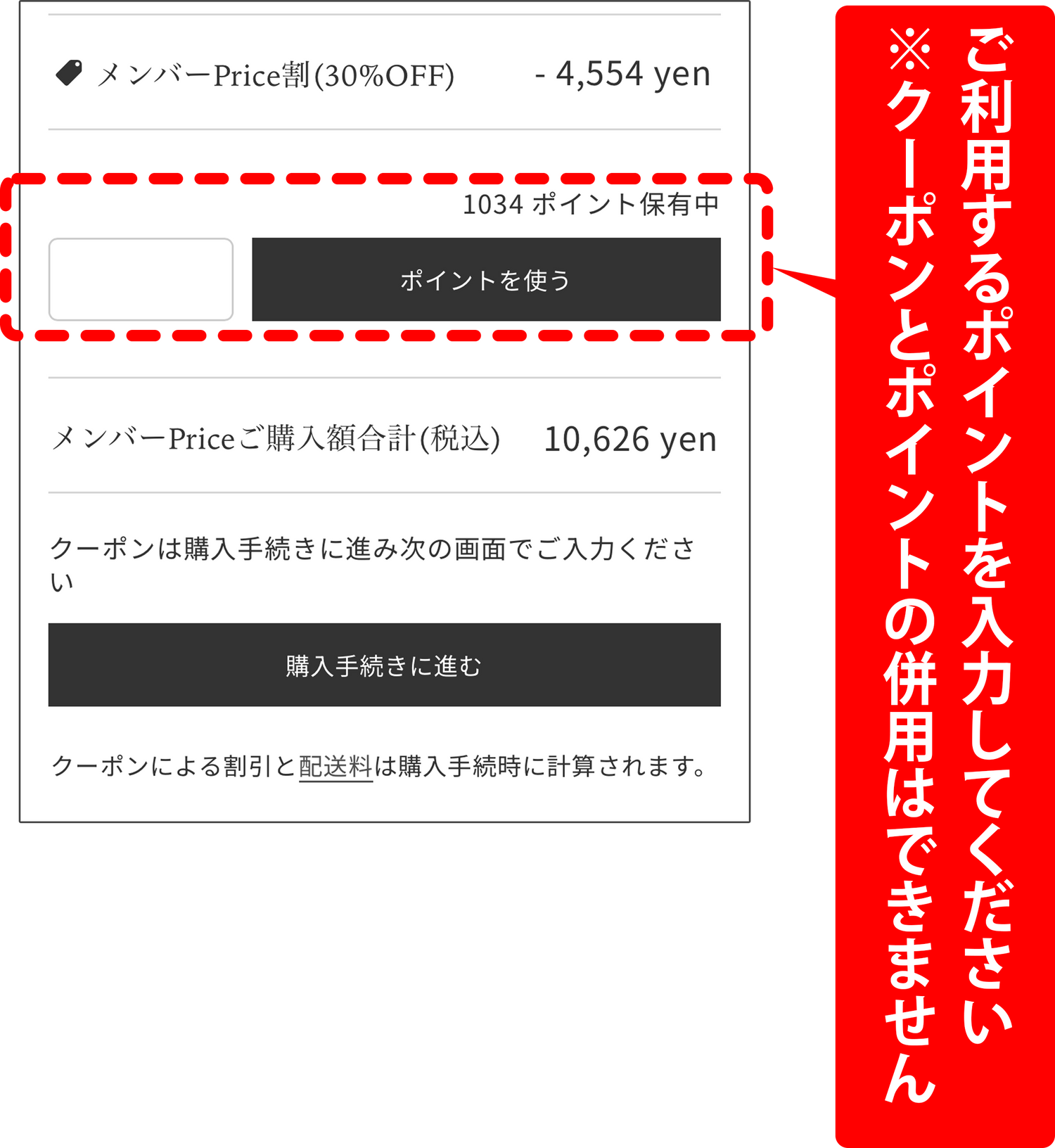 ※クーポンご利用予定の場合、ポイントとの併用はできませんのでご注意ください。