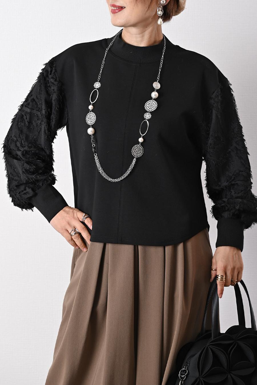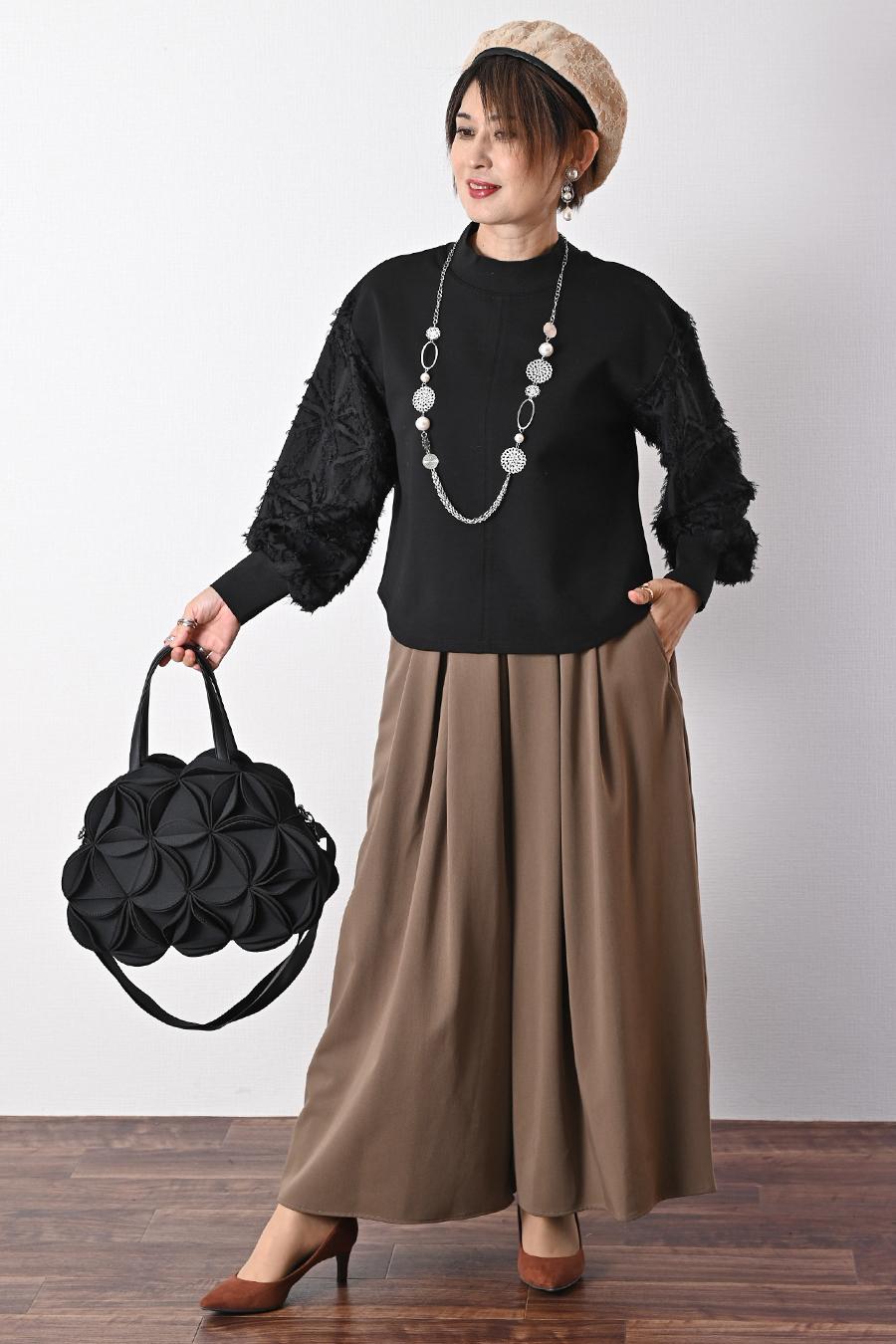タックスリーブプルオーバー+軽量タック&ギャザー フレアスカート2点セットコーデ