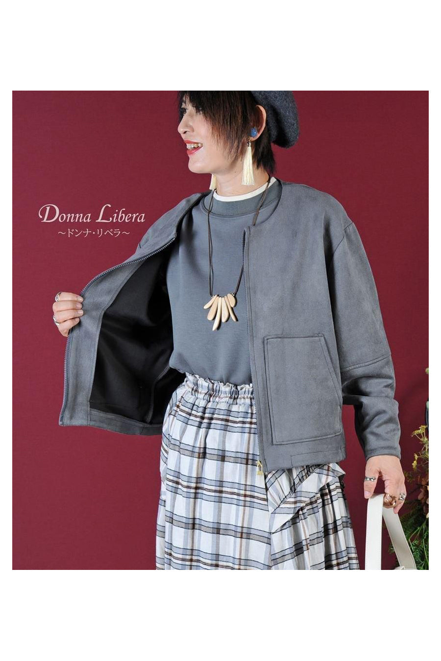 ソフトポンチ×タフタ切り替えジャケット+ジャガード多色チェックスカート2点セットコーデ
