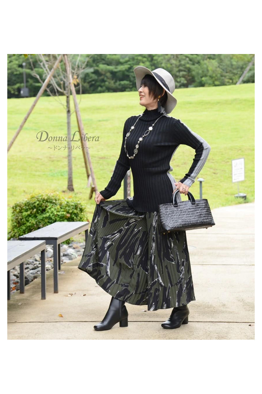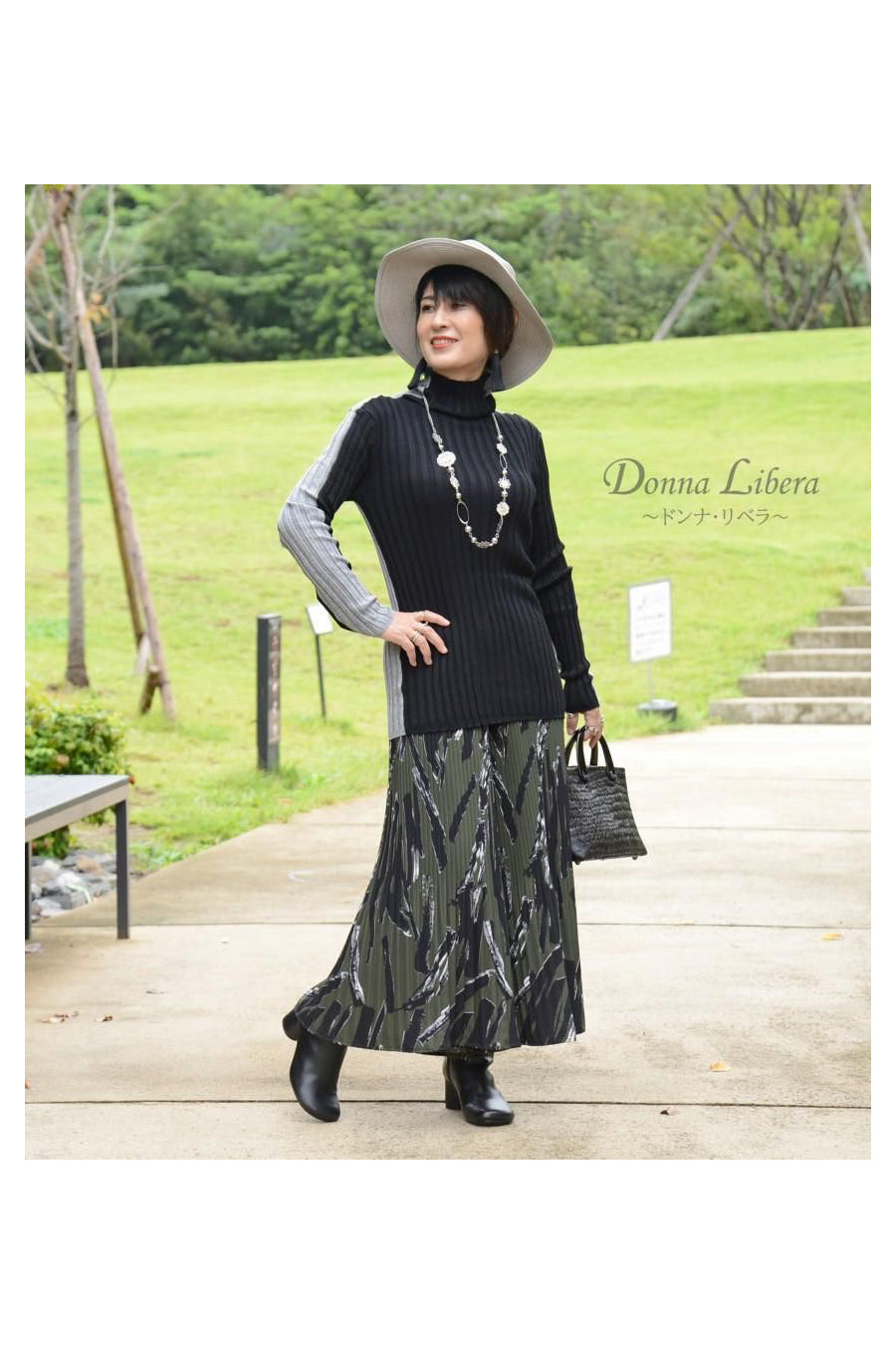 ポンチ&カットジャガードプルオーバー+カットジャガードフレアスカート2点セットコーデ