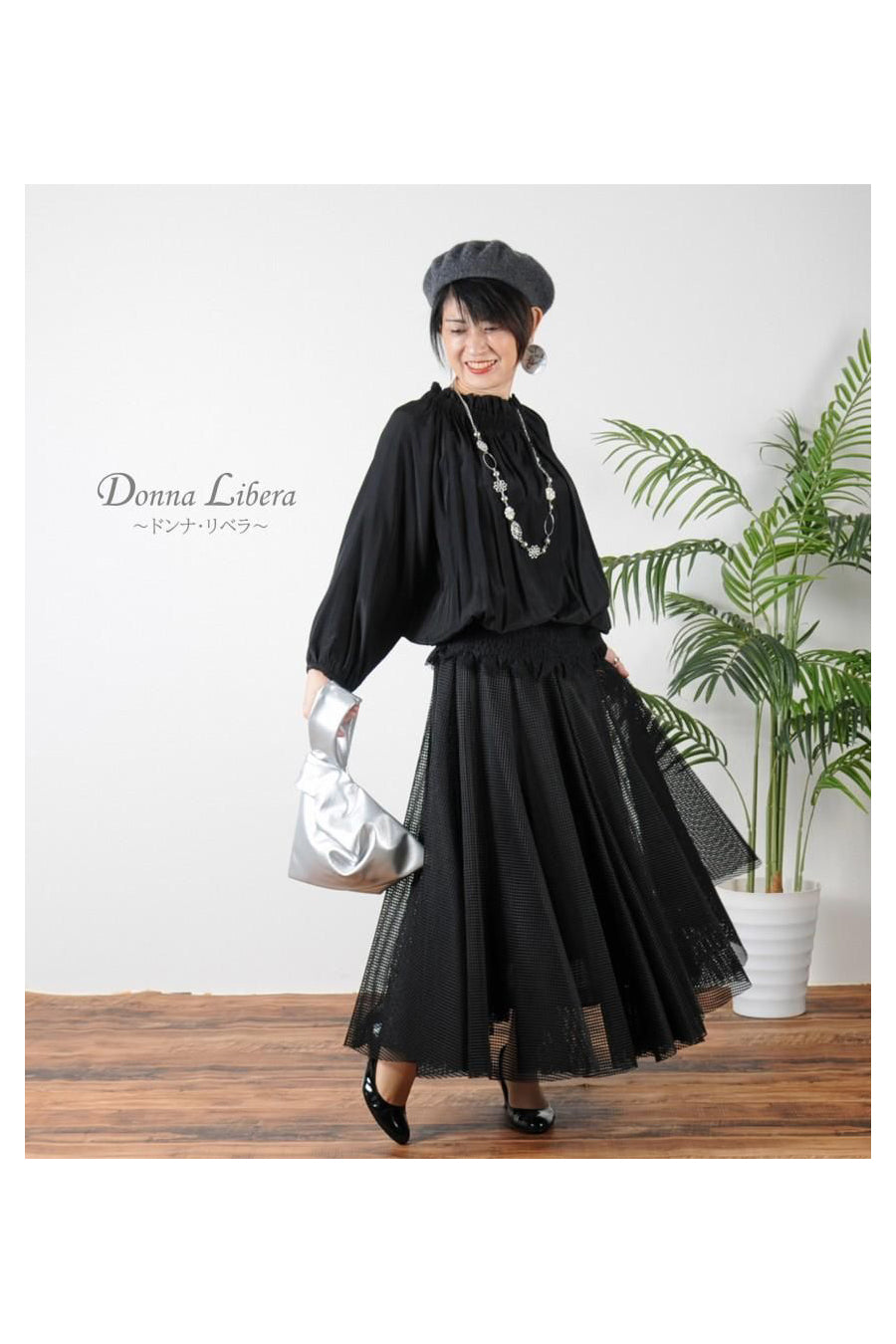 レーススリーブブラウス+ストライプチュールフレアスカート2点セットコーデ