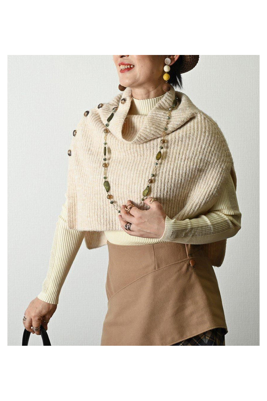 ファンシーヤーンVネックベスト+選べる2種類のインナーカットソー2点セットコーデ