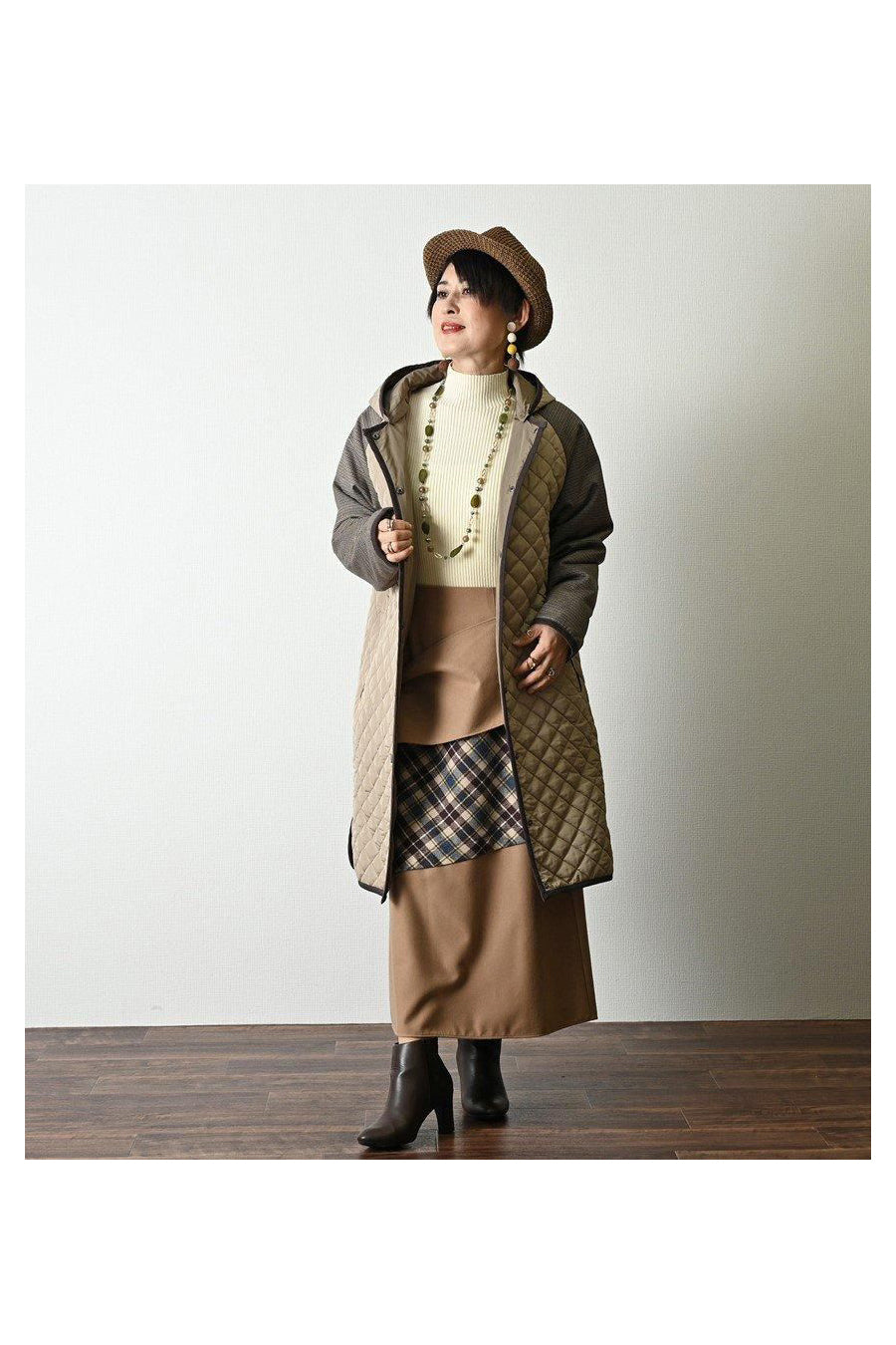 大人の為の上質パーカー+バイヤスチェック×無地 フレアスカート2点セットコーデ