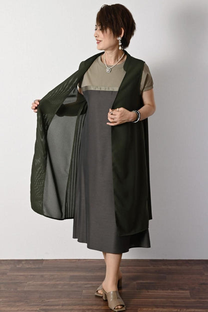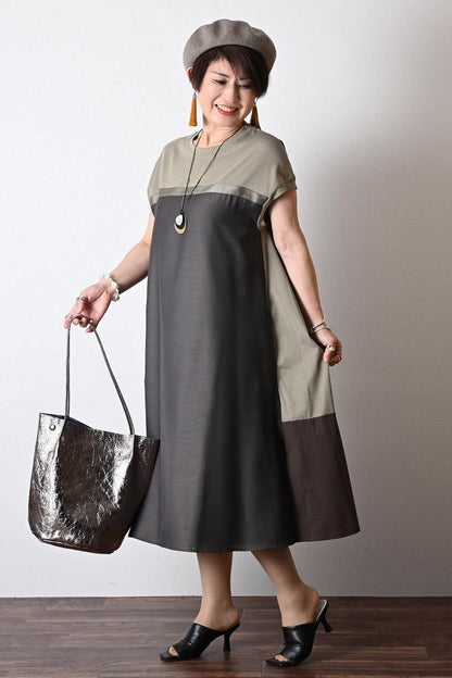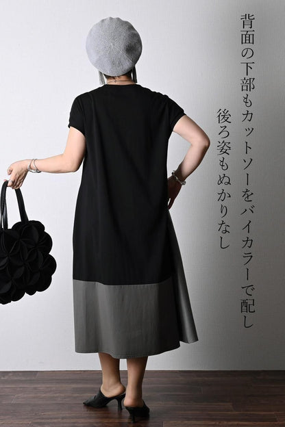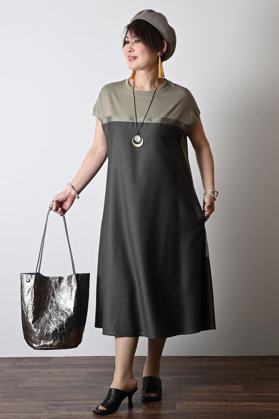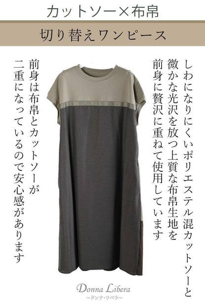 オンでも着られる品の良さ!カットソー×布帛切り替えワンピース