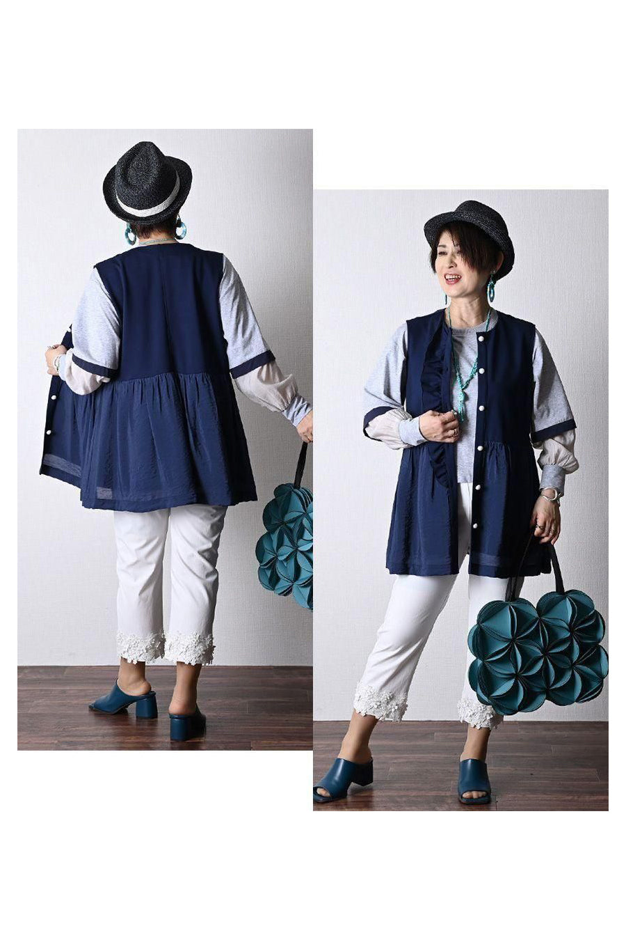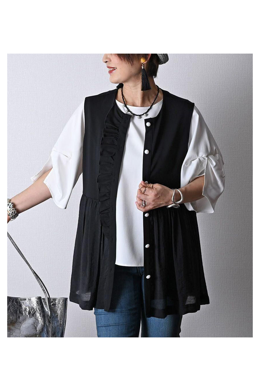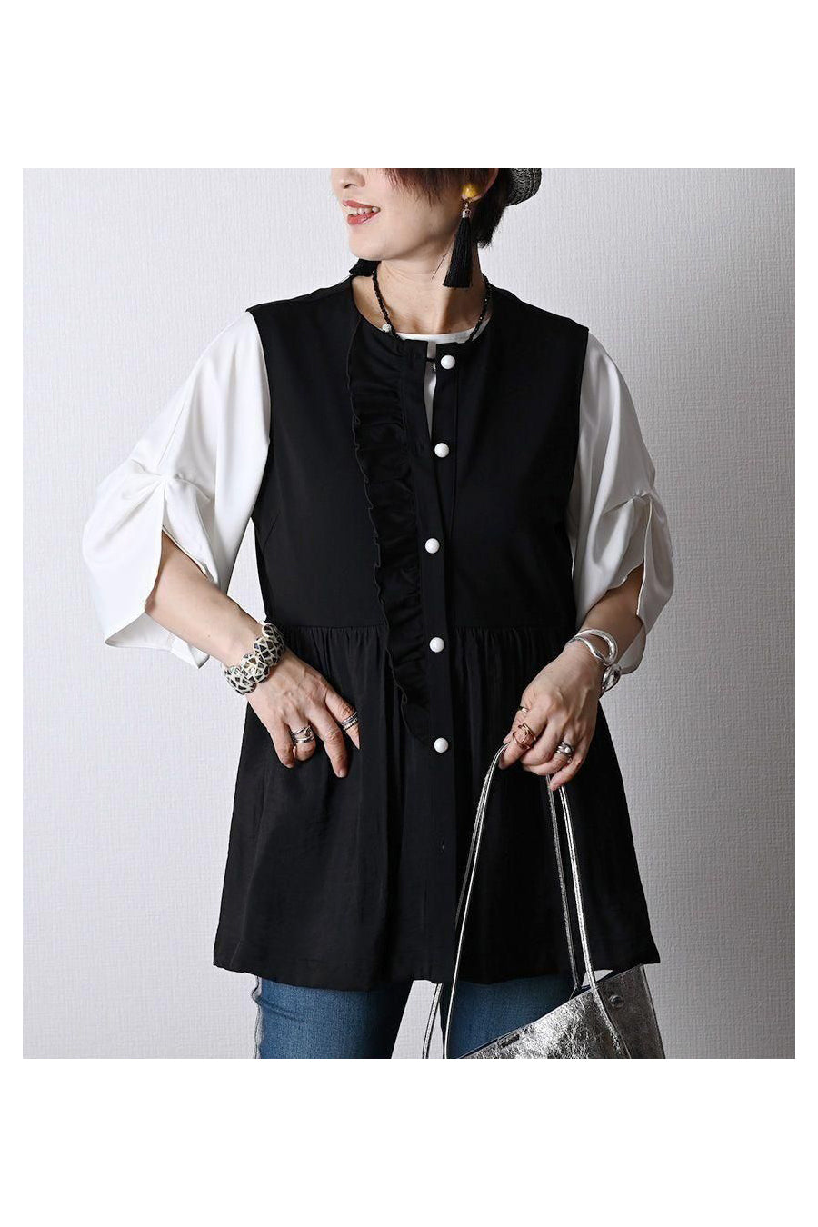 気になる部分を可愛くカバー!異素材切り替え フリルベスト