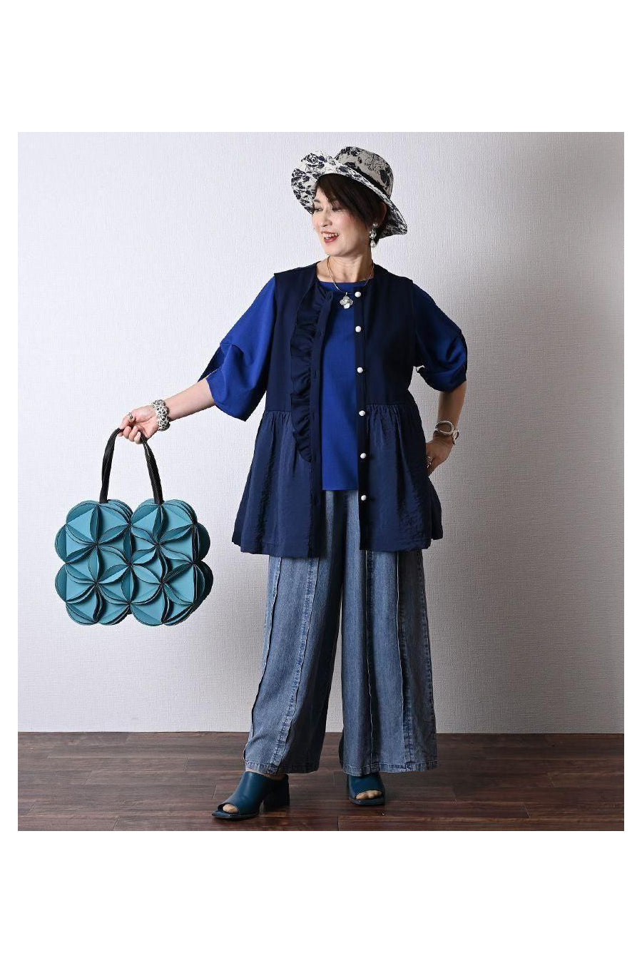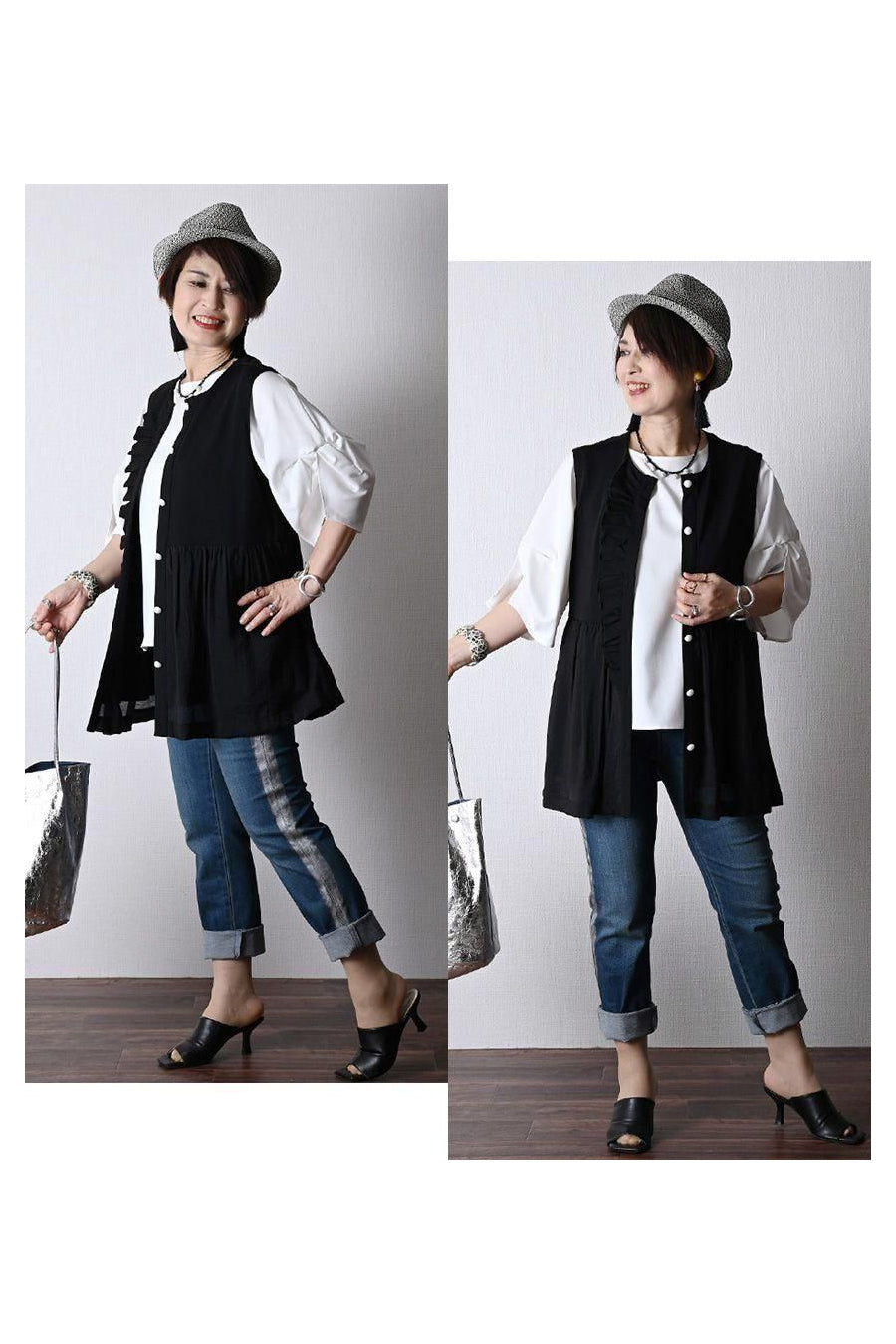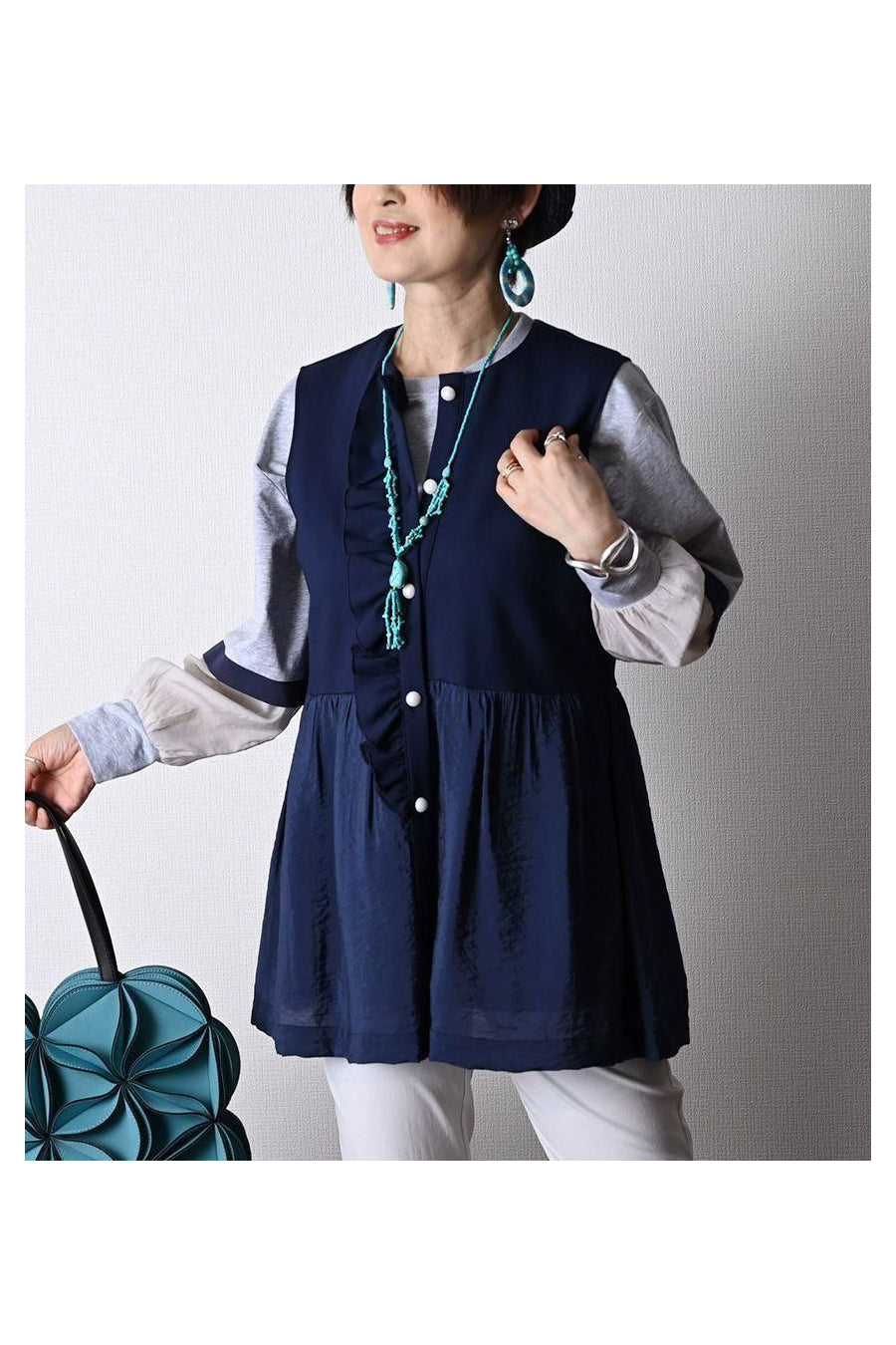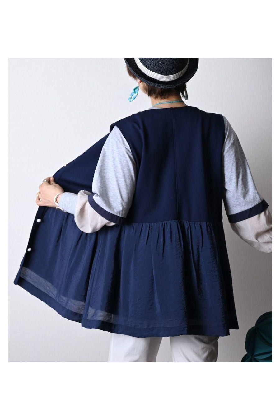 気になる部分を可愛くカバー!異素材切り替え フリルベスト