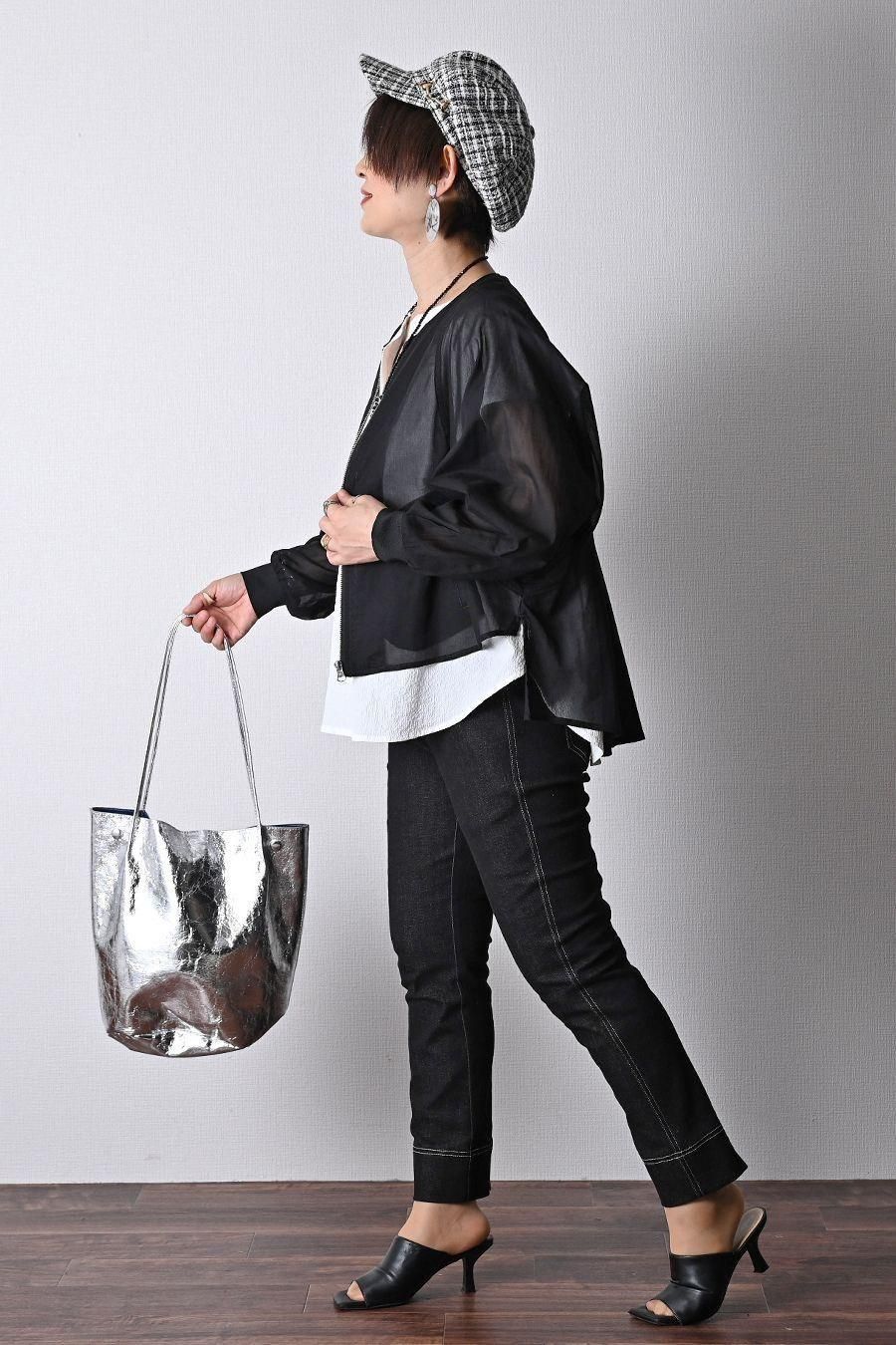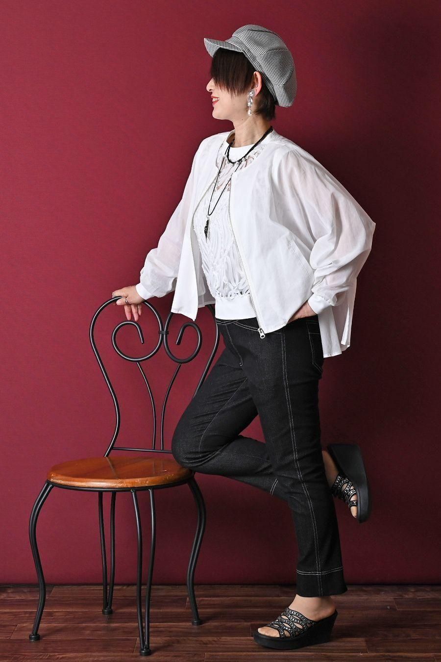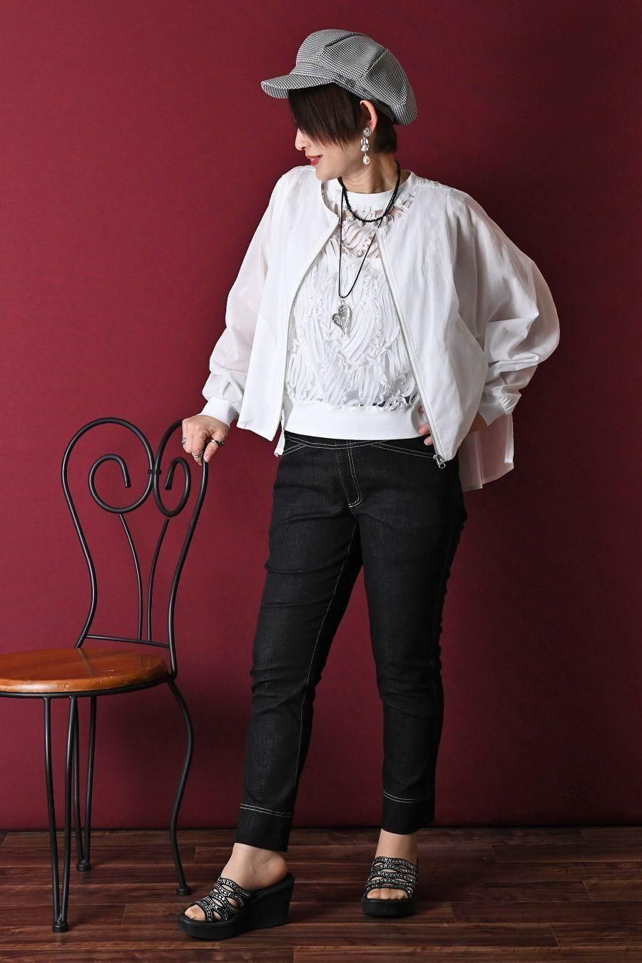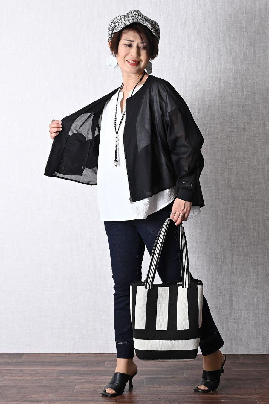 大人のバルーンブルゾン+先染めジャガード多色チェックスカート2点セットコーデ