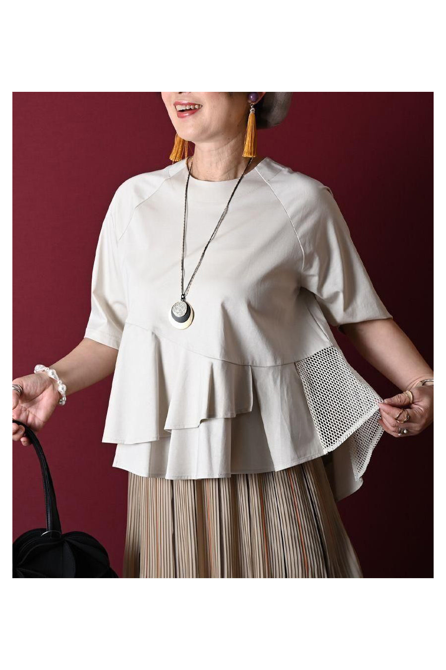 『気になる』をcuteにカバー!シルケットコットン フリル&メッシュカットソー