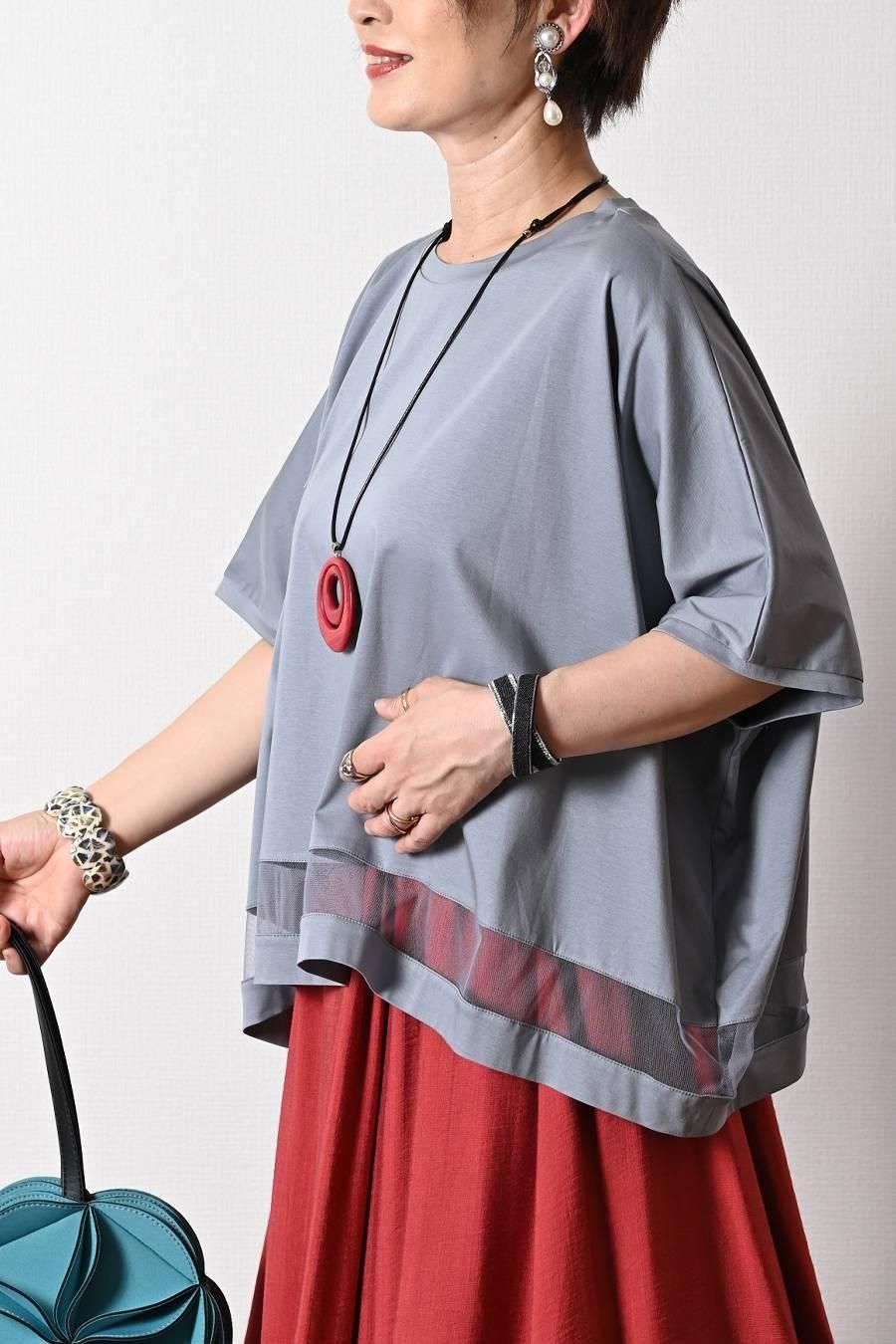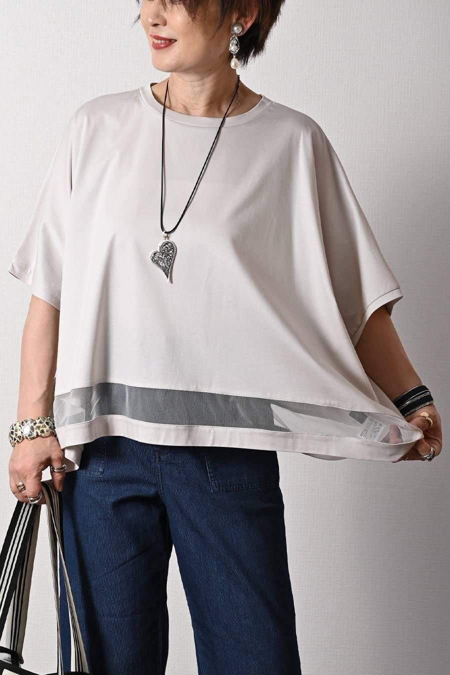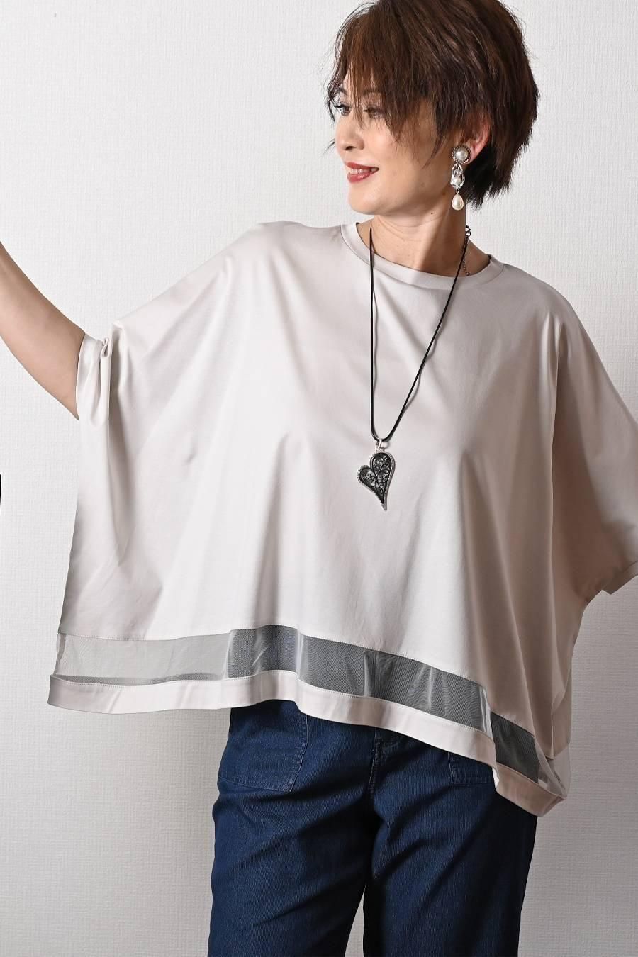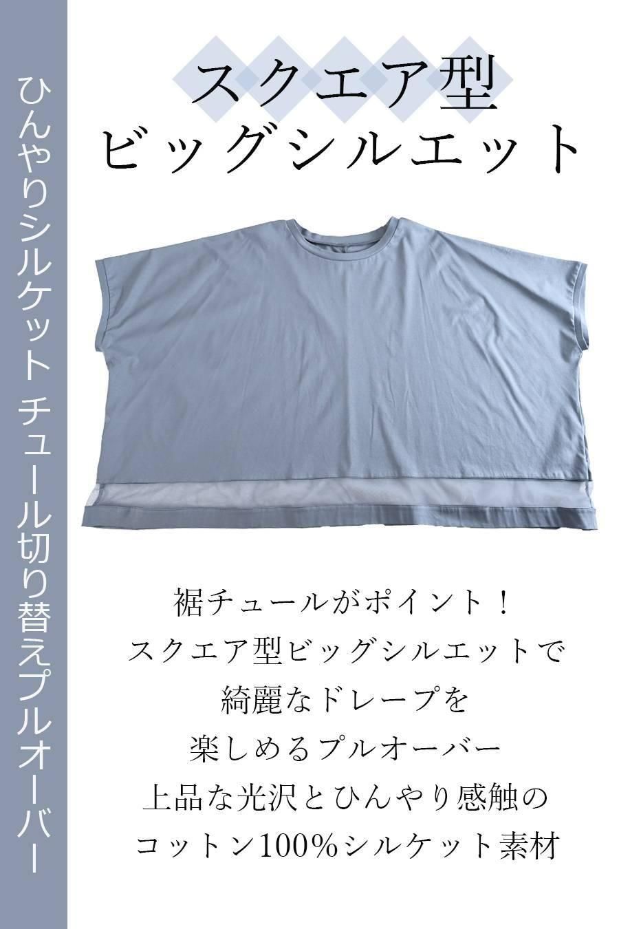 スクエア型ビッグシルエット!ひんやりシルケット チュール切り替えプルオーバー