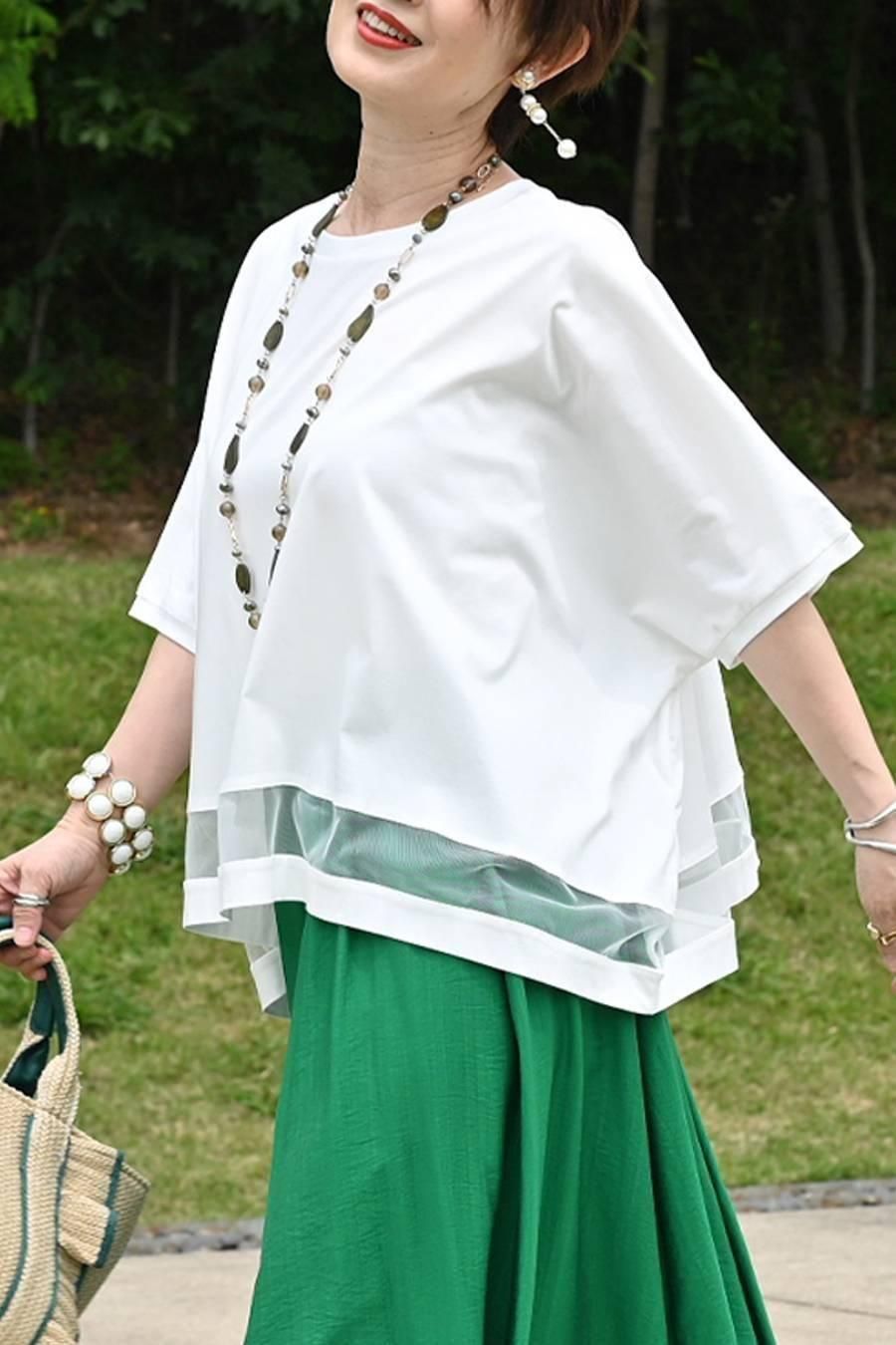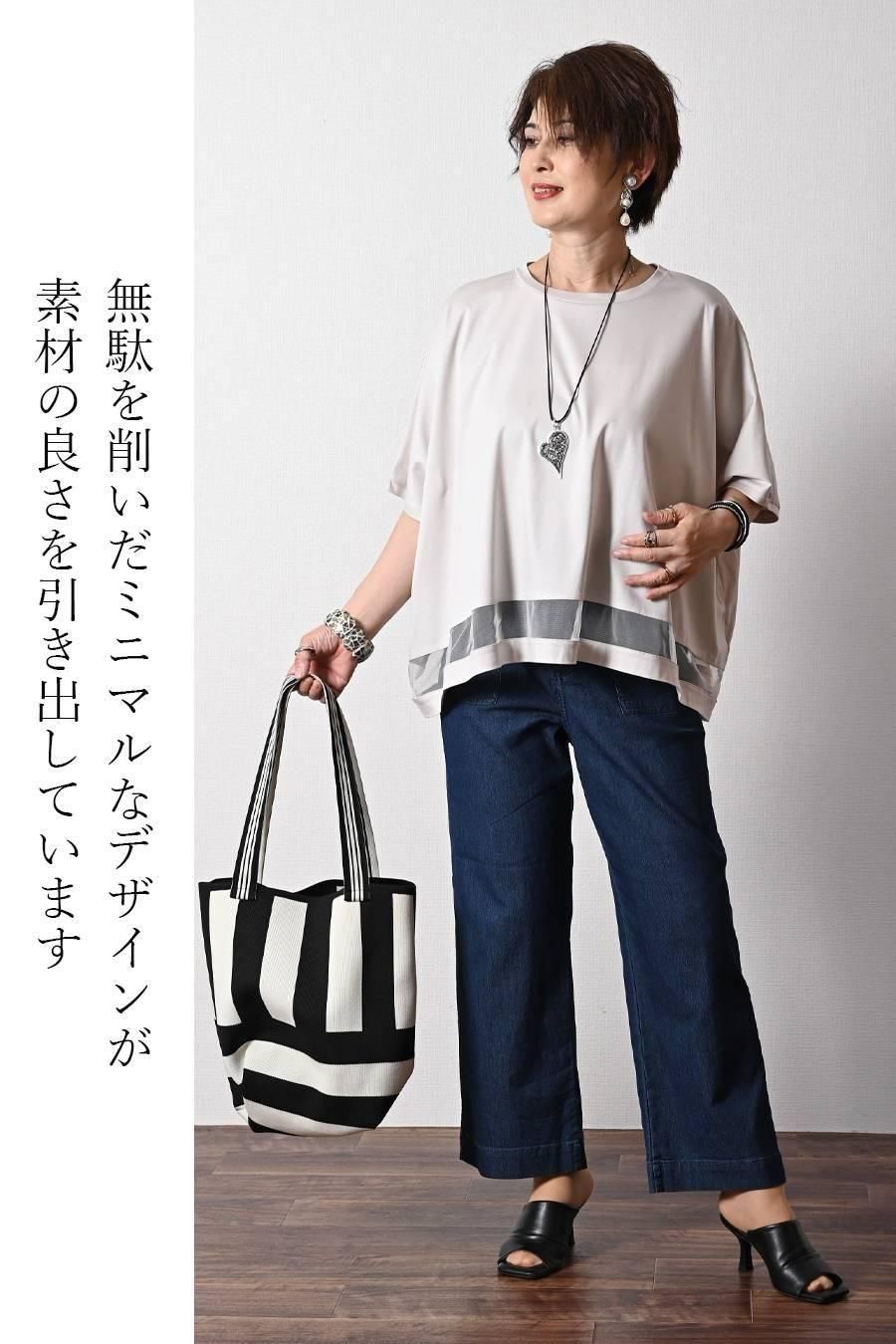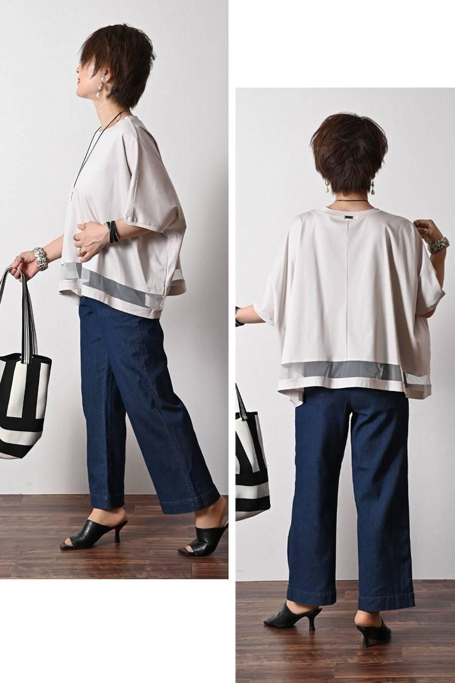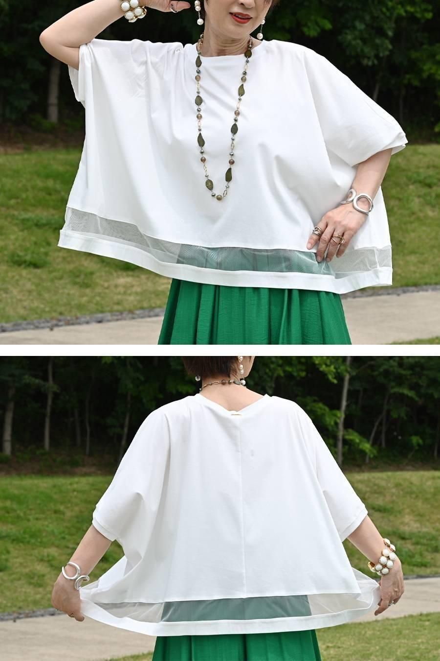 スクエア型ビッグシルエット!ひんやりシルケット チュール切り替えプルオーバー