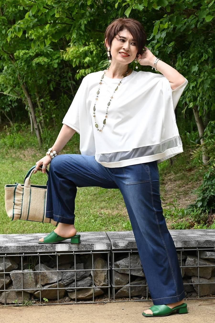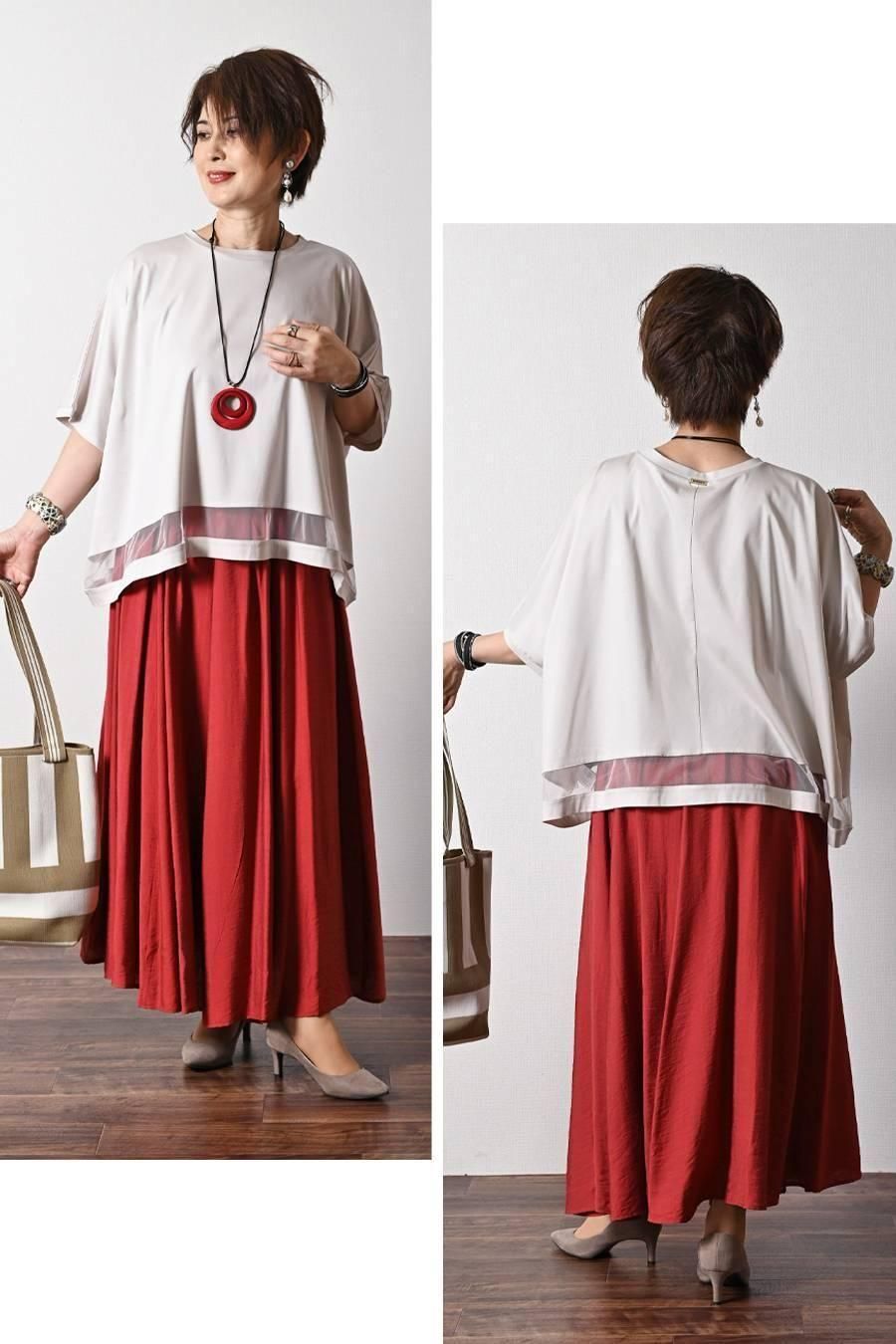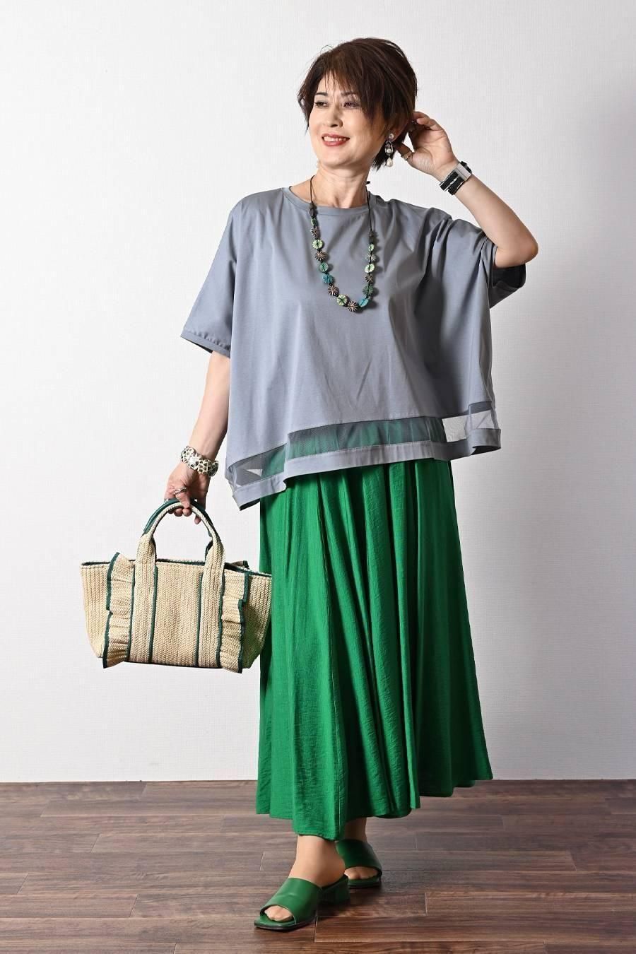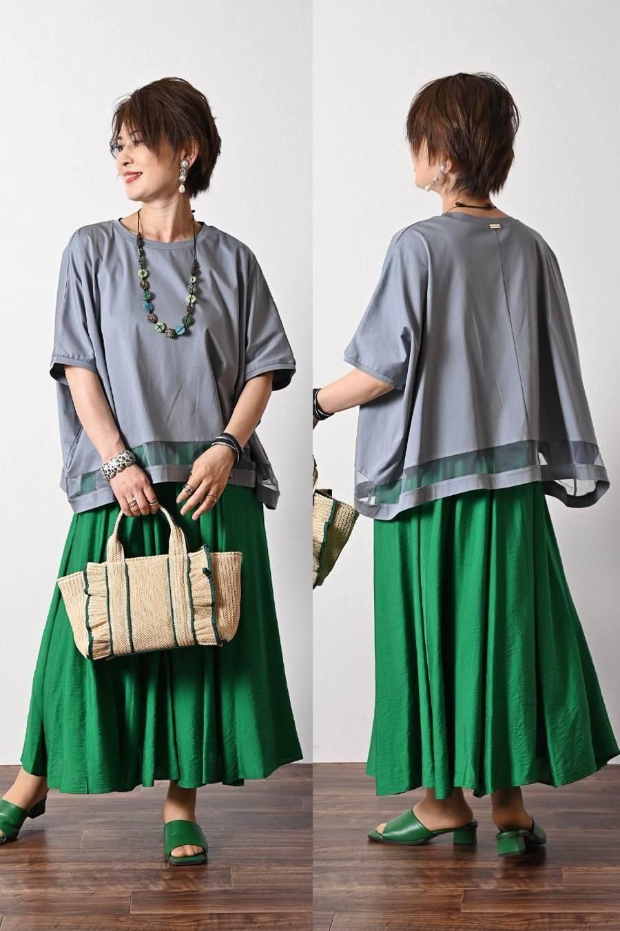 スクエア型ビッグシルエット!ひんやりシルケット チュール切り替えプルオーバー