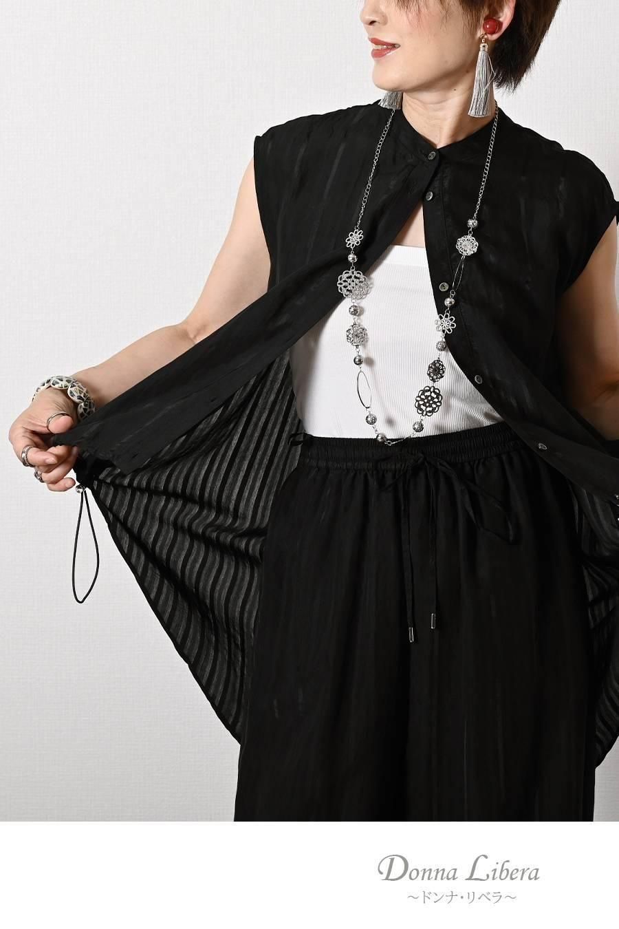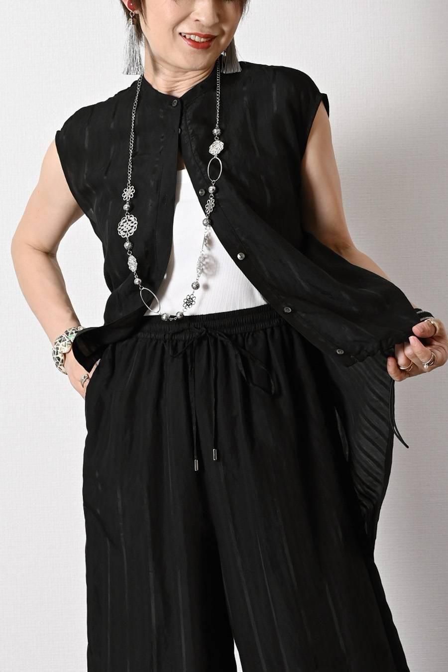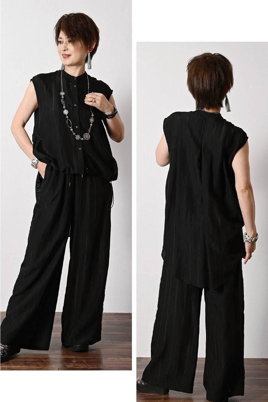 フリンジツィード ショートベスト+超美ドレープ 微起毛ワイドガウチョパンツ2点セットコーデ
