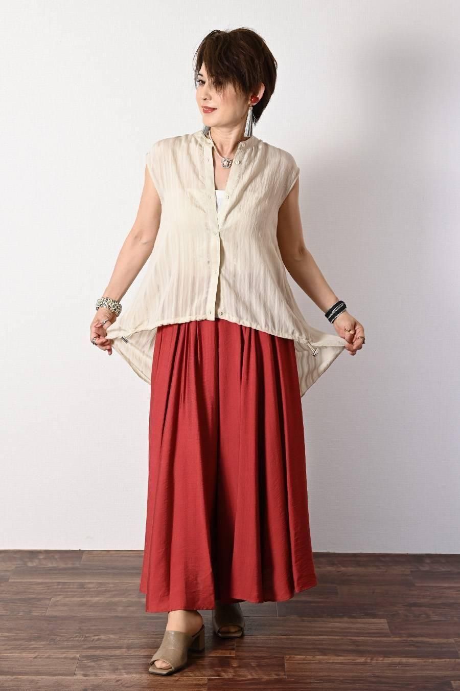 ポンチ&カットジャガードプルオーバー+カットジャガードフレアスカート2点セットコーデ