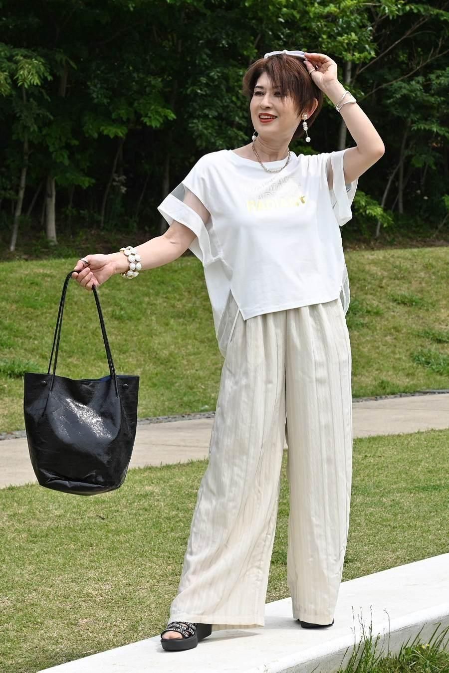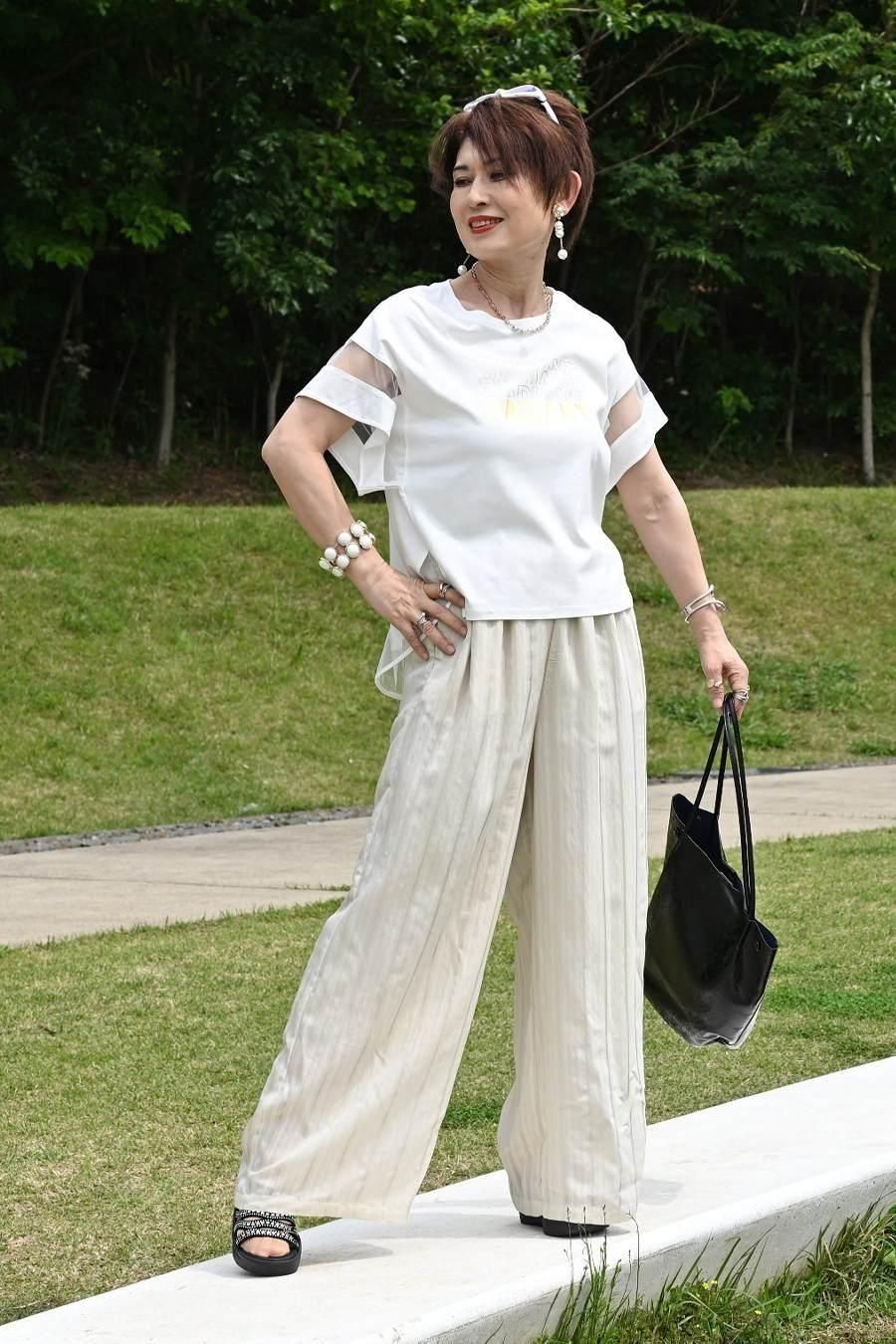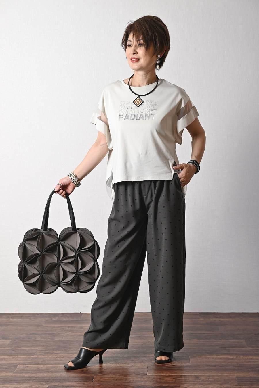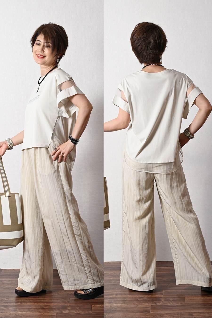 大人の理想の肌見せが叶う!箔プリント&チュール切り替えカットソー