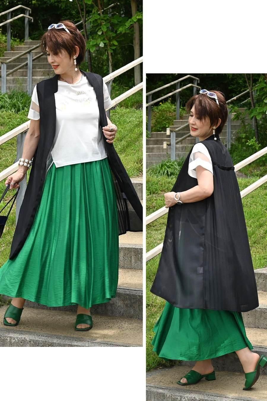 ゆったり柔らかふわり!ソフトポンチ×チュールワンピース