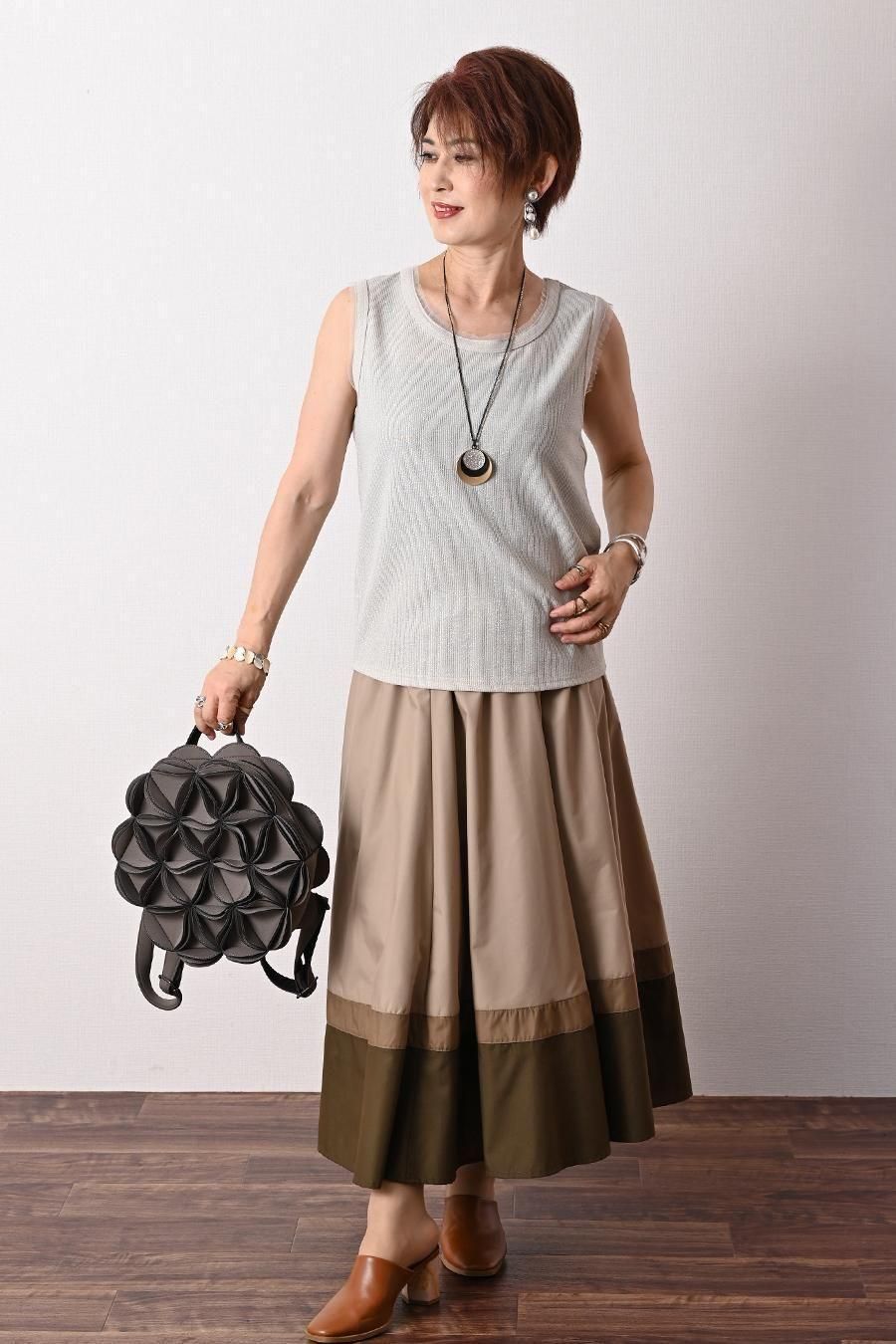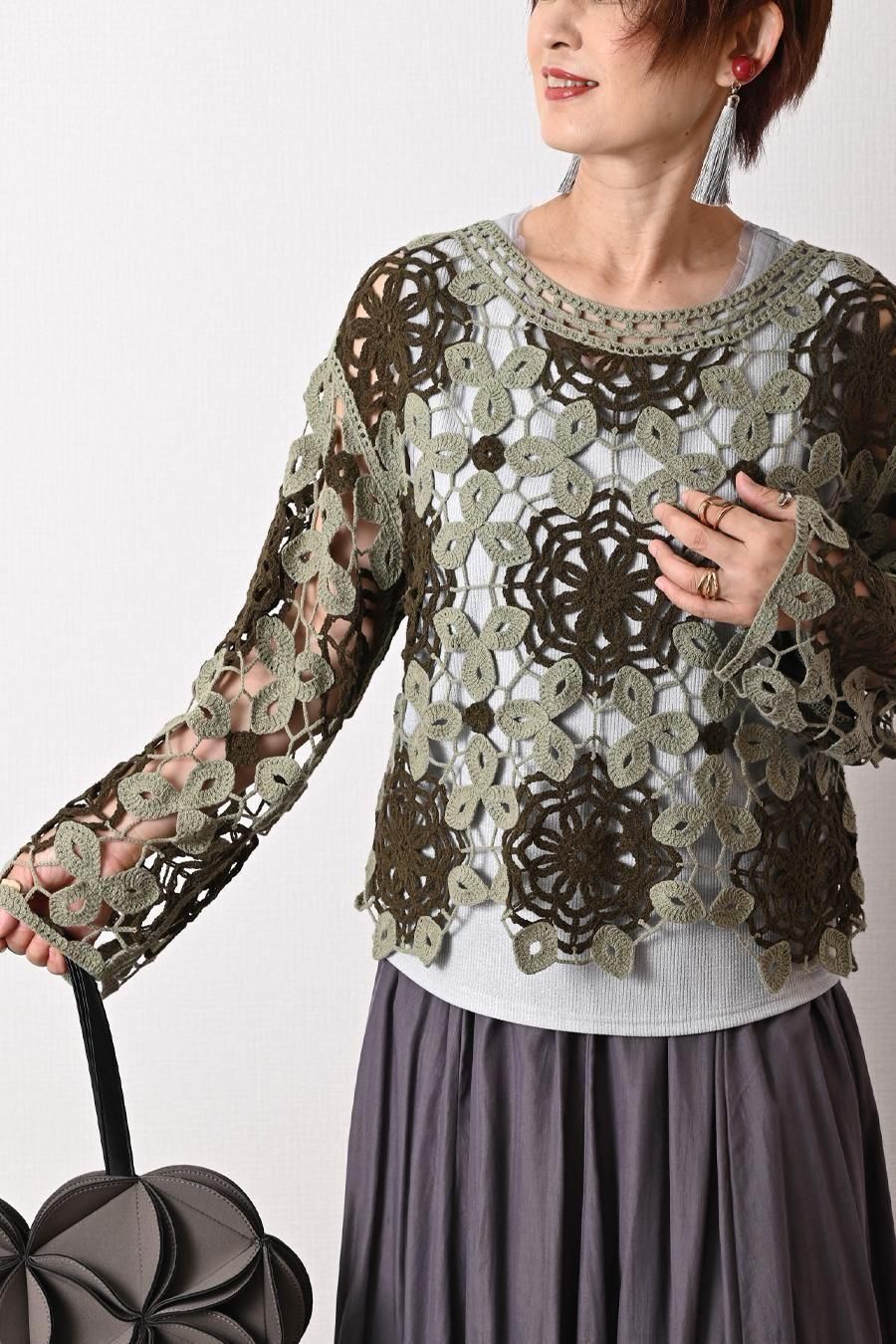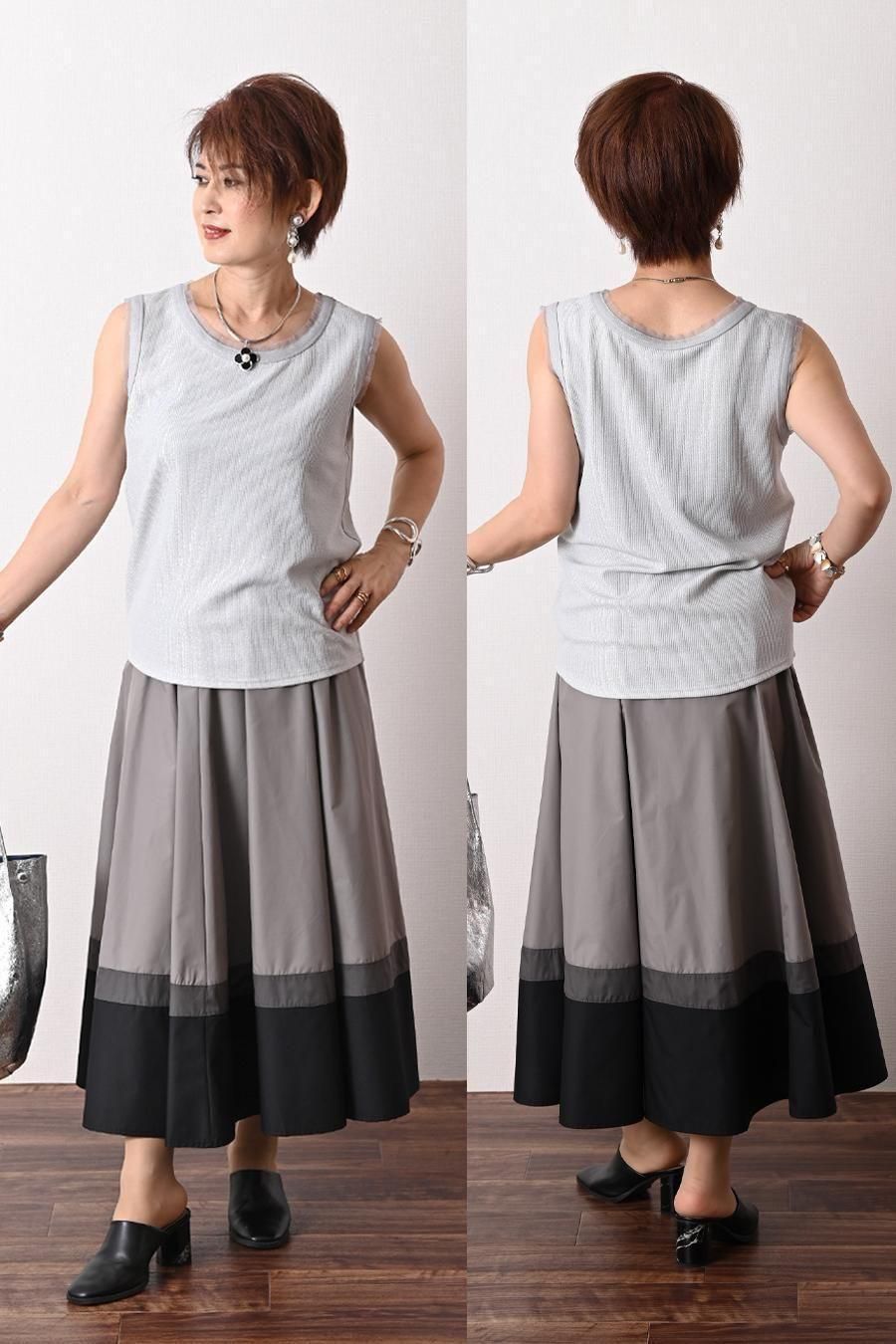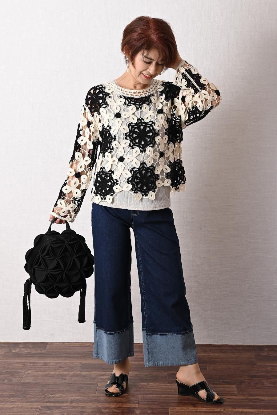 ポンチ&カットジャガードプルオーバー+カットジャガードフレアスカート2点セットコーデ