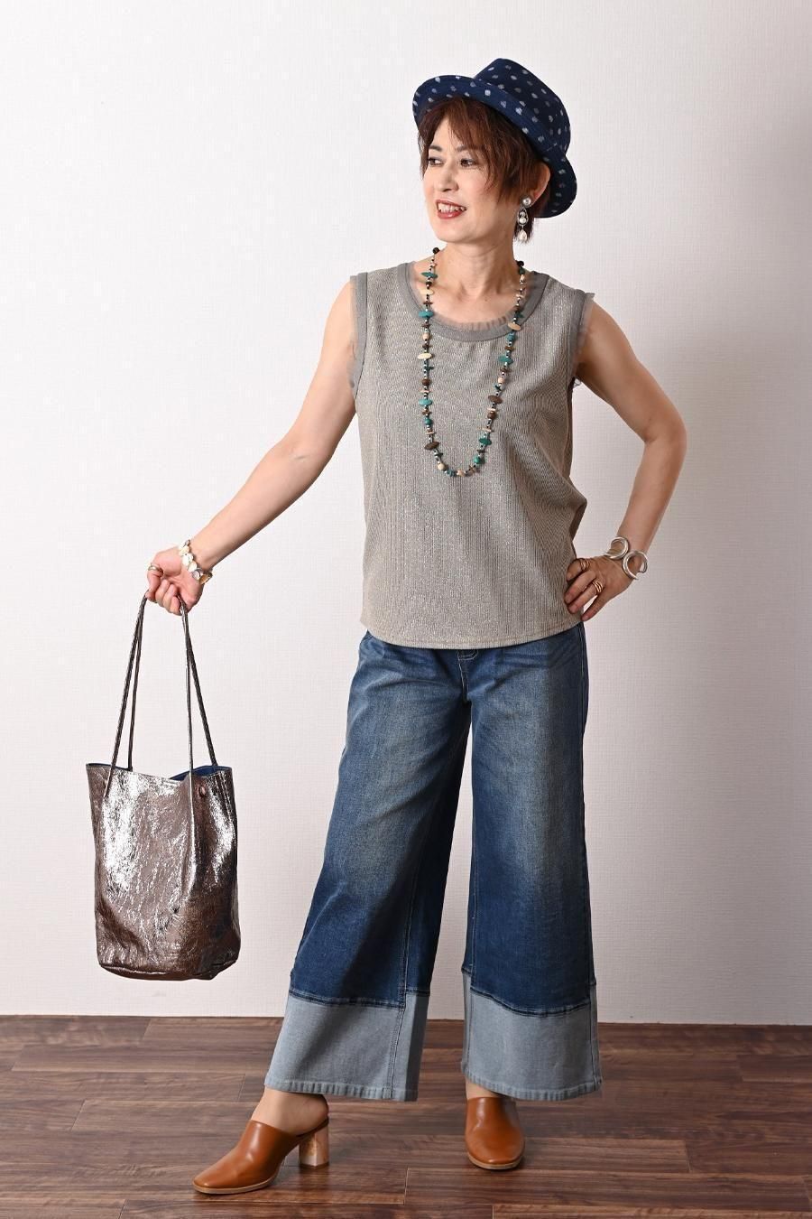 フリンジツィード ショートベスト+超美ドレープ 微起毛ワイドガウチョパンツ2点セットコーデ
