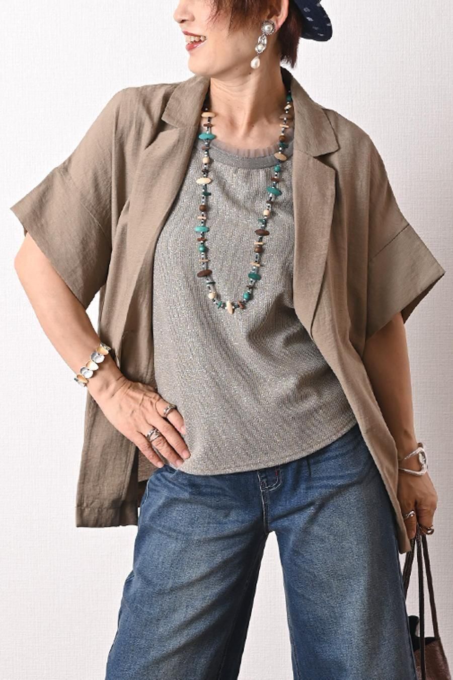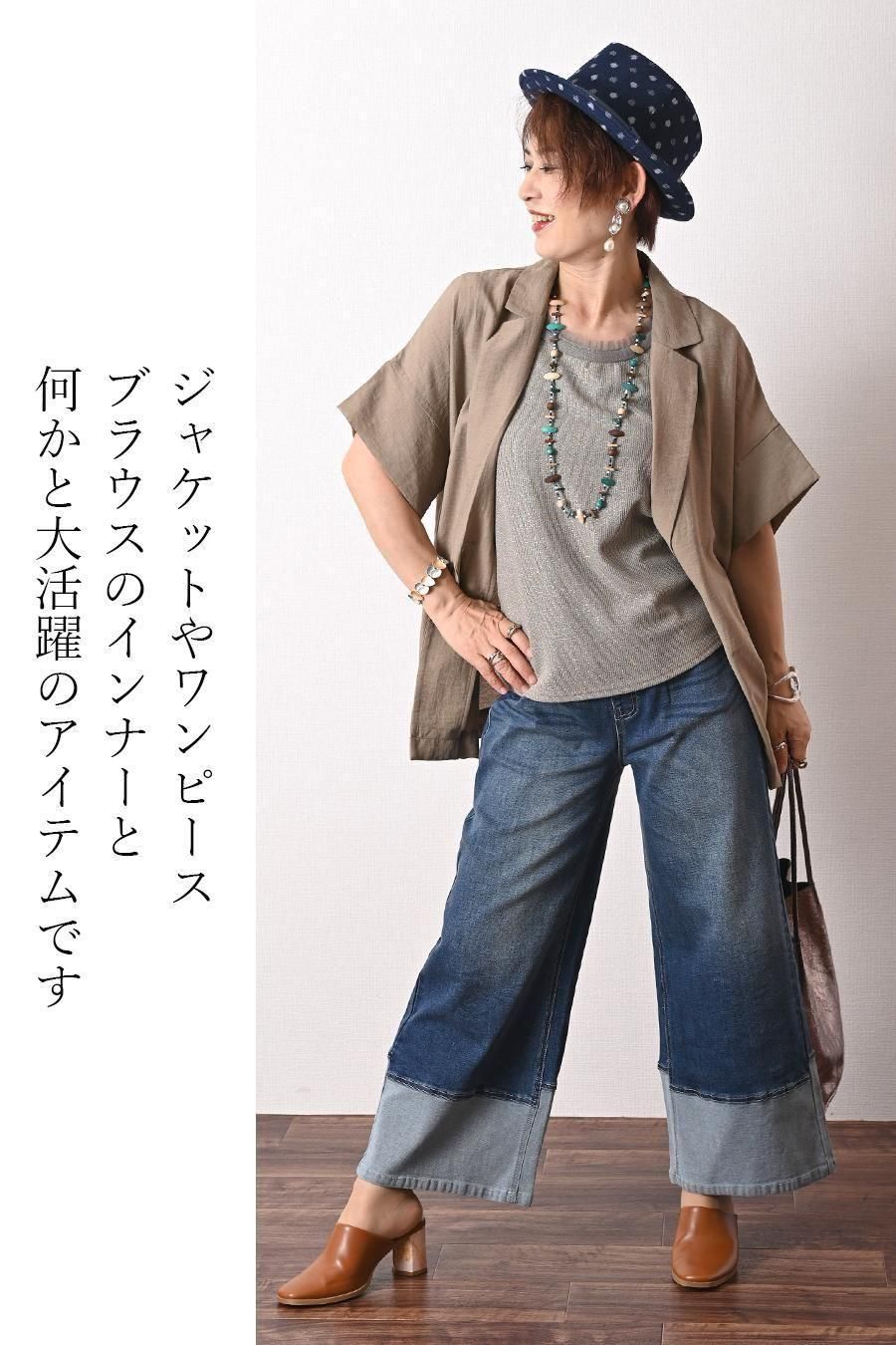 ファンシーヤーンVネックベスト+選べる2種類のインナーカットソー2点セットコーデ