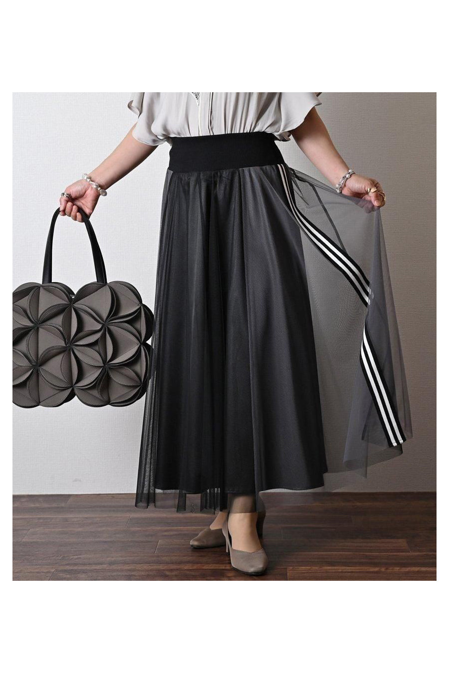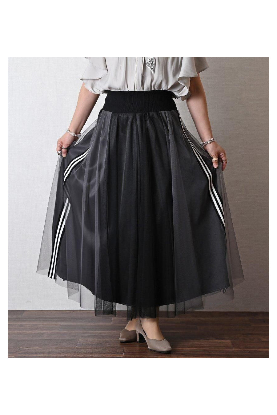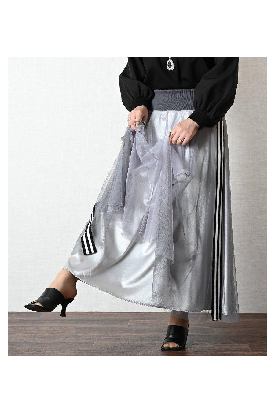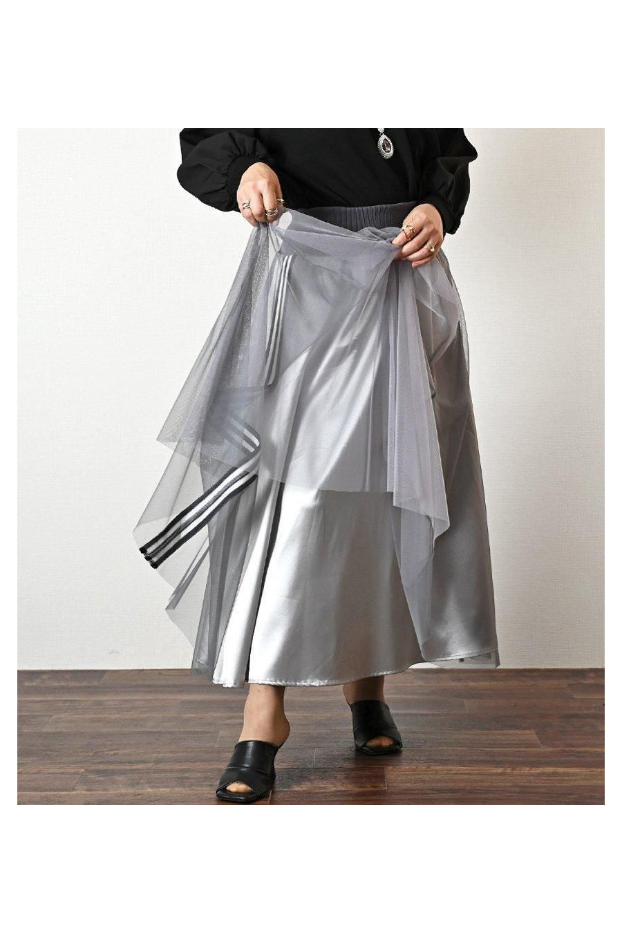 サイドテープシャイニーチュールレイヤードスカート