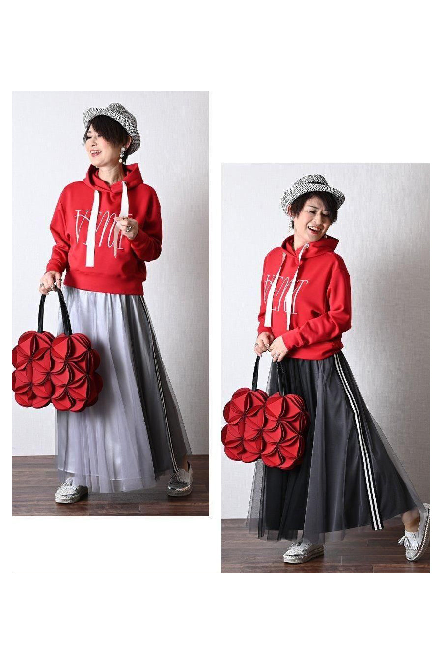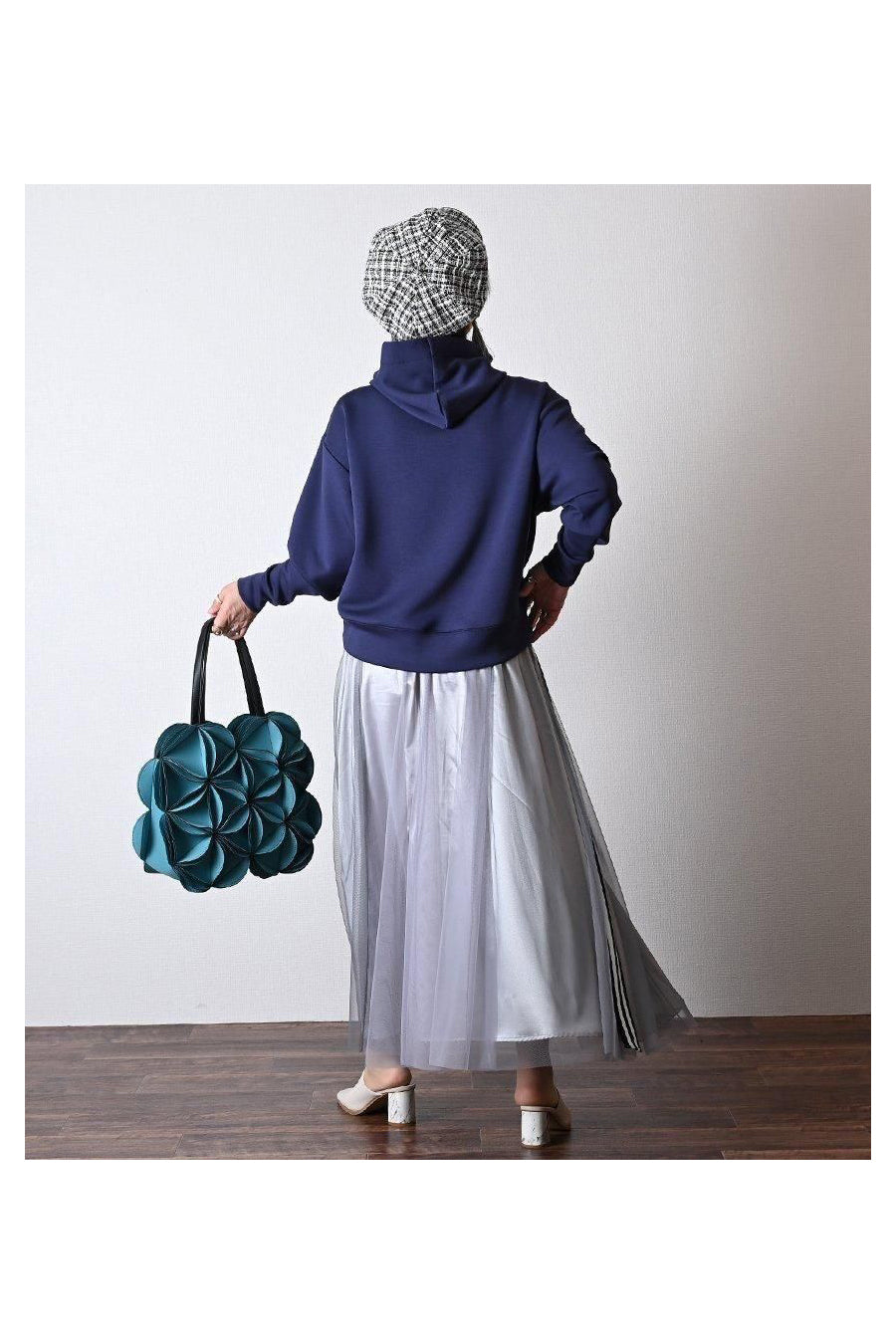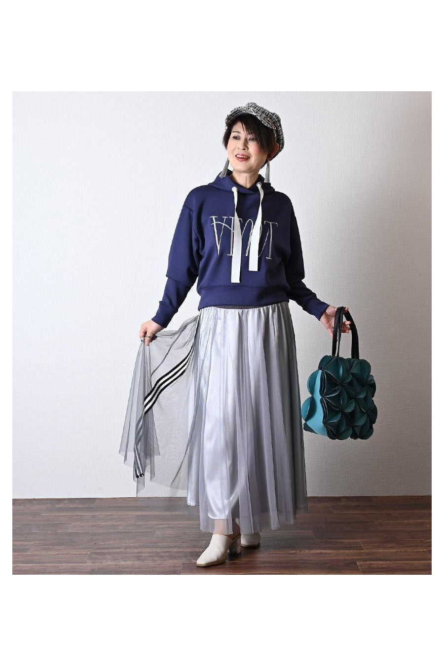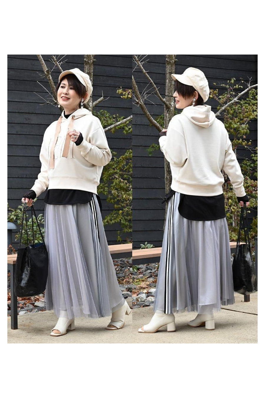 大人の為の上質パーカー+バイヤスチェック×無地 フレアスカート2点セットコーデ