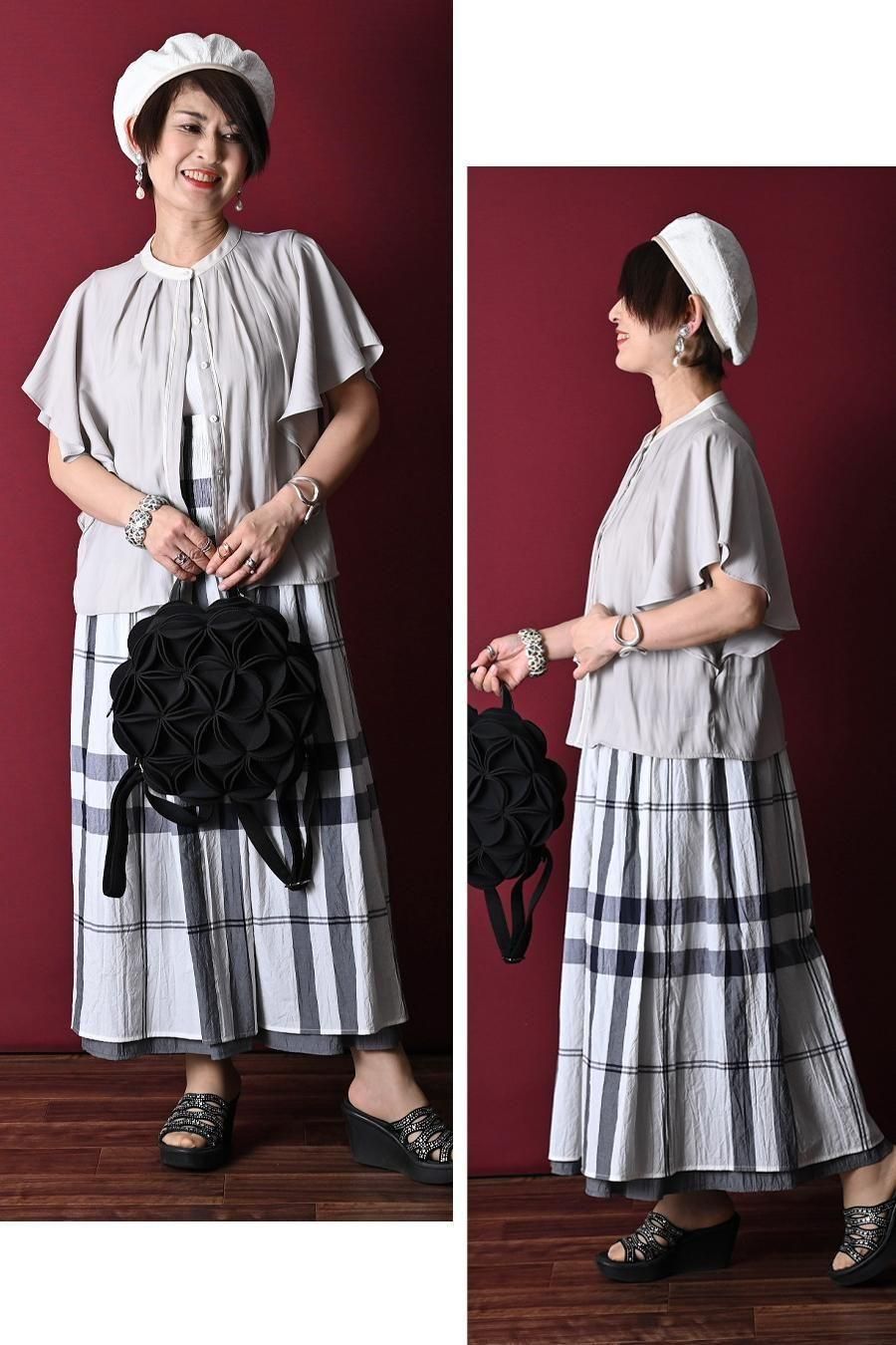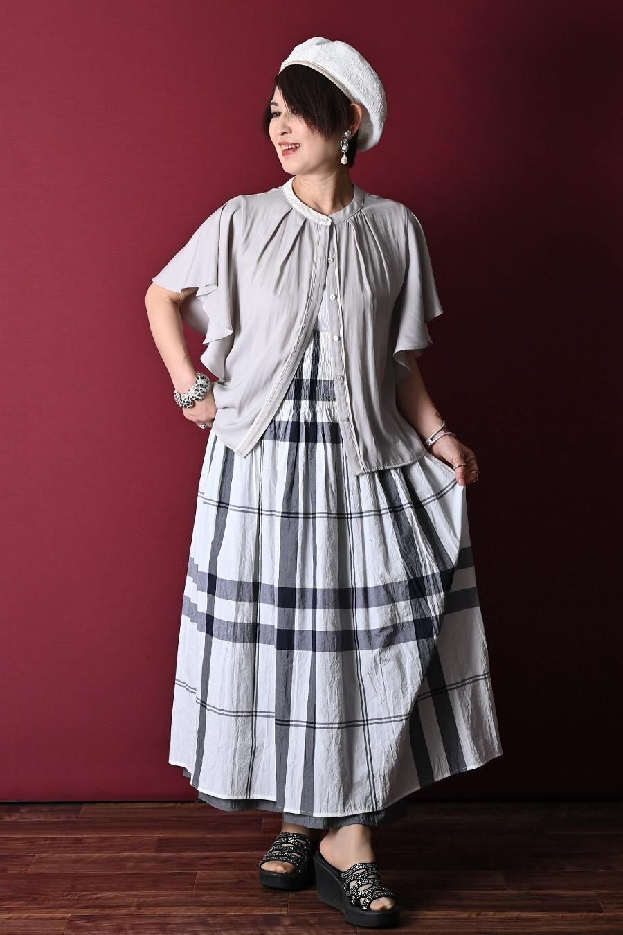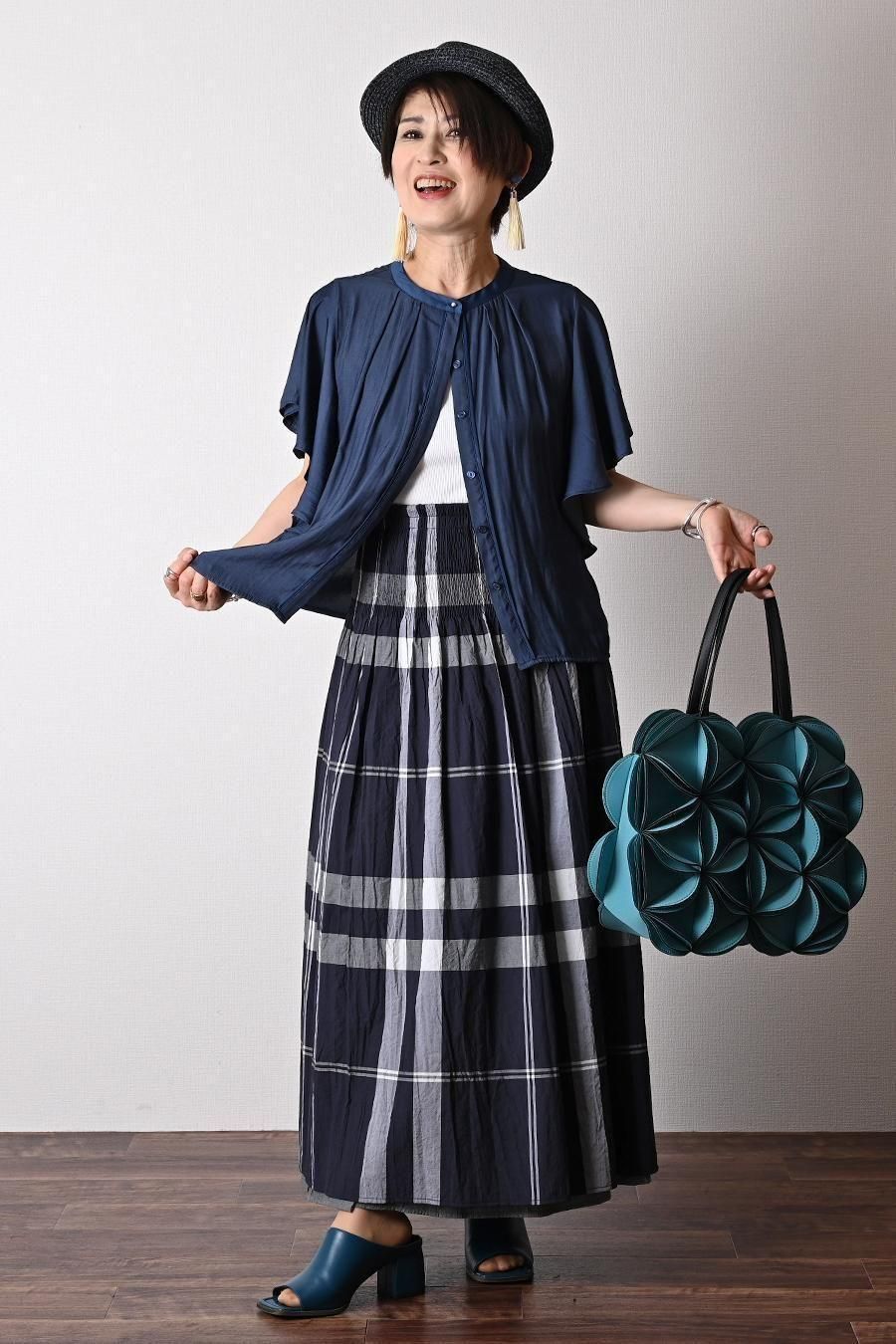 大人のバルーンブルゾン+先染めジャガード多色チェックスカート2点セットコーデ