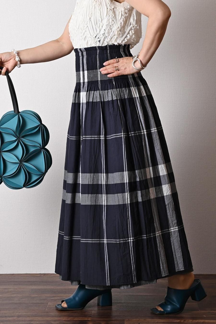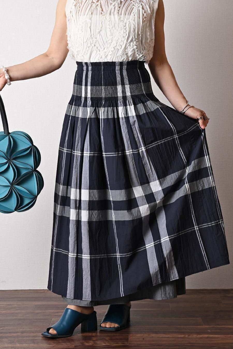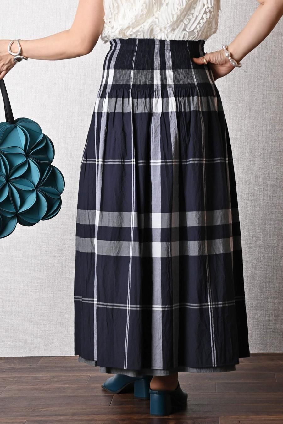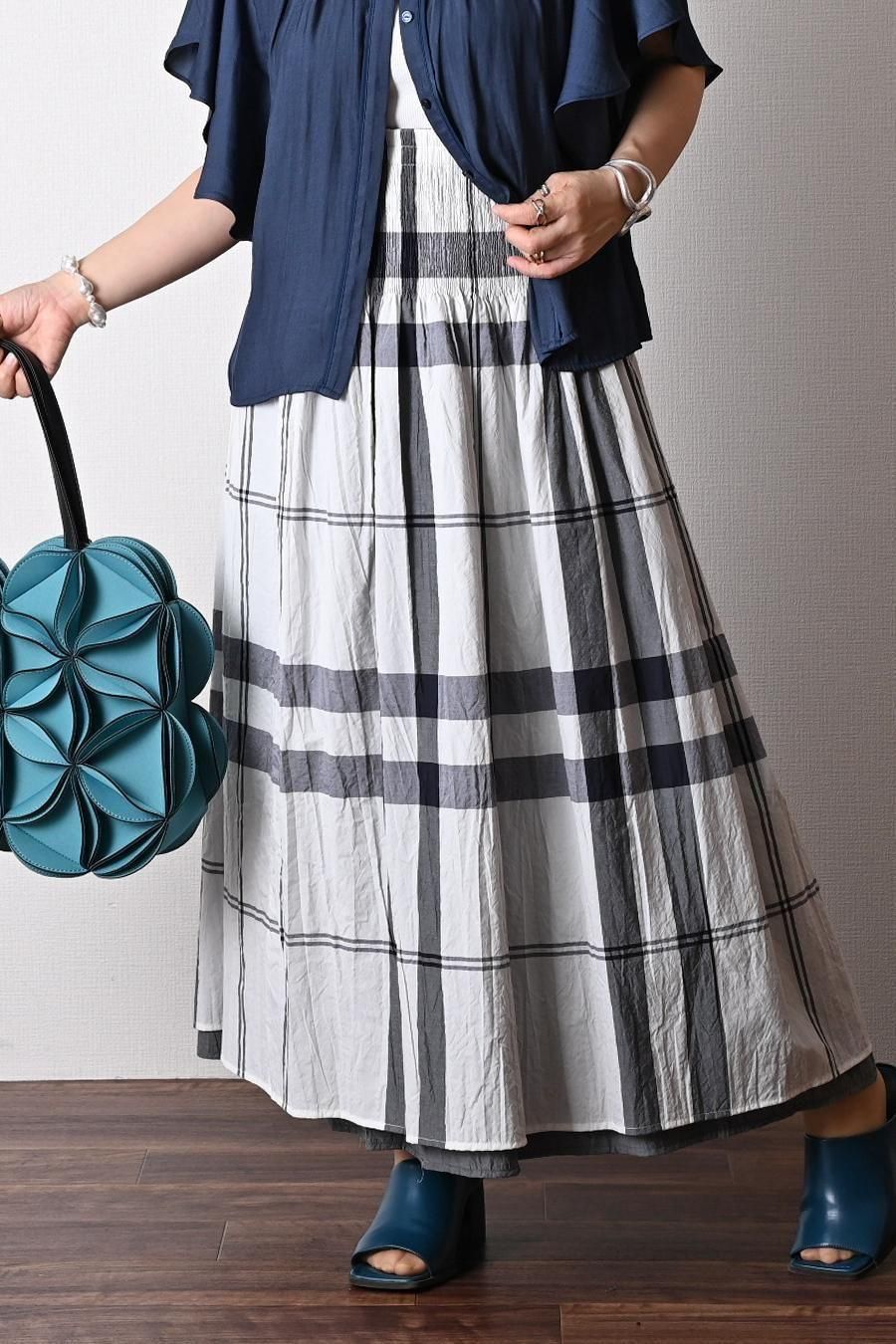 大人のバルーンブルゾン+先染めジャガード多色チェックスカート2点セットコーデ