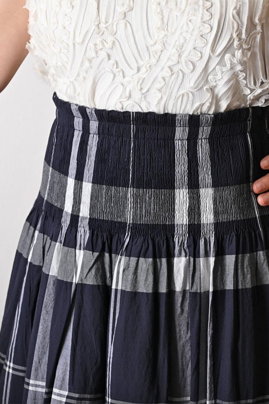 ソフトポンチ×タフタ切り替えジャケット+ジャガード多色チェックスカート2点セットコーデ