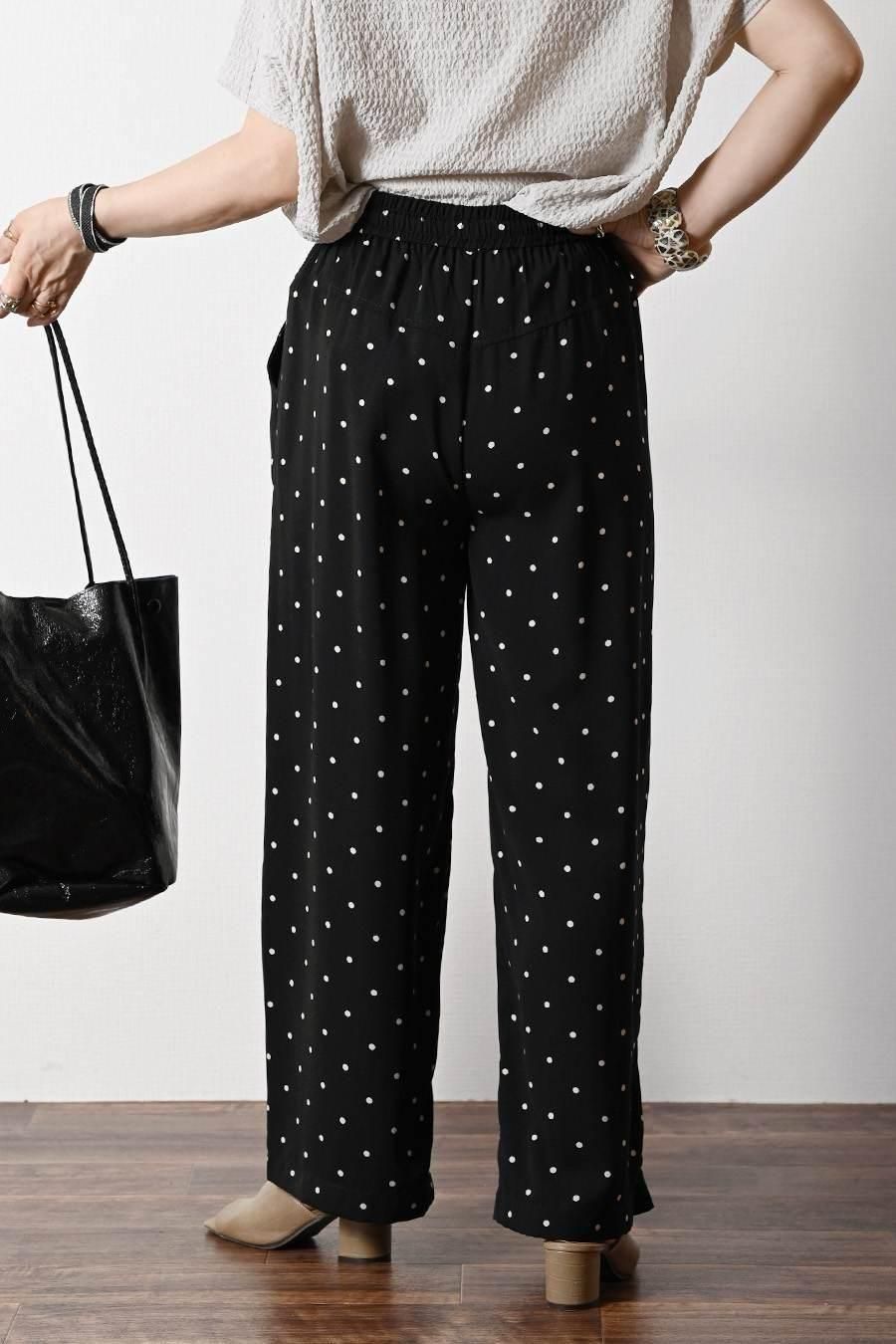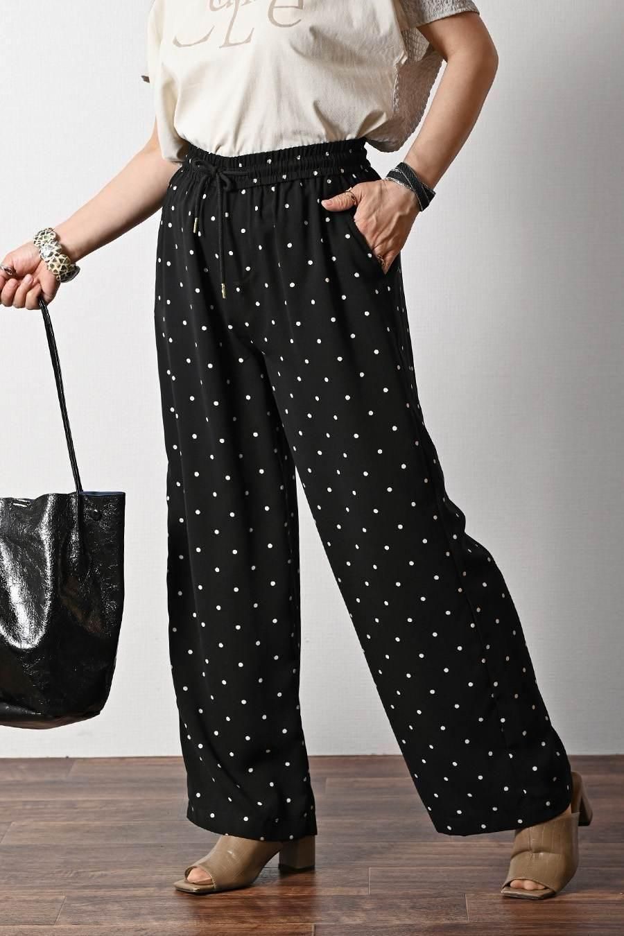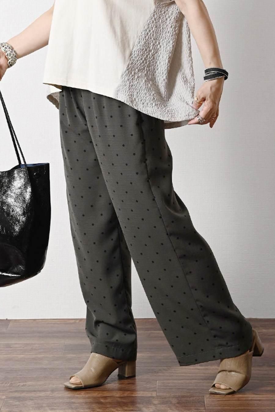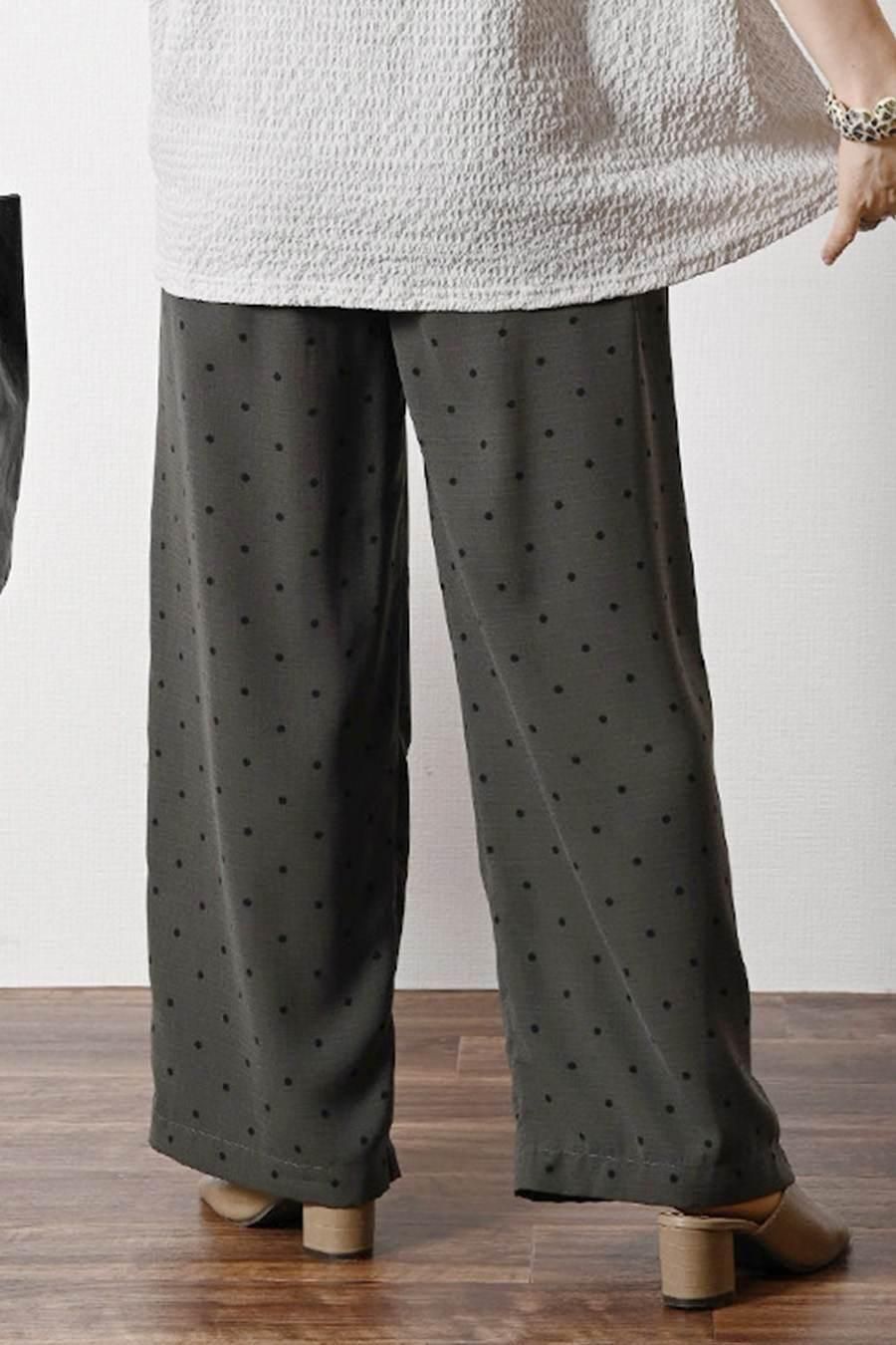 サラッと快適!麻調合繊水玉プリントワイドパンツ