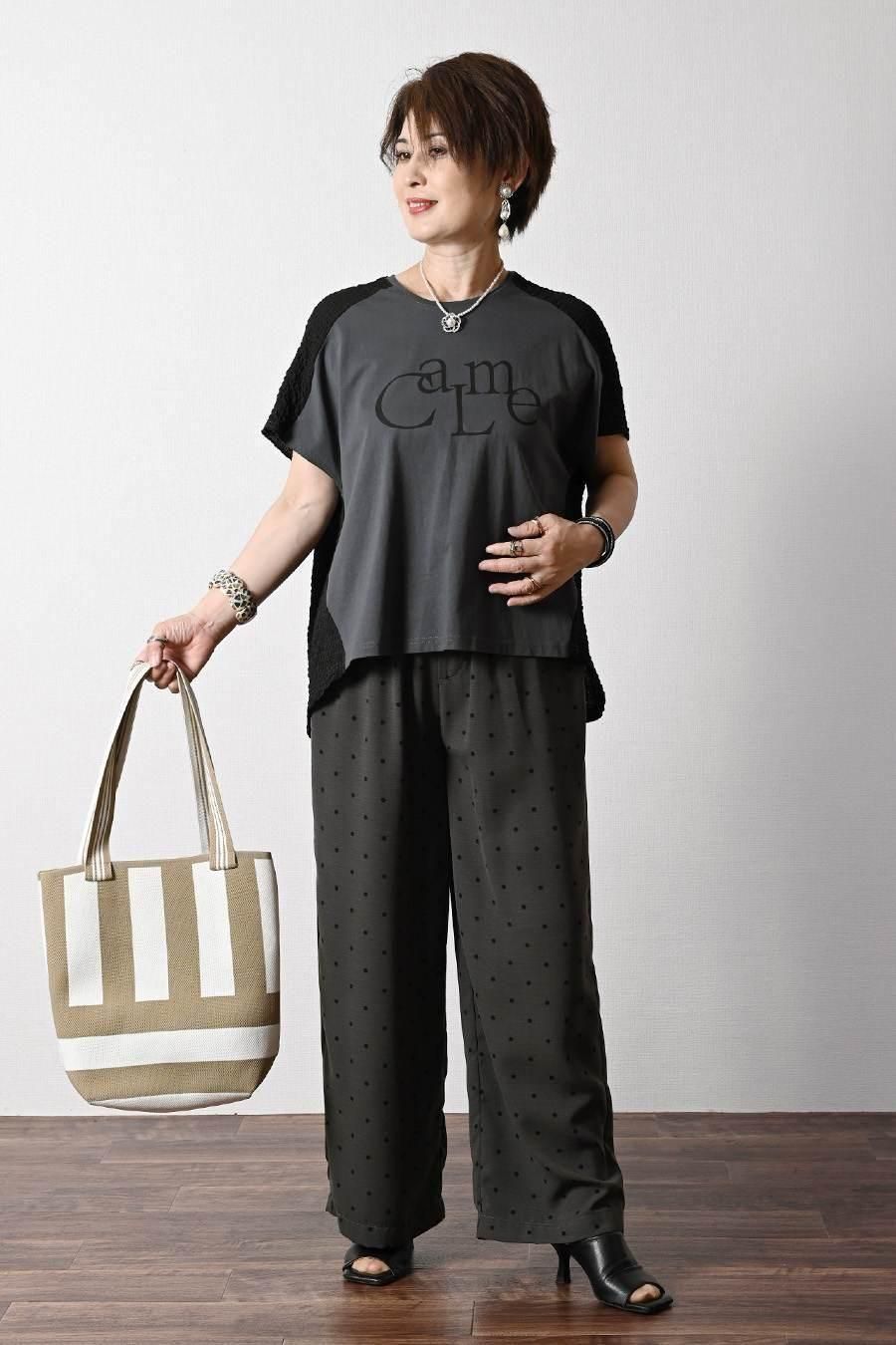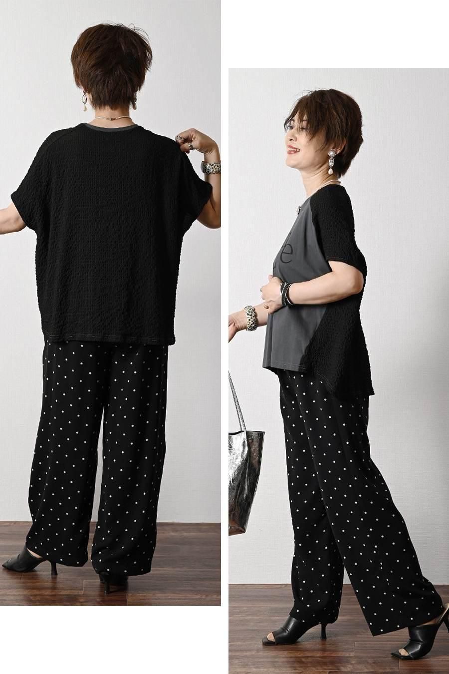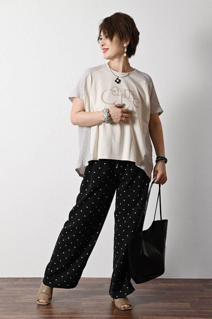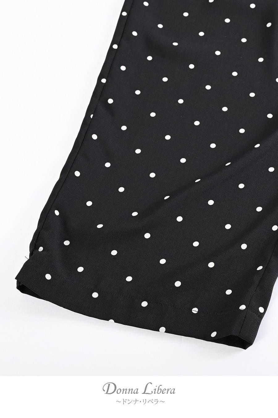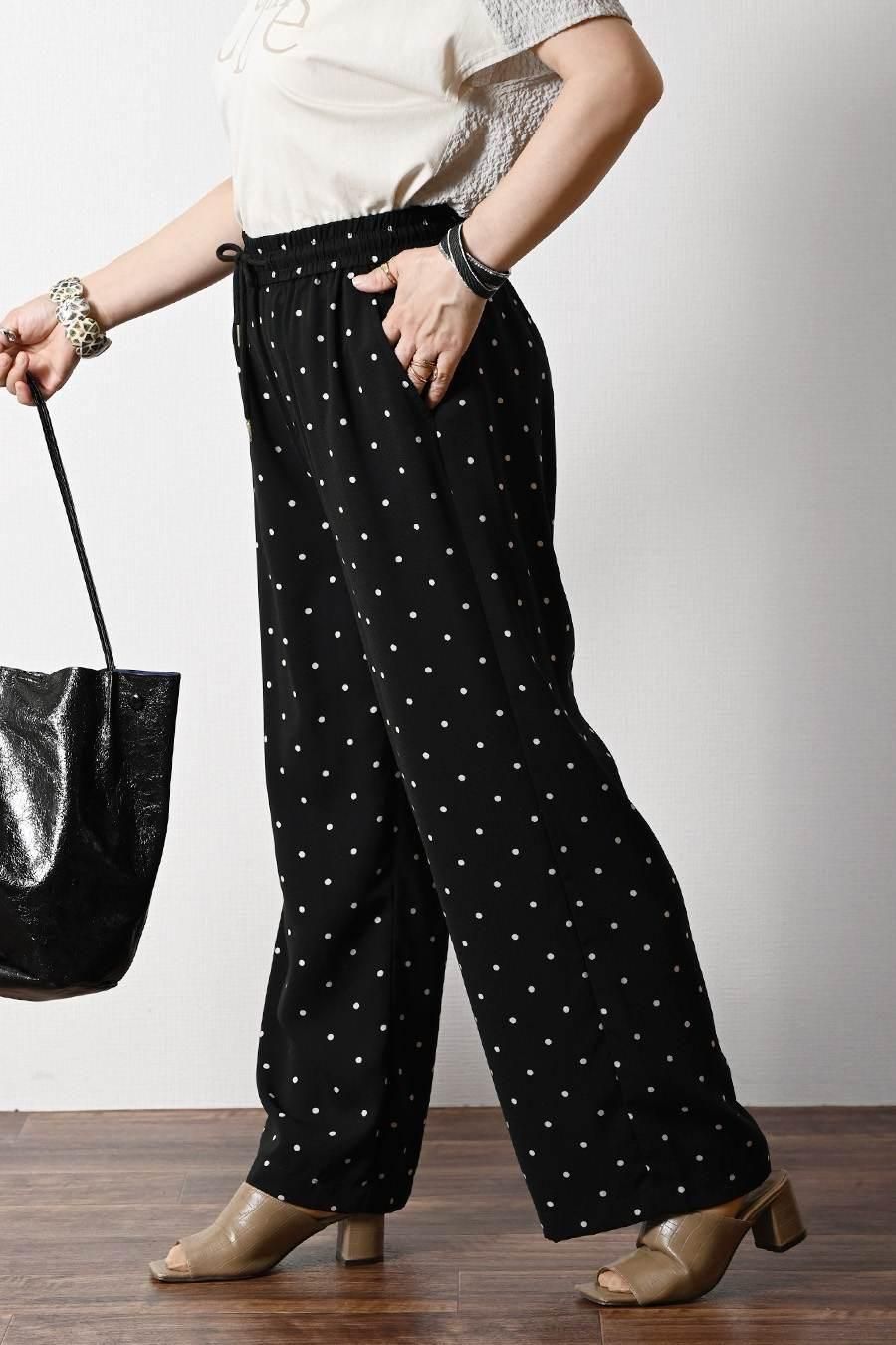 サラッと快適!麻調合繊水玉プリントワイドパンツ