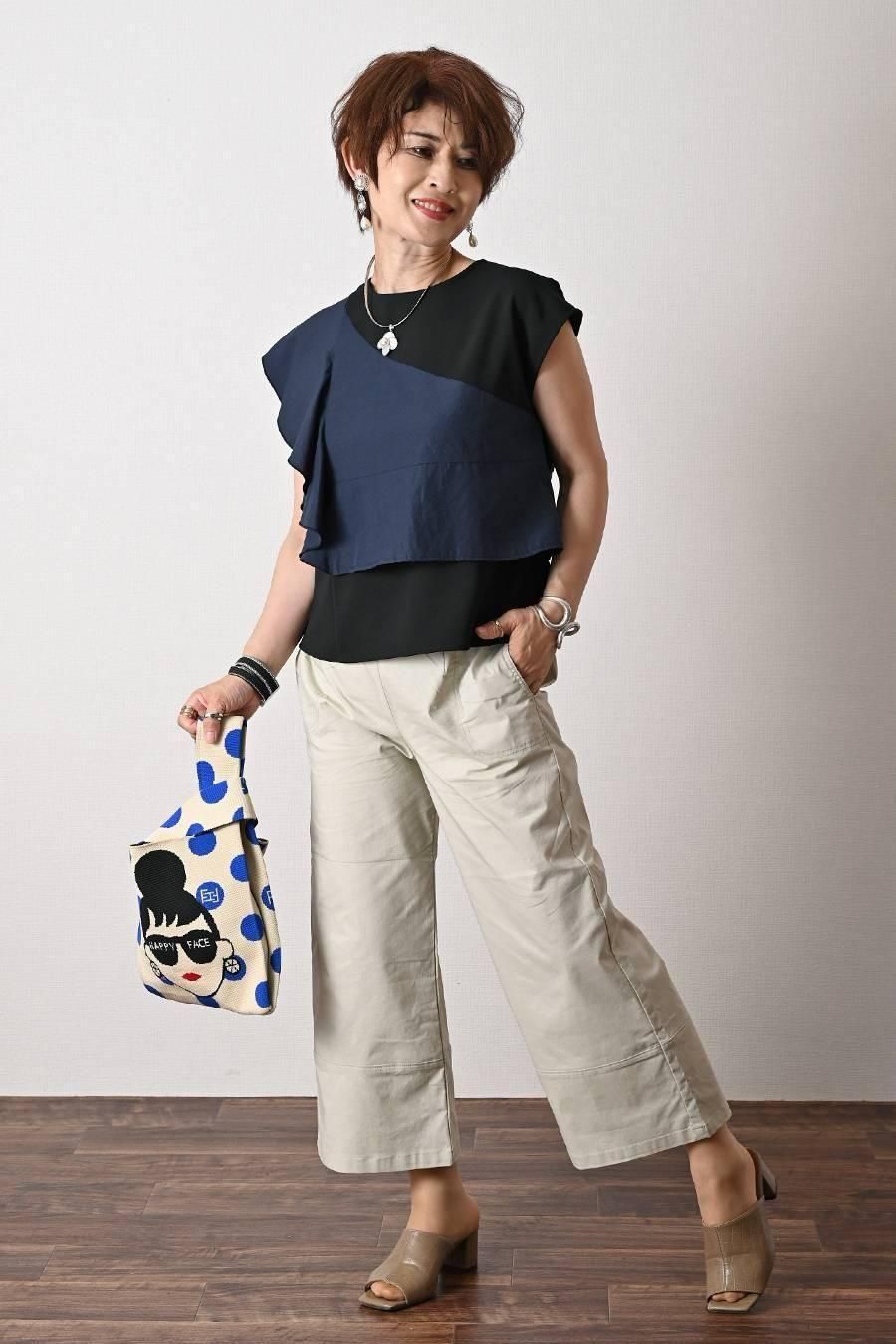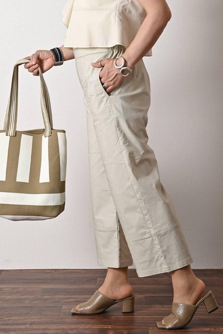 麻混シャンブレー スーパーストレッチ ワイドパンツ