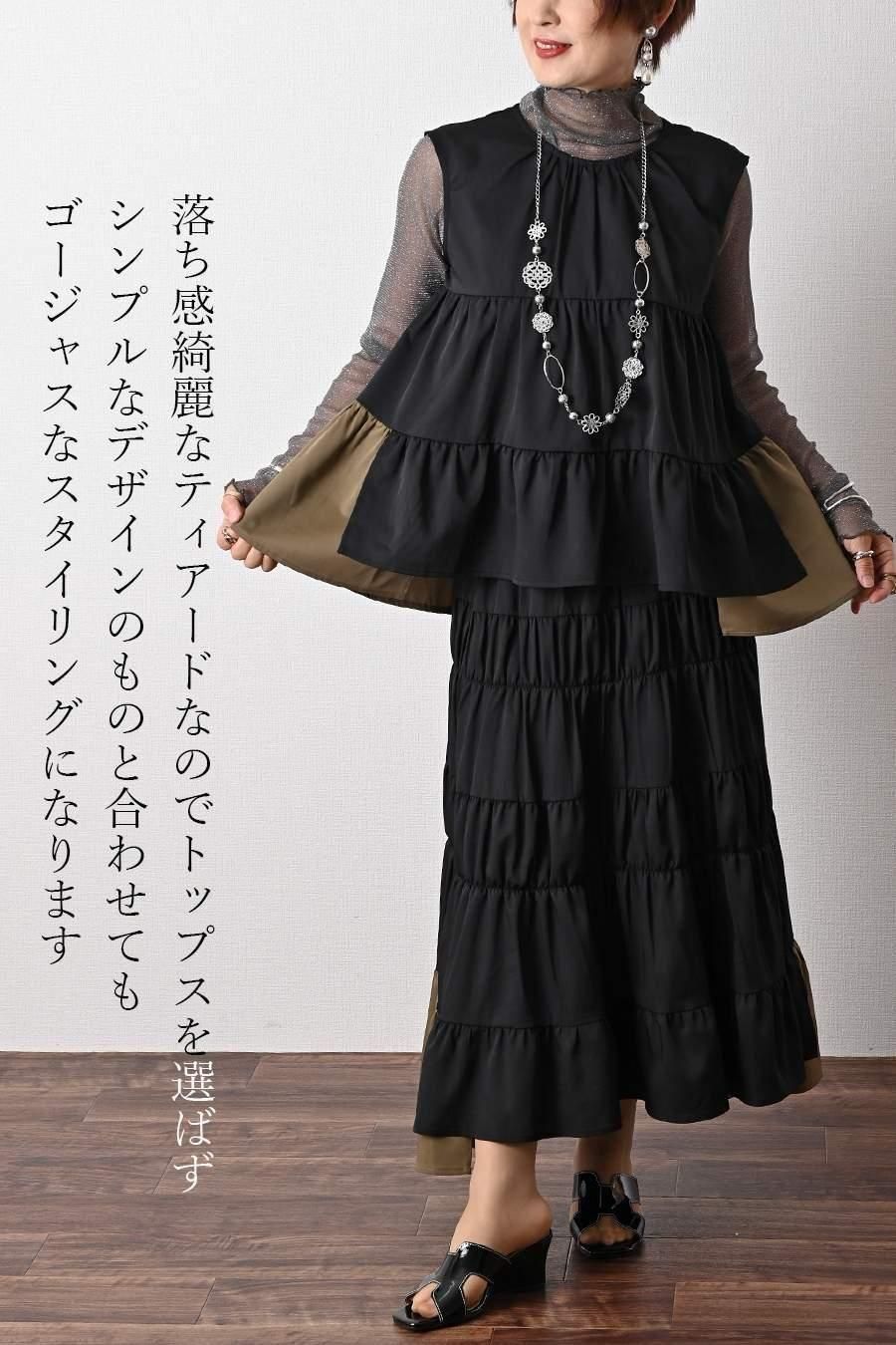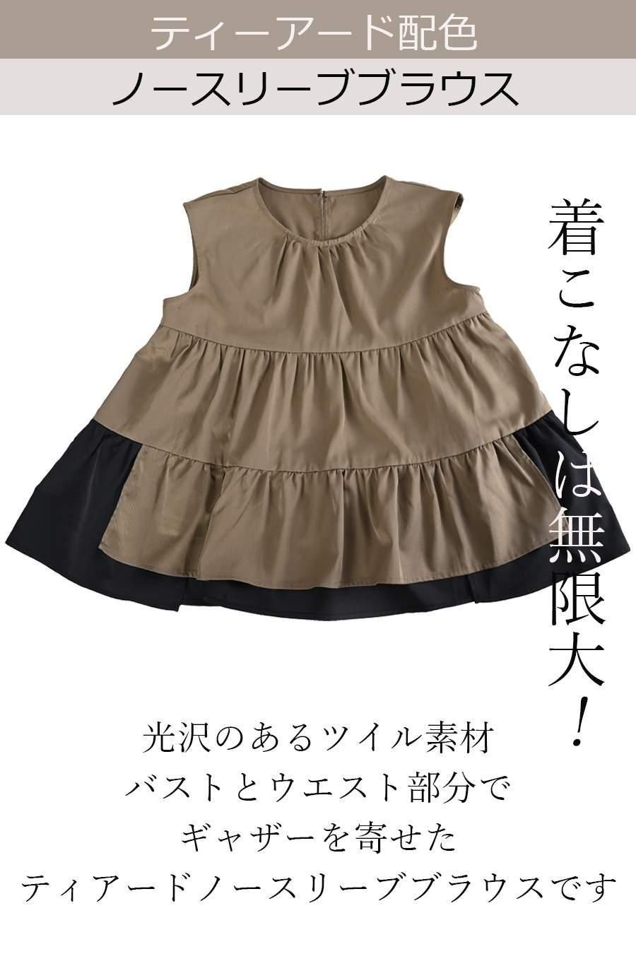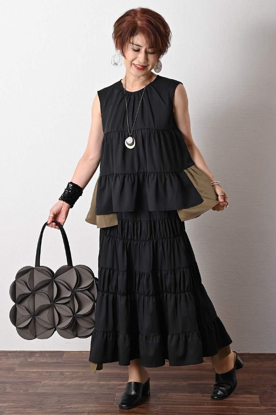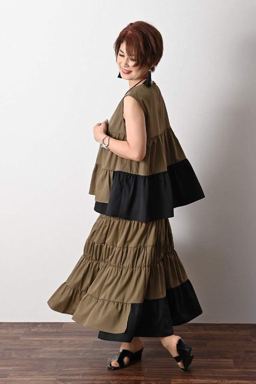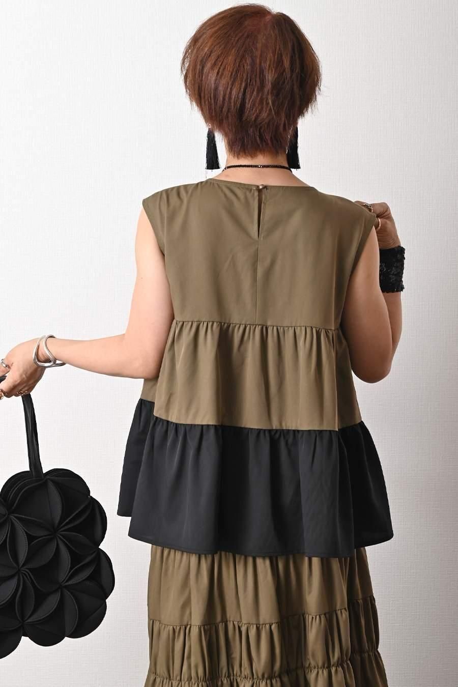 ティアード配色ノースリーブブラウス+ティアード配色スカート2点セット