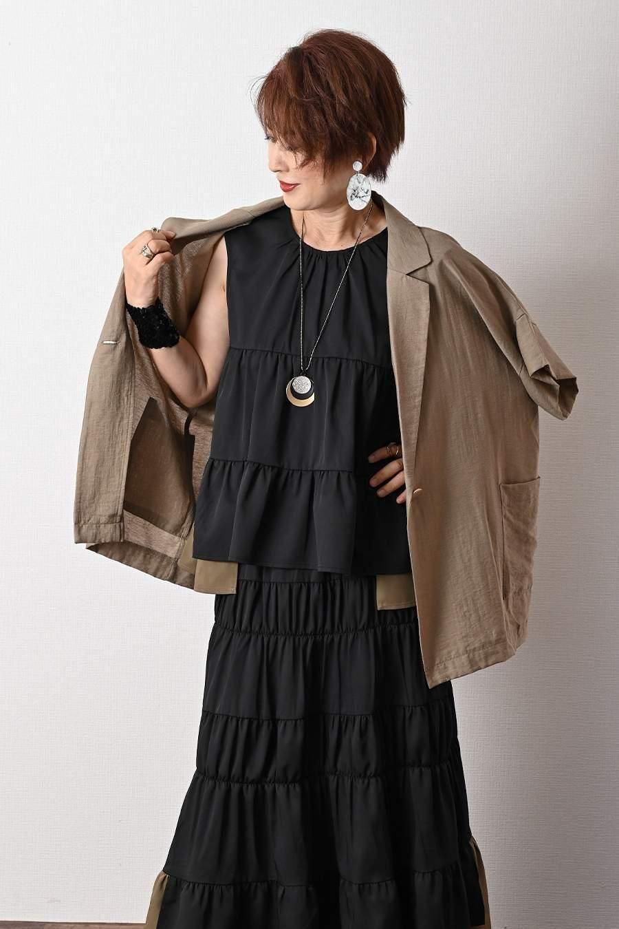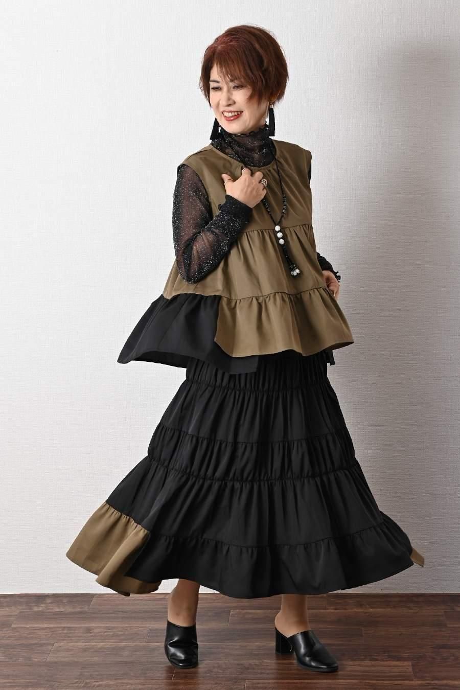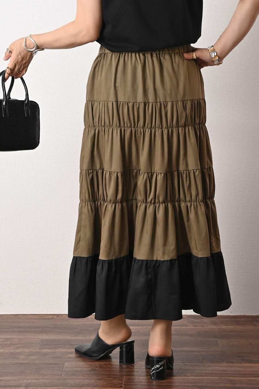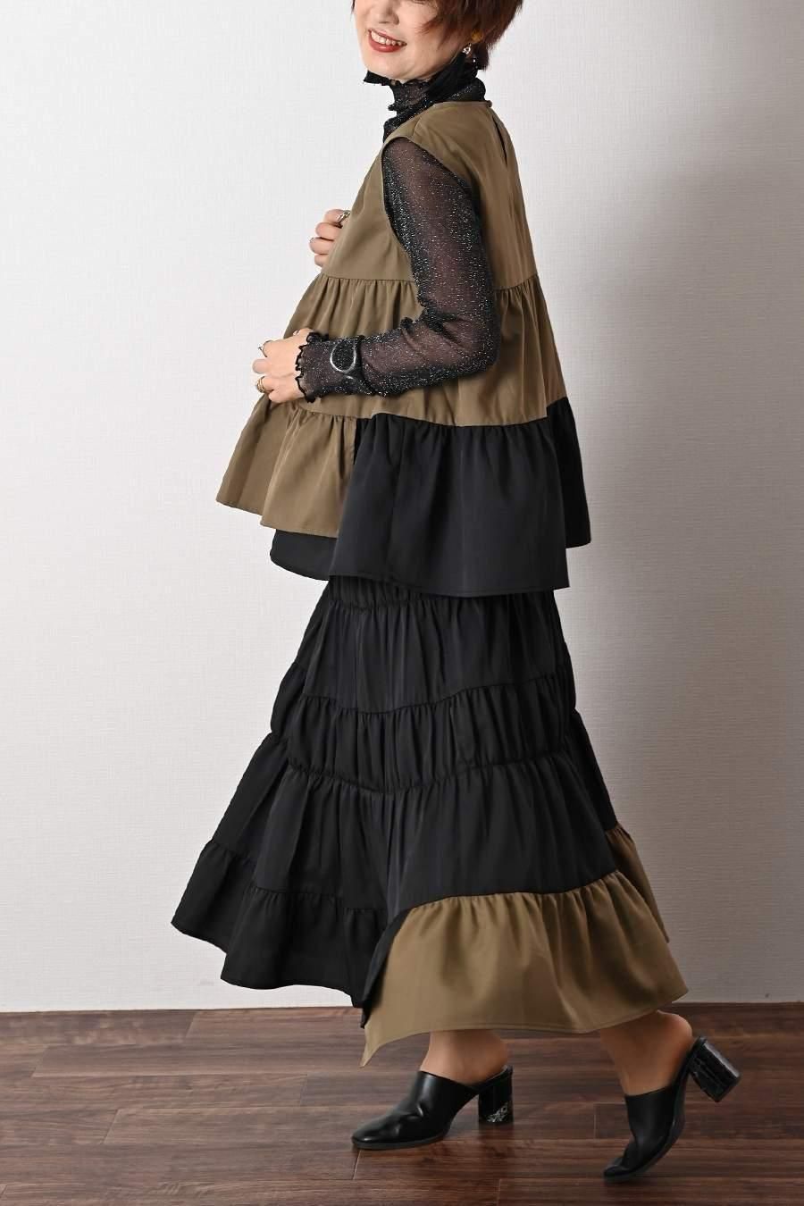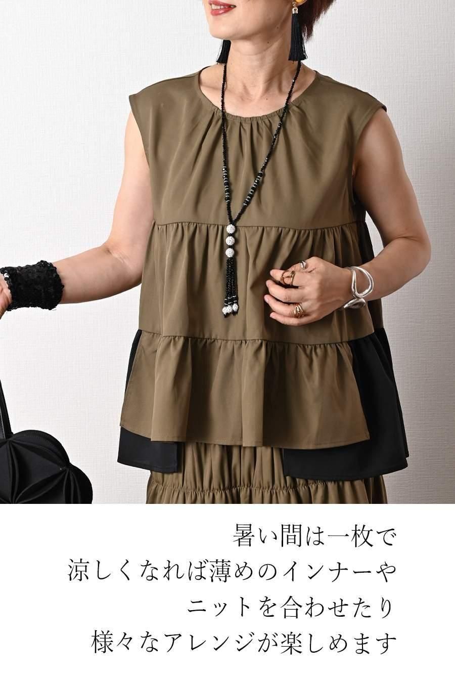 ティアード配色ノースリーブブラウス+ティアード配色スカート2点セット
