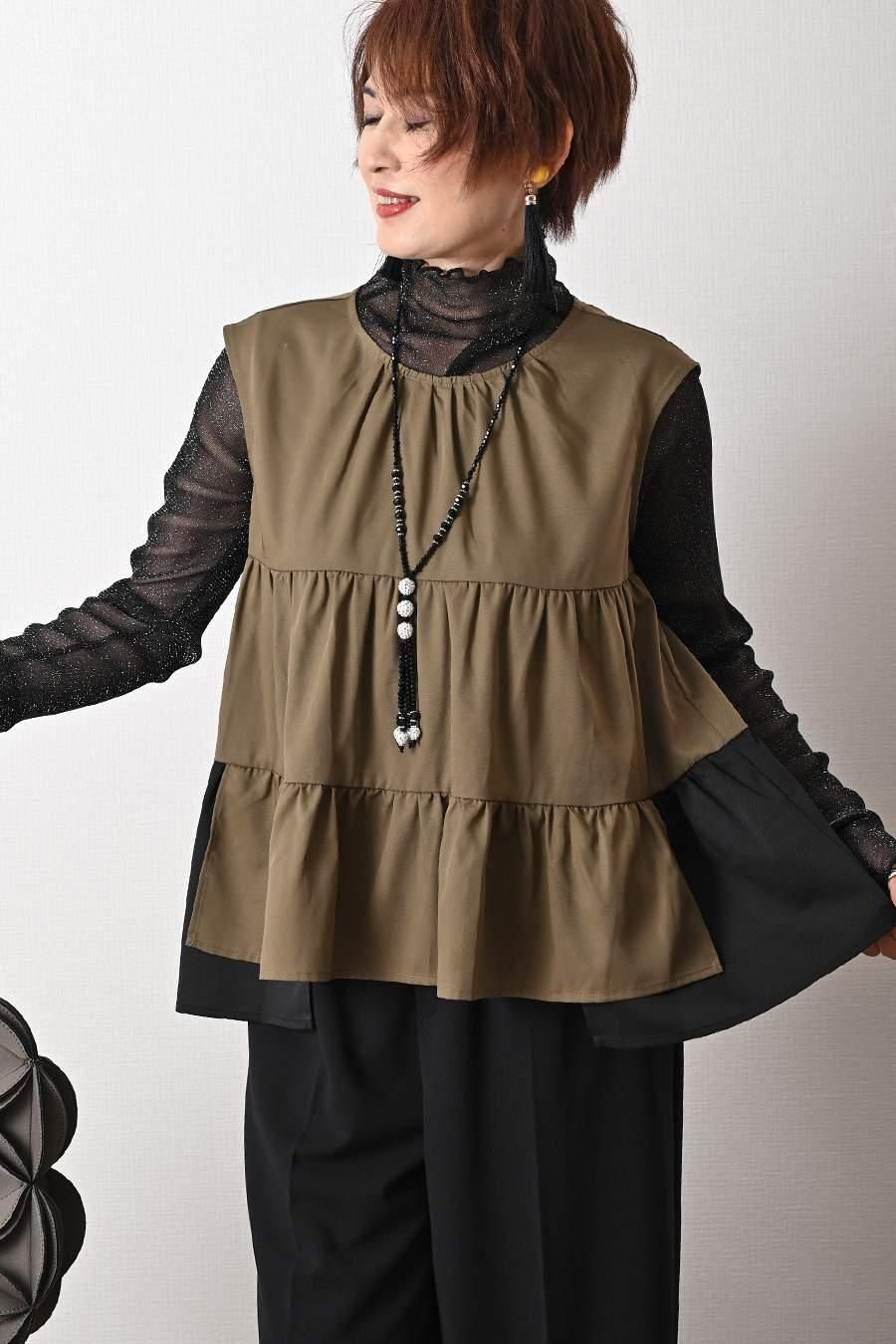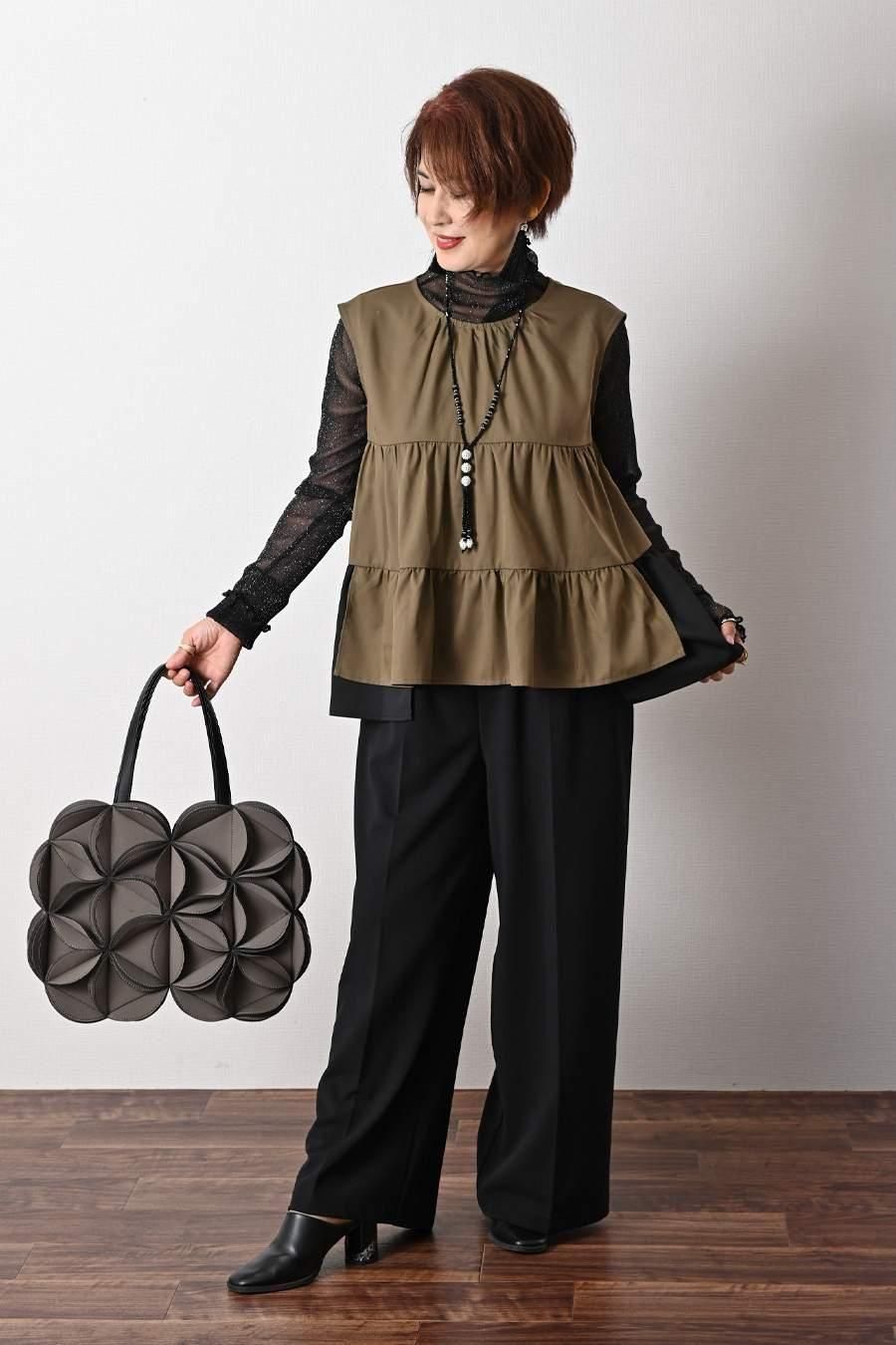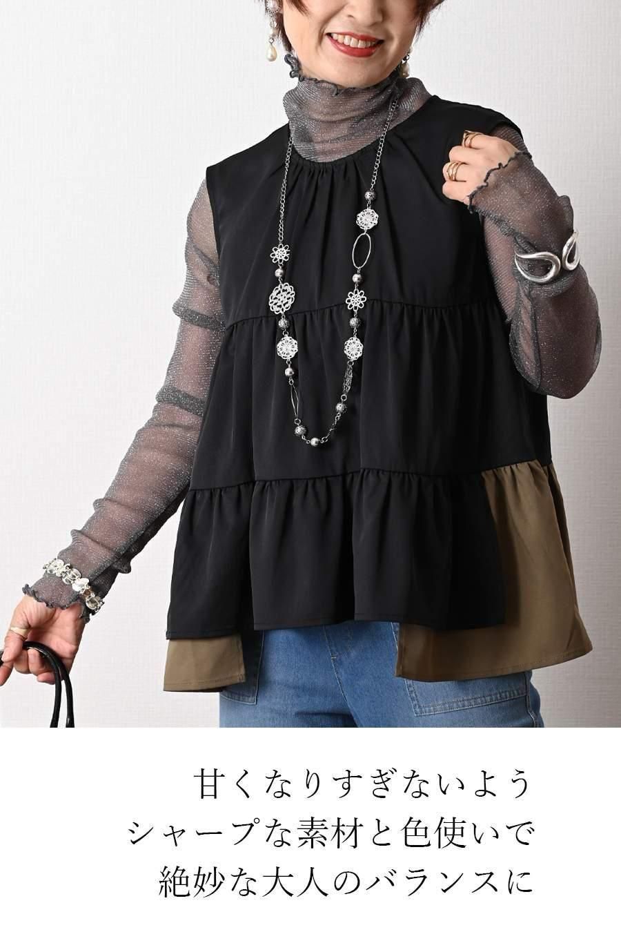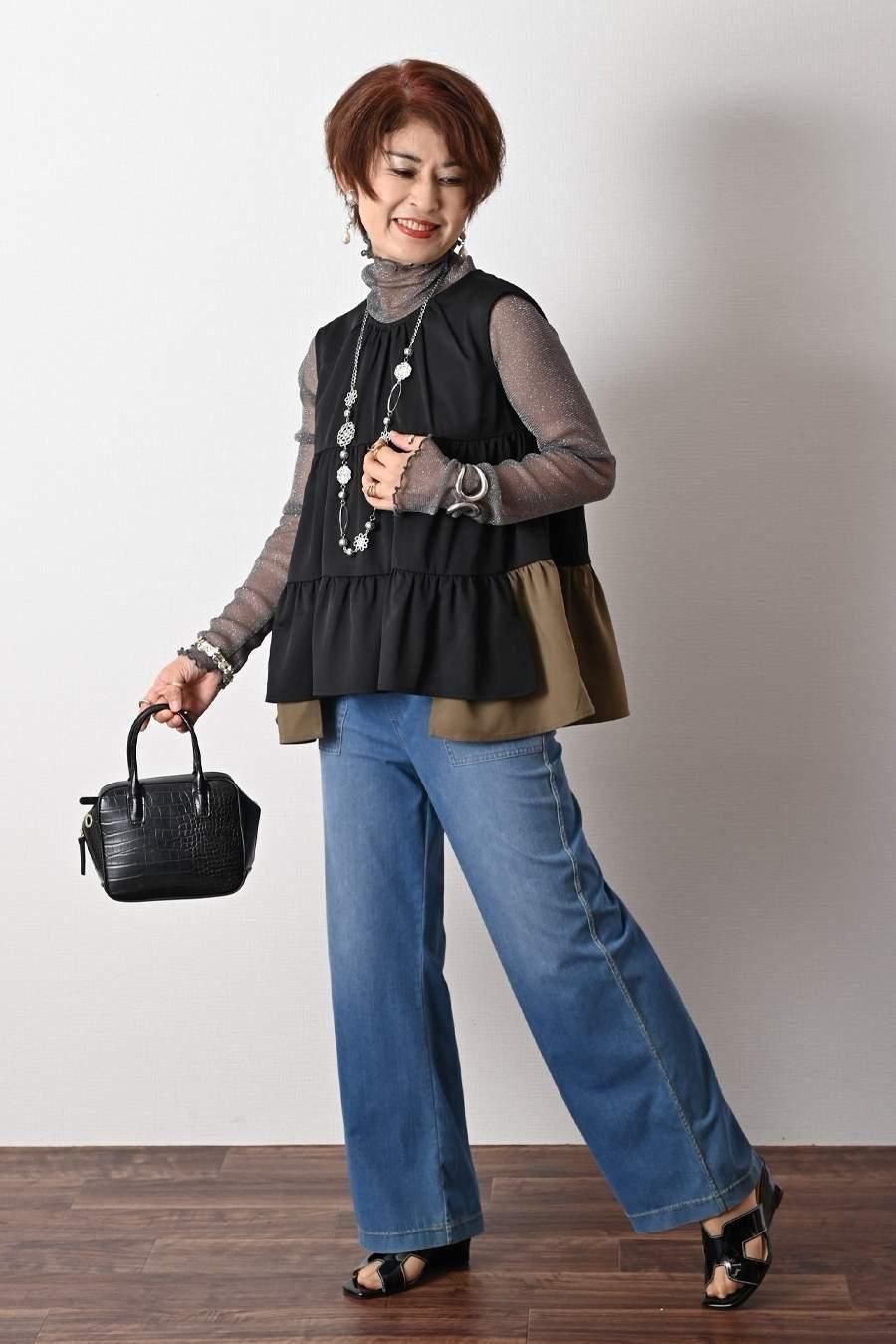 選べるボアベスト+ラメ&チュール タートルネックプルオーバー2点セットコーデ