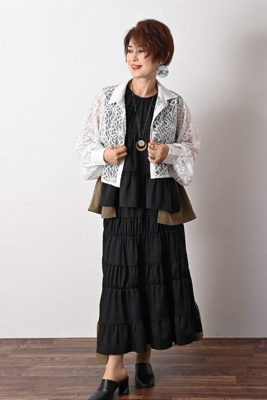 ポンチ&カットジャガードプルオーバー+カットジャガードフレアスカート2点セットコーデ
