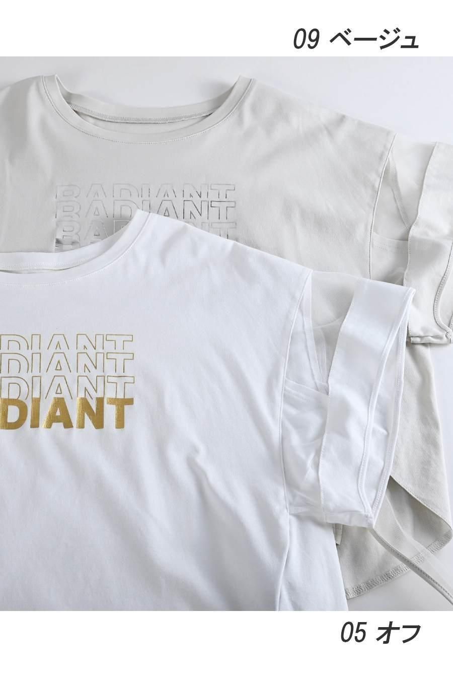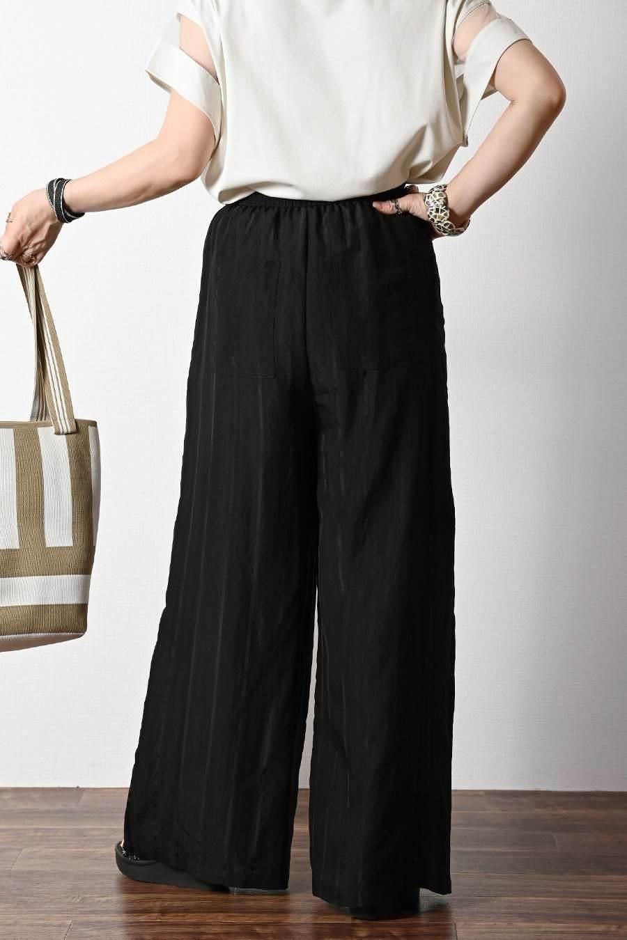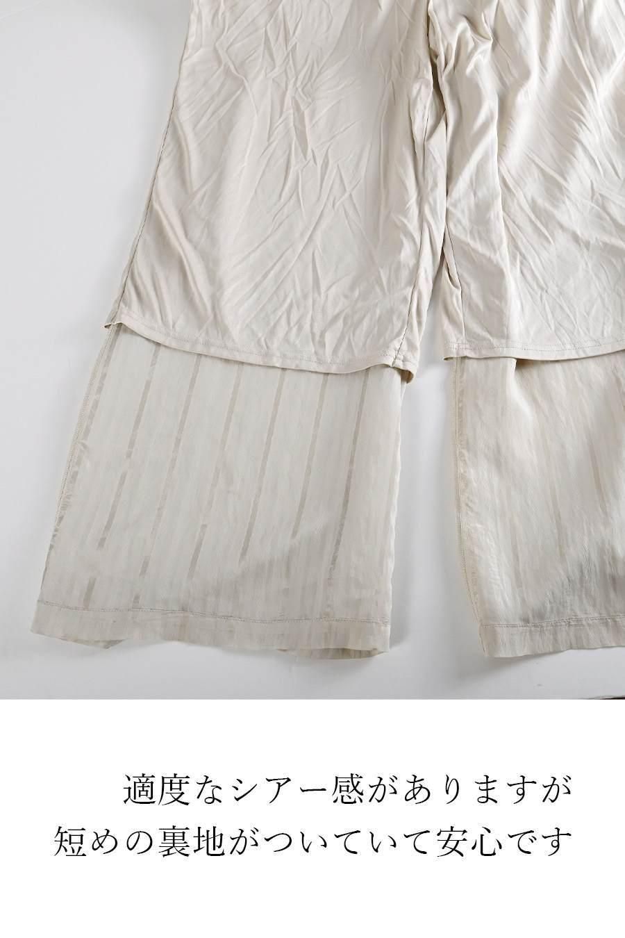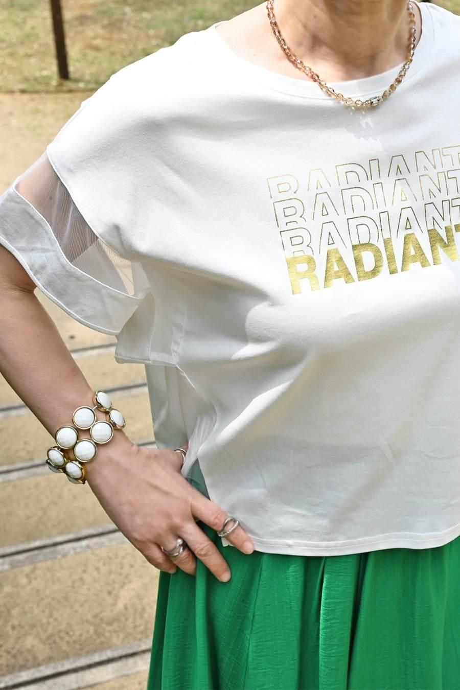 箔プリント&チュール切り替えカットソー+シャドーストライプワイドパンツ2点セットコーデ
