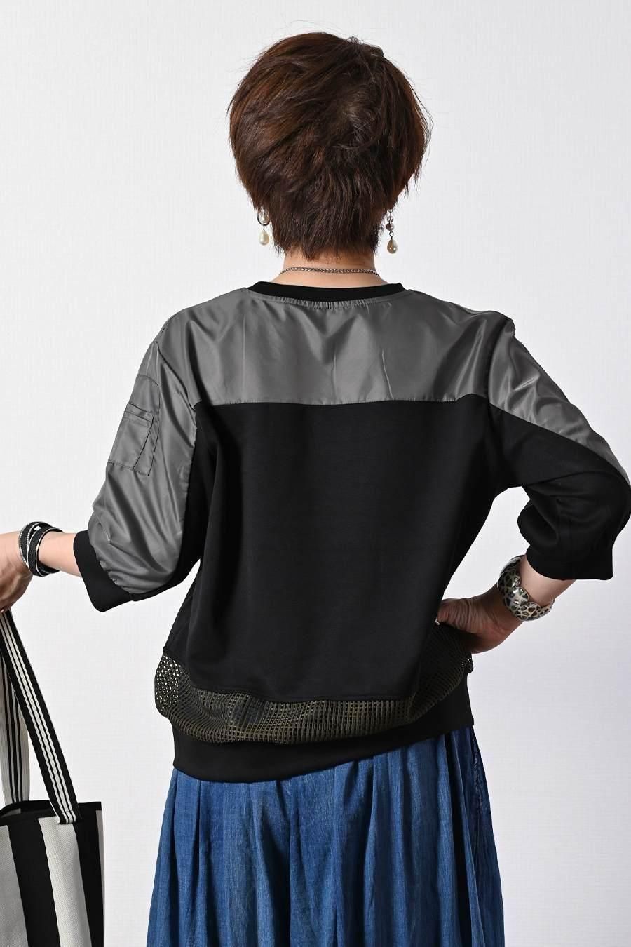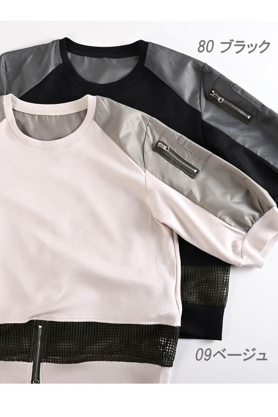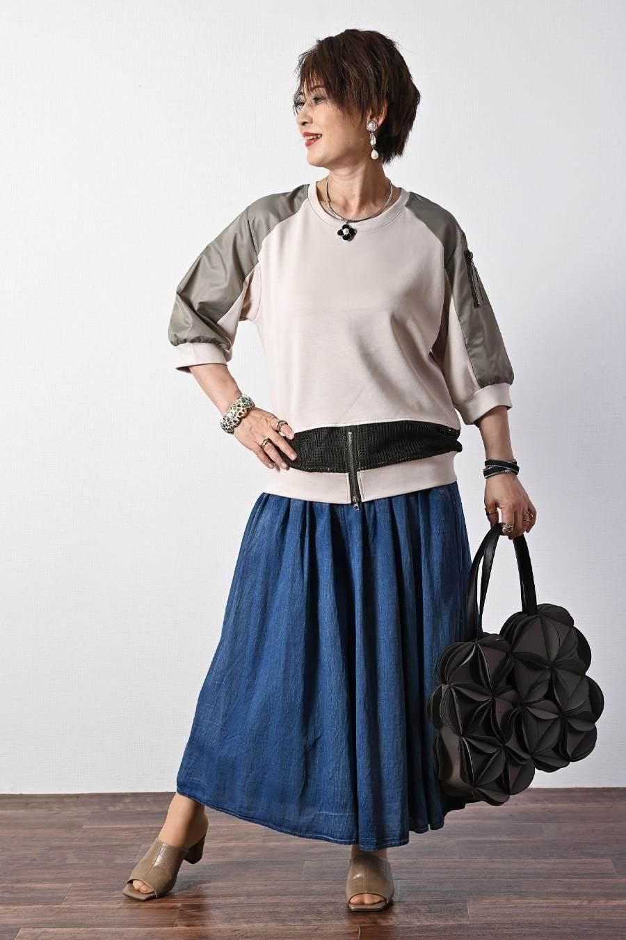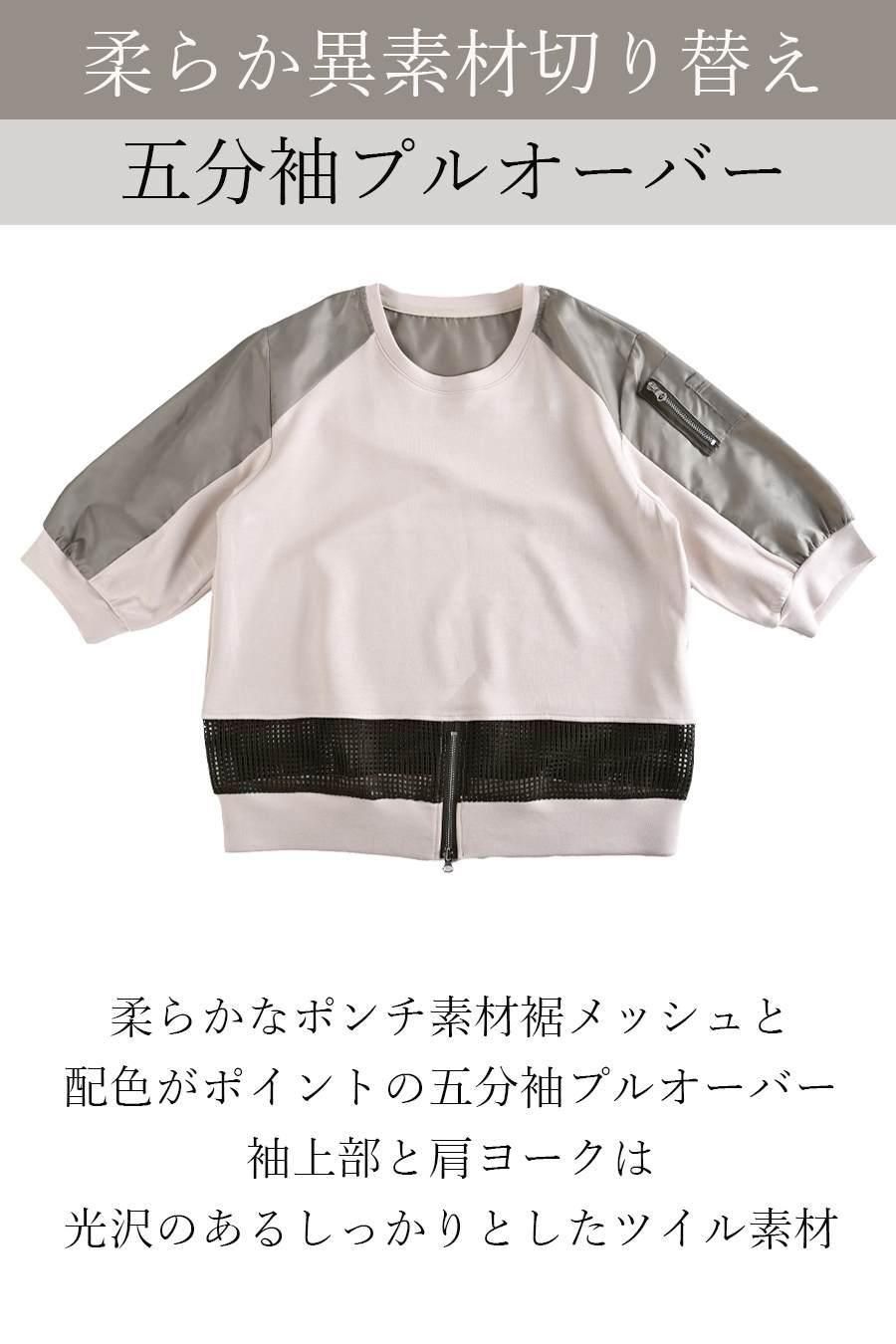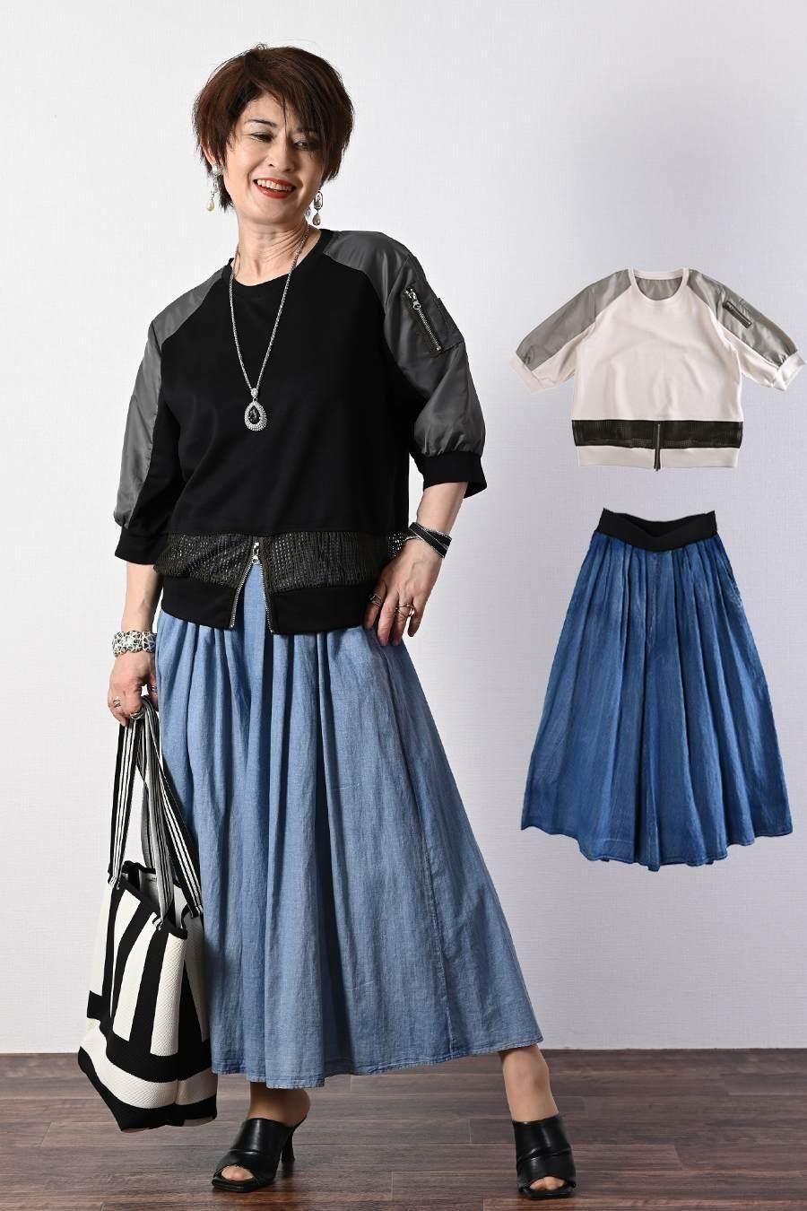 柔らか五分袖プルオーバー+軽量ソフトワイドパンツ2点セットコーデ