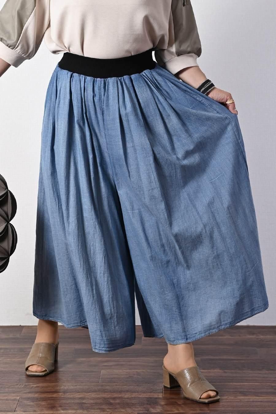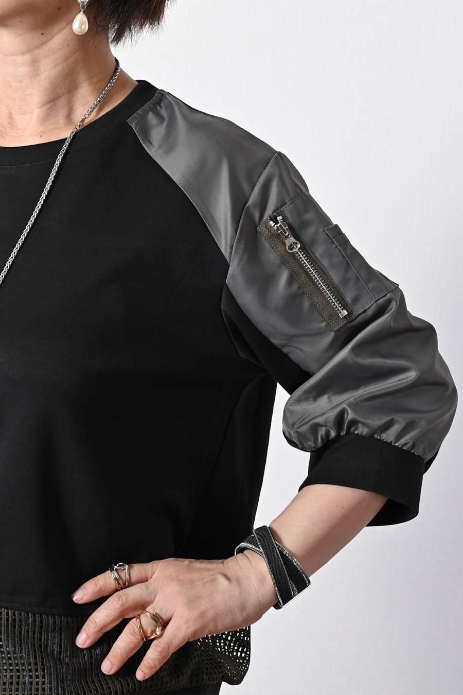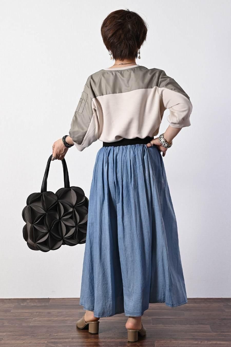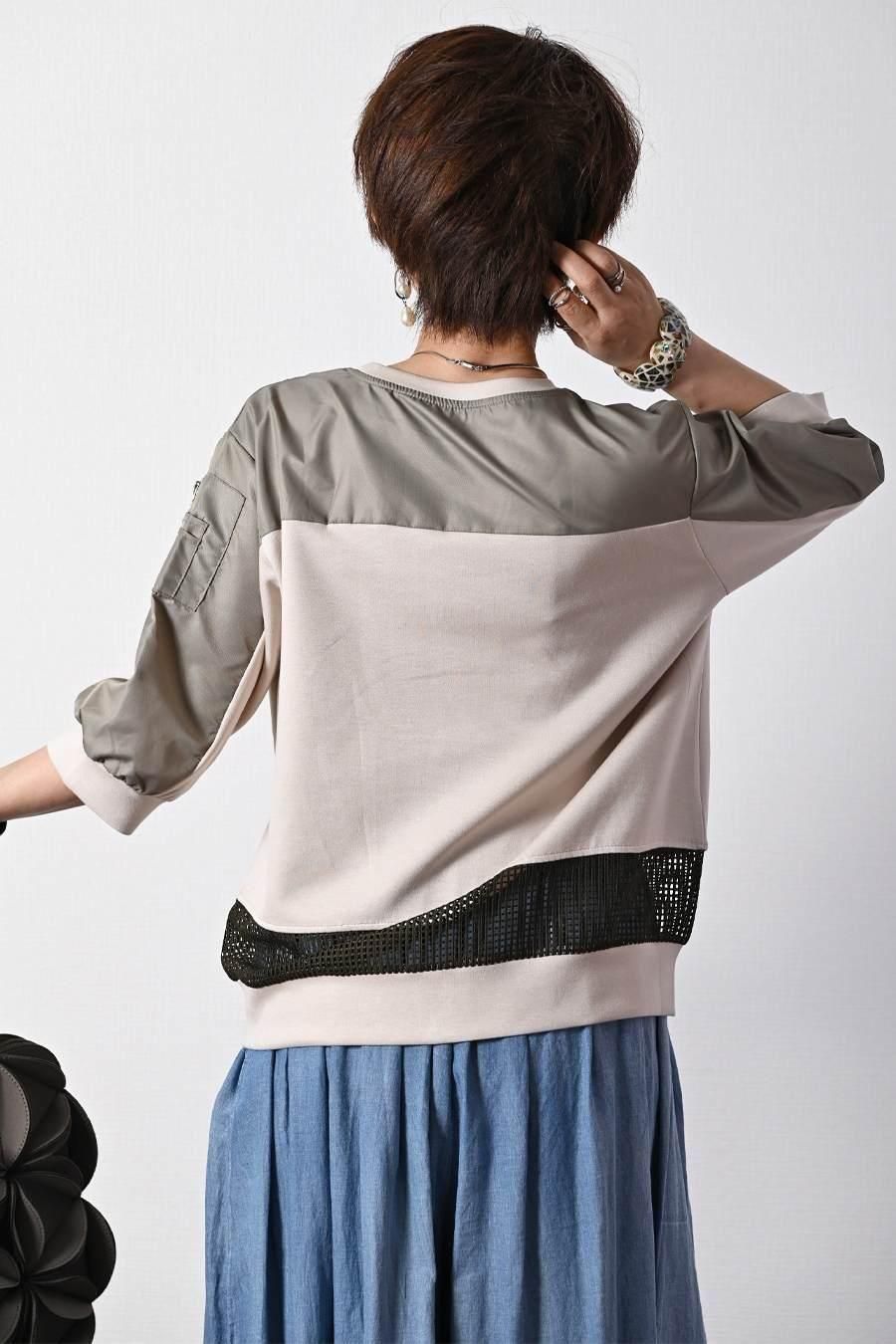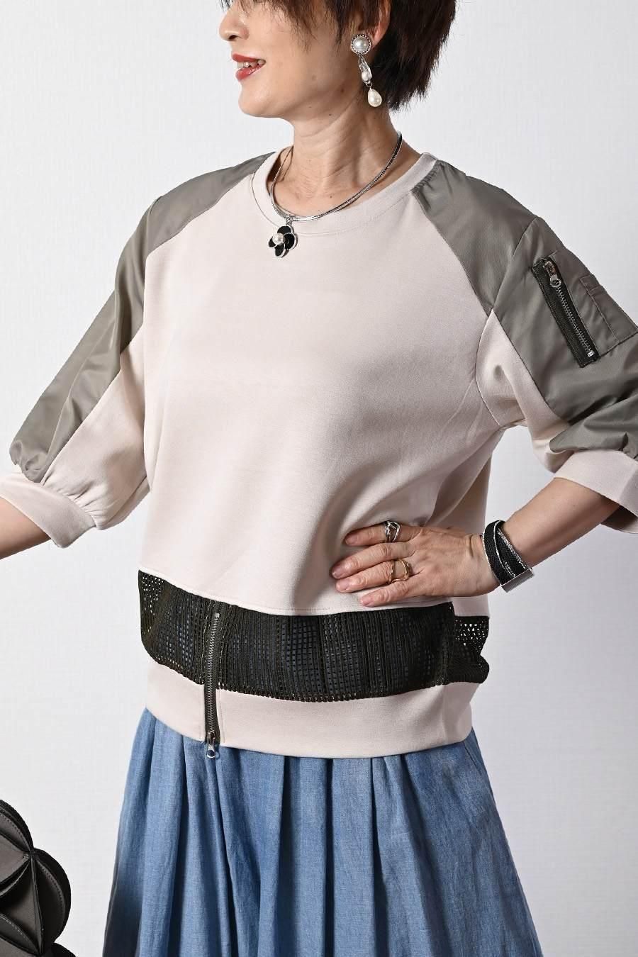 柔らか五分袖プルオーバー+軽量ソフトワイドパンツ2点セットコーデ