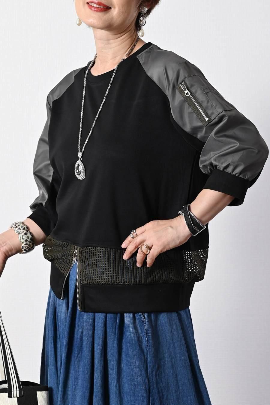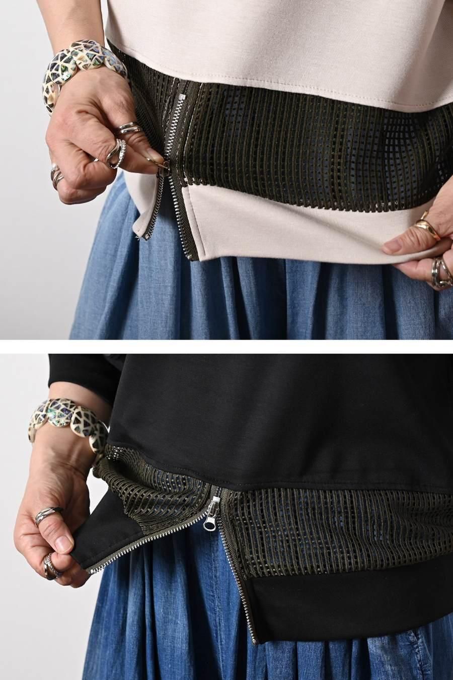背面ボタンバイカラーリブニット