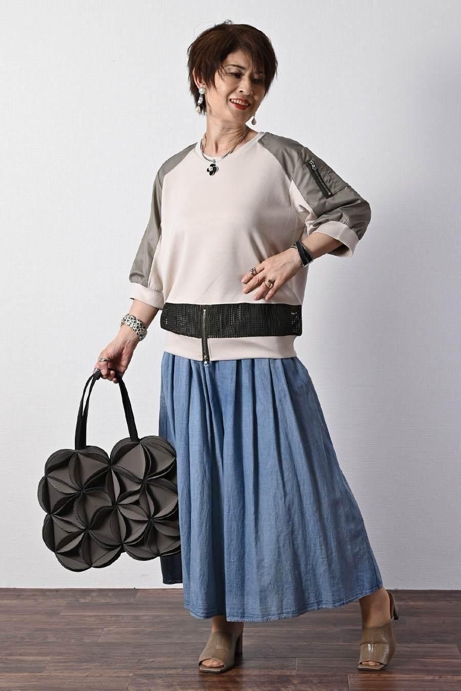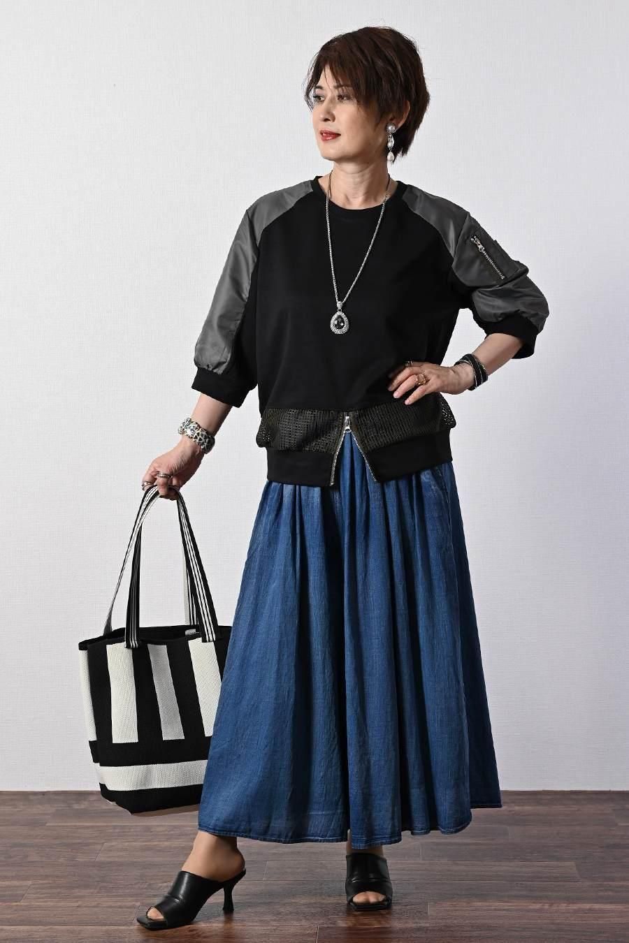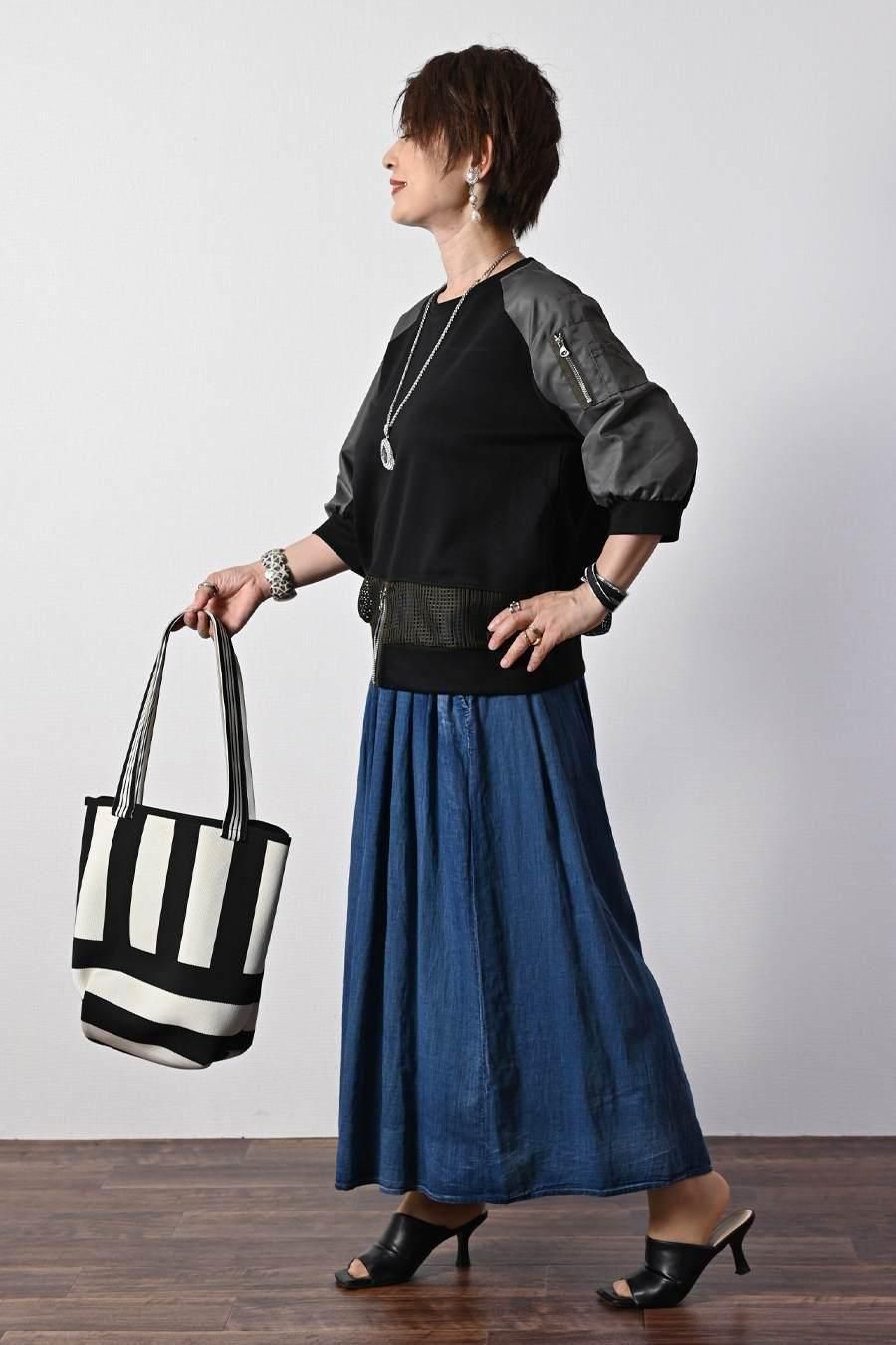 大人のバルーンブルゾン+先染めジャガード多色チェックスカート2点セットコーデ
