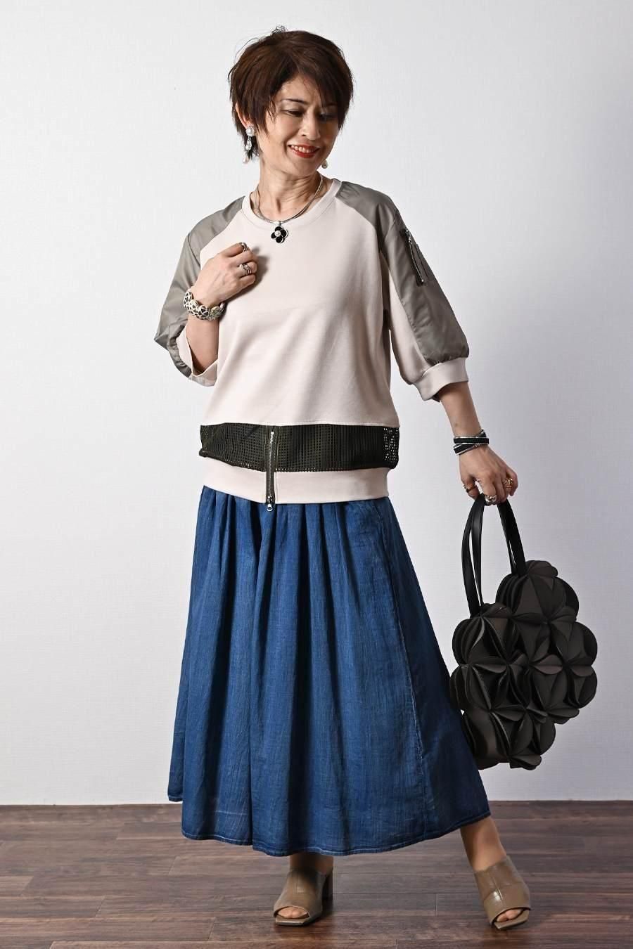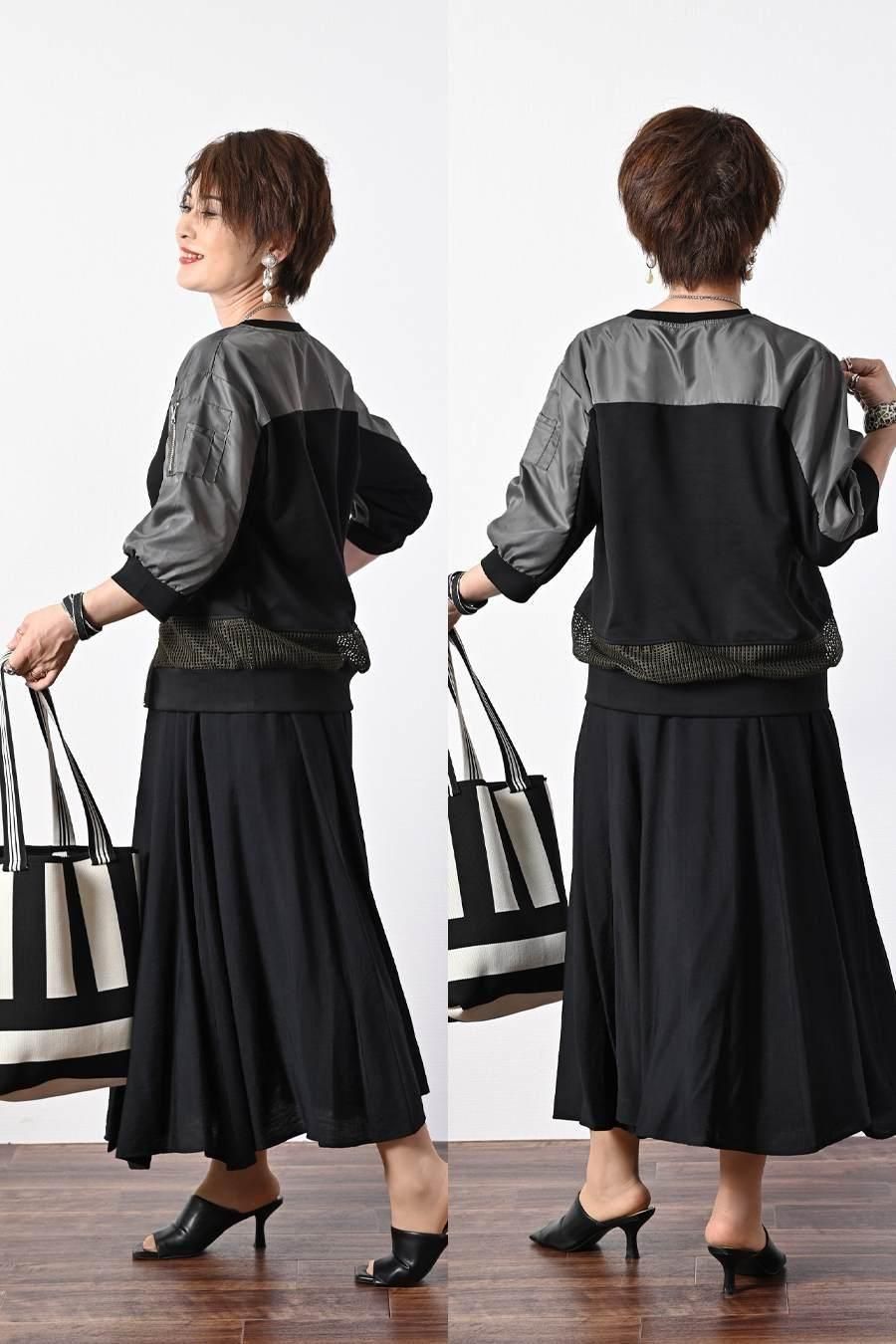 ポンチ&カットジャガードプルオーバー+カットジャガードフレアスカート2点セットコーデ