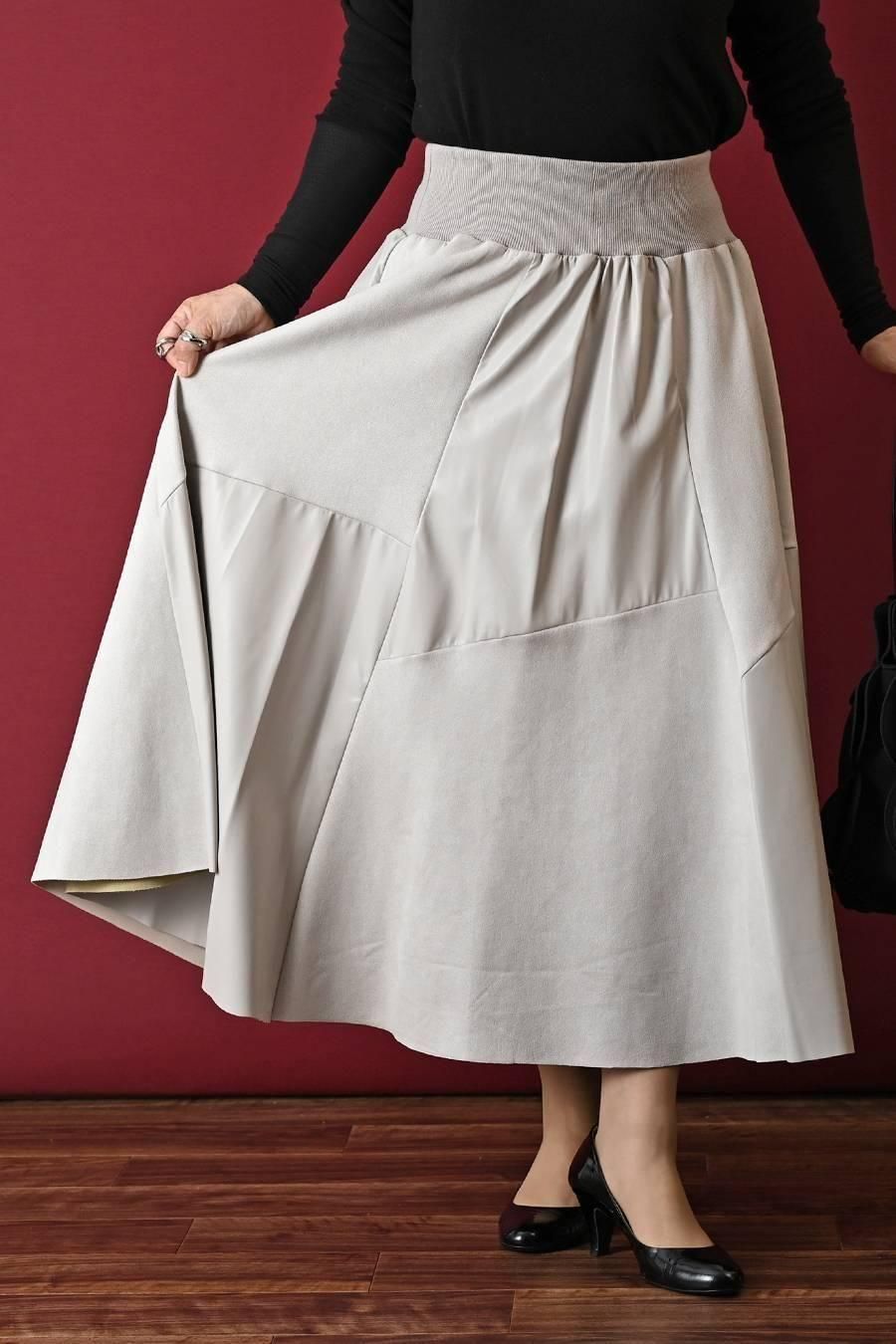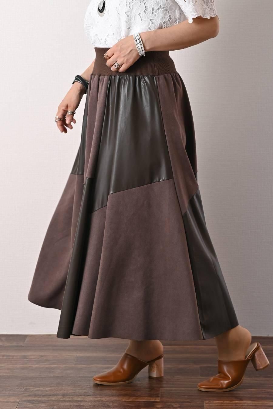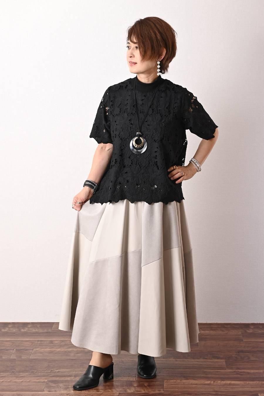 ポンチ&カットジャガードプルオーバー+カットジャガードフレアスカート2点セットコーデ