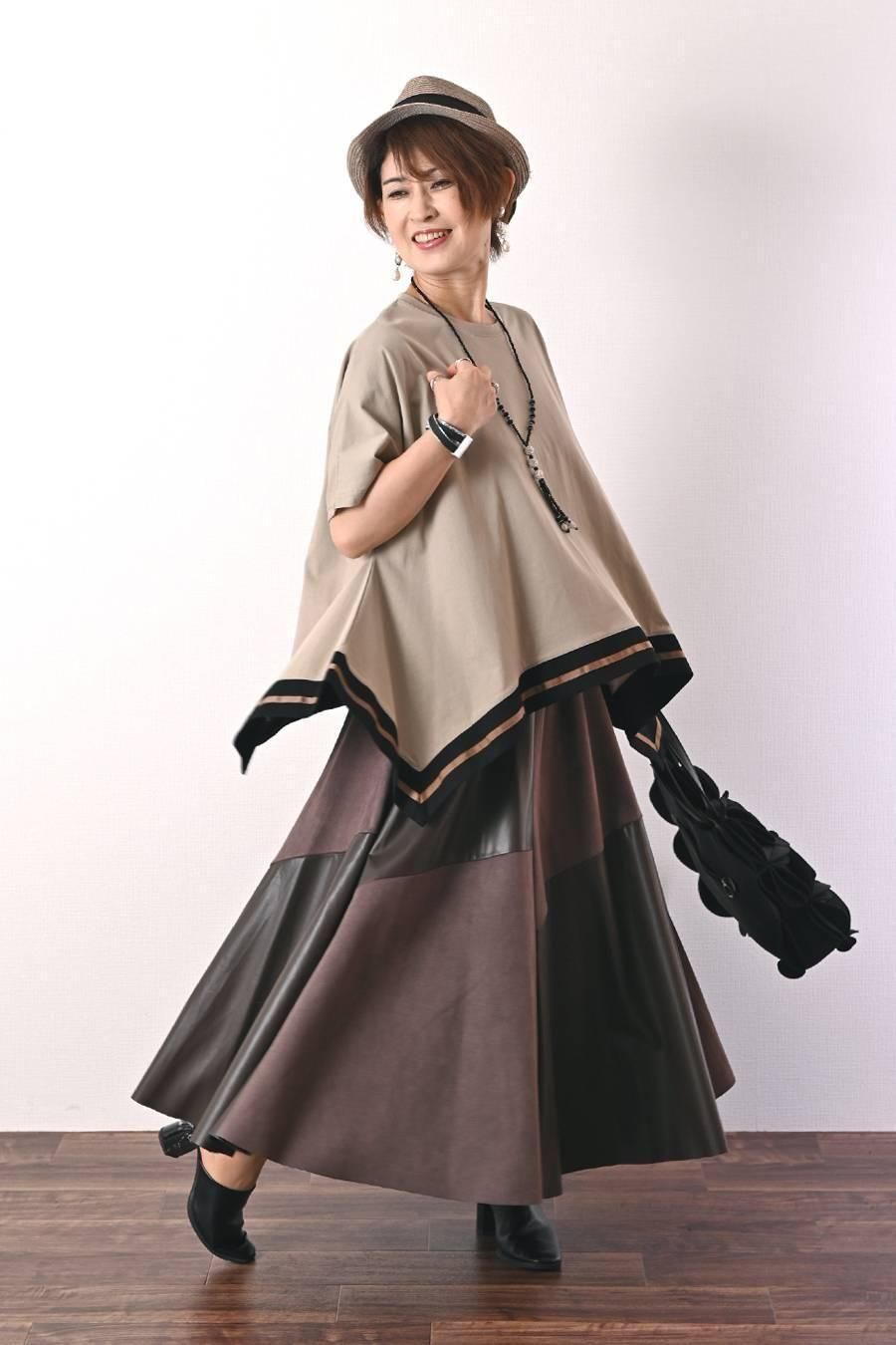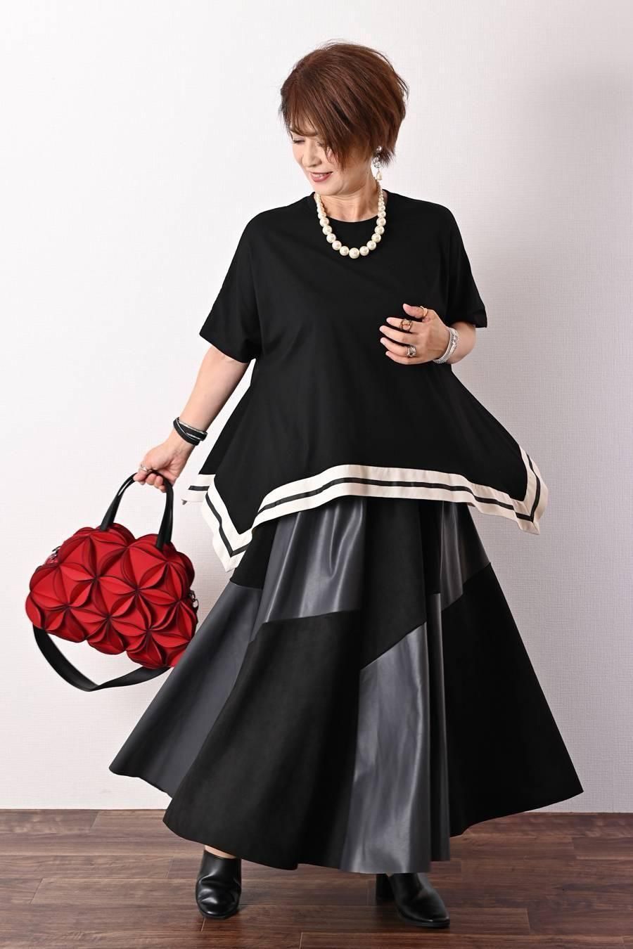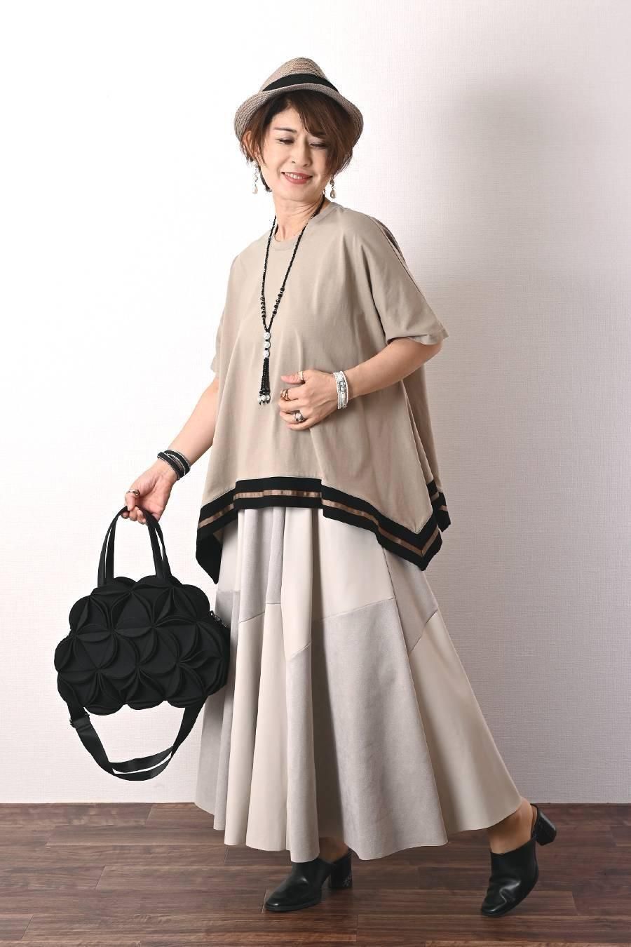 ポンチ&カットジャガードプルオーバー+カットジャガードフレアスカート2点セットコーデ