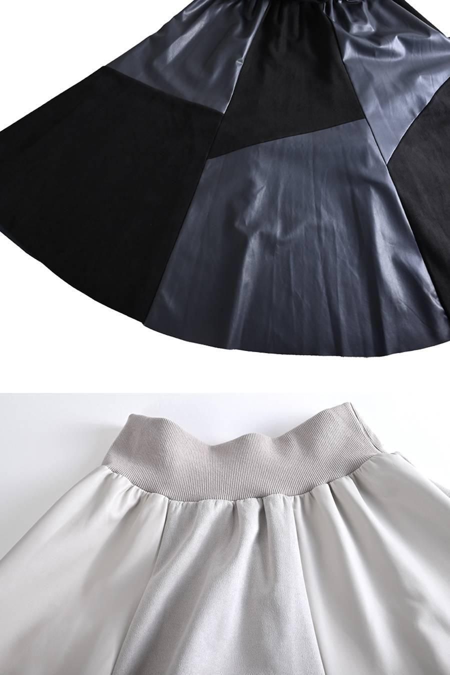 ソフトポンチ×タフタ切り替えジャケット+ジャガード多色チェックスカート2点セットコーデ