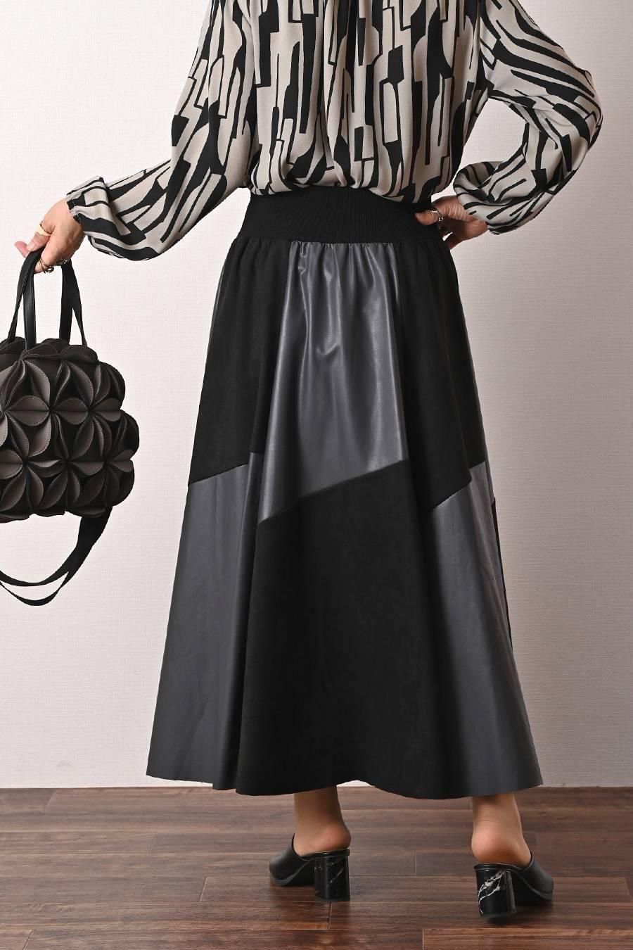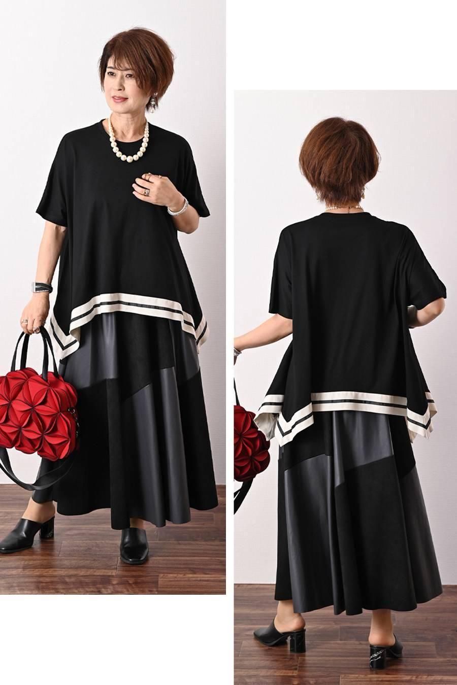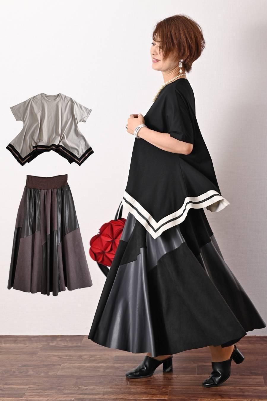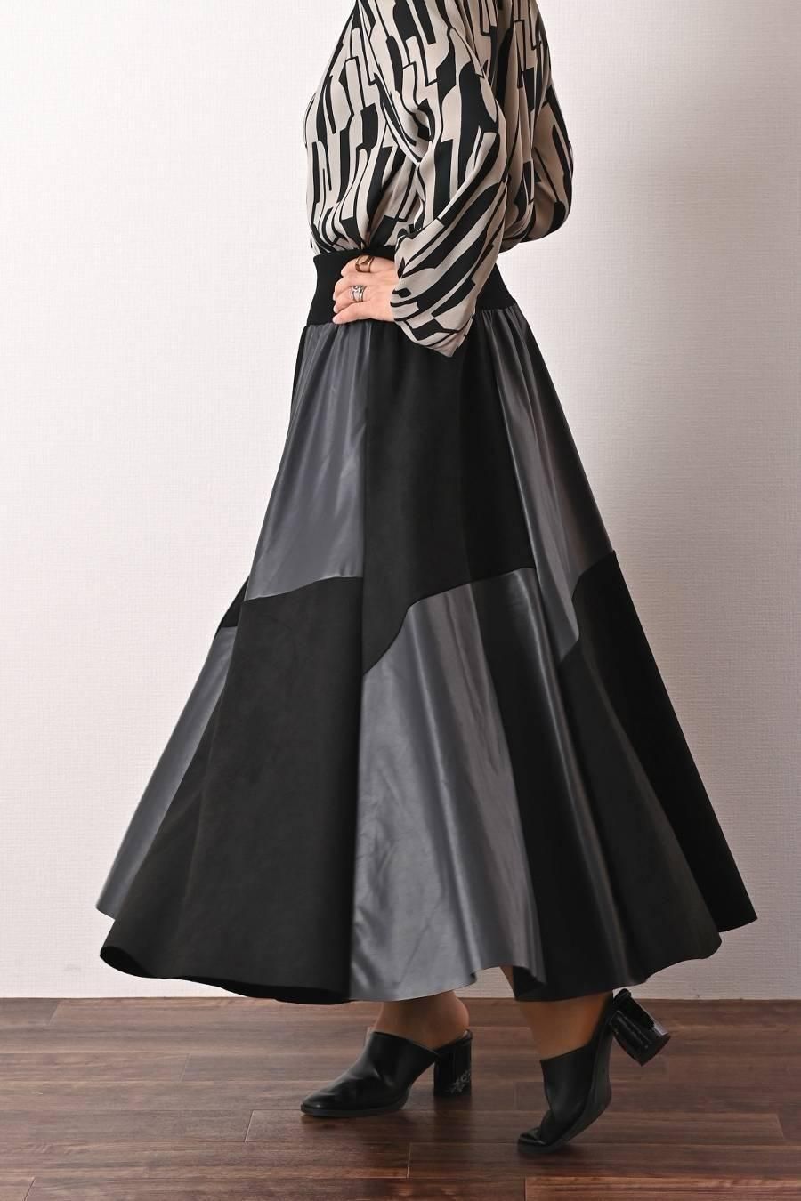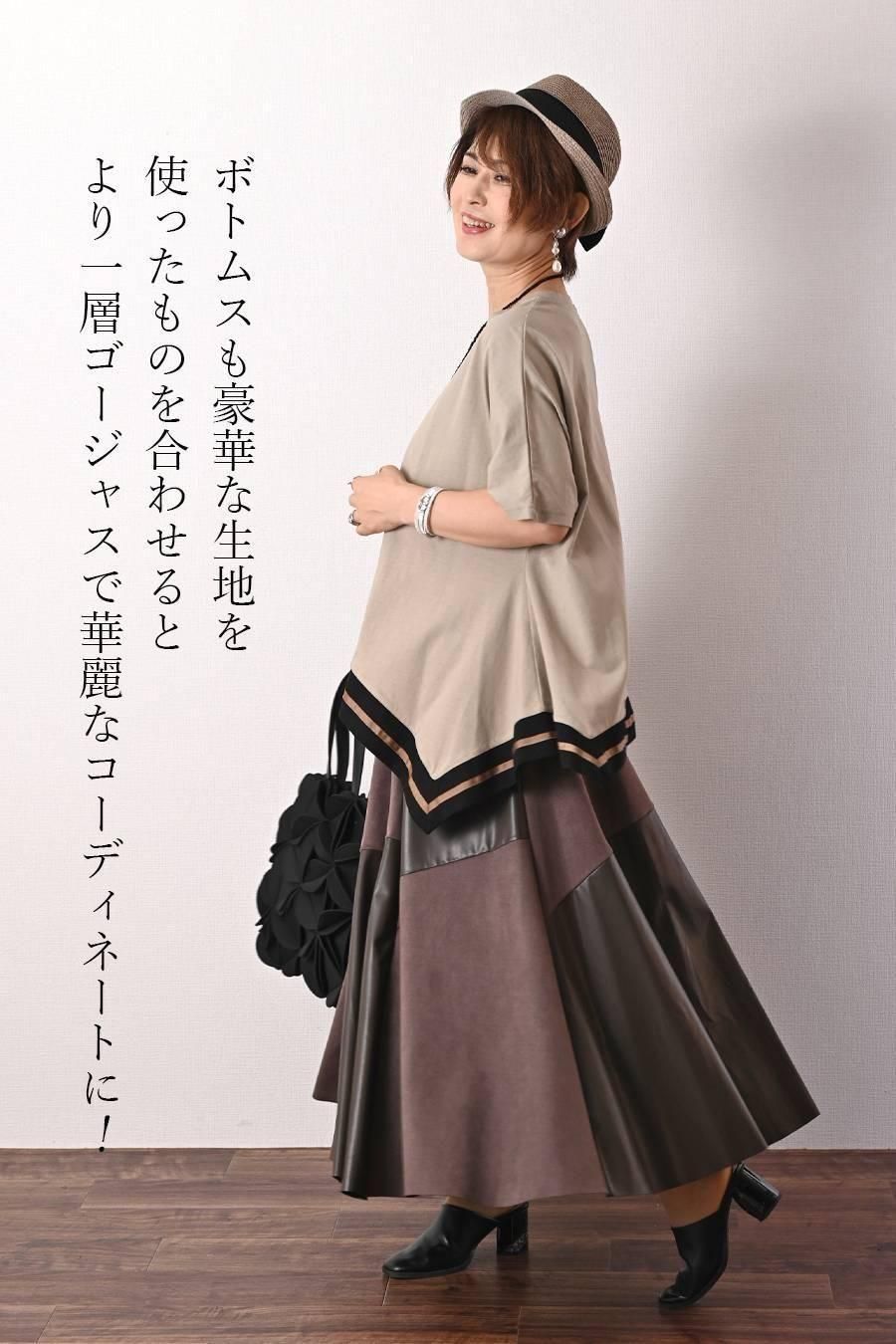 エコレザー&スエード切替えスカート+イレギュラーヘム裾切替えプルオーバー2点セット