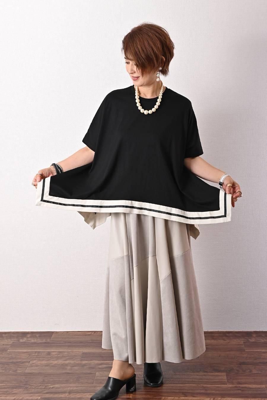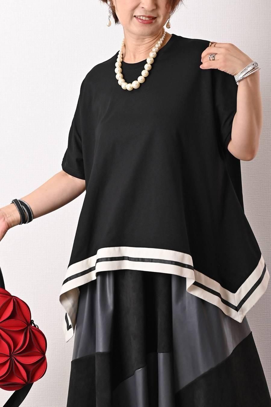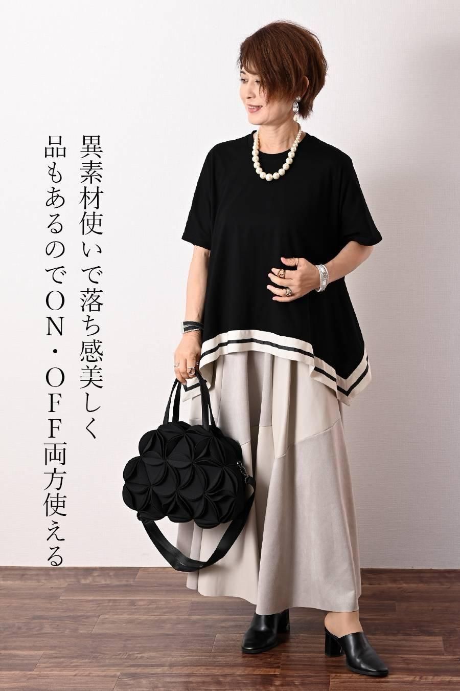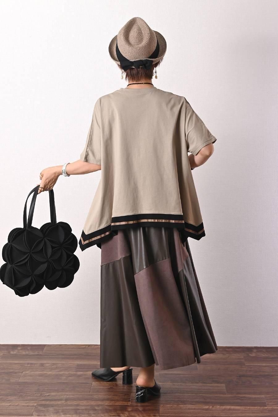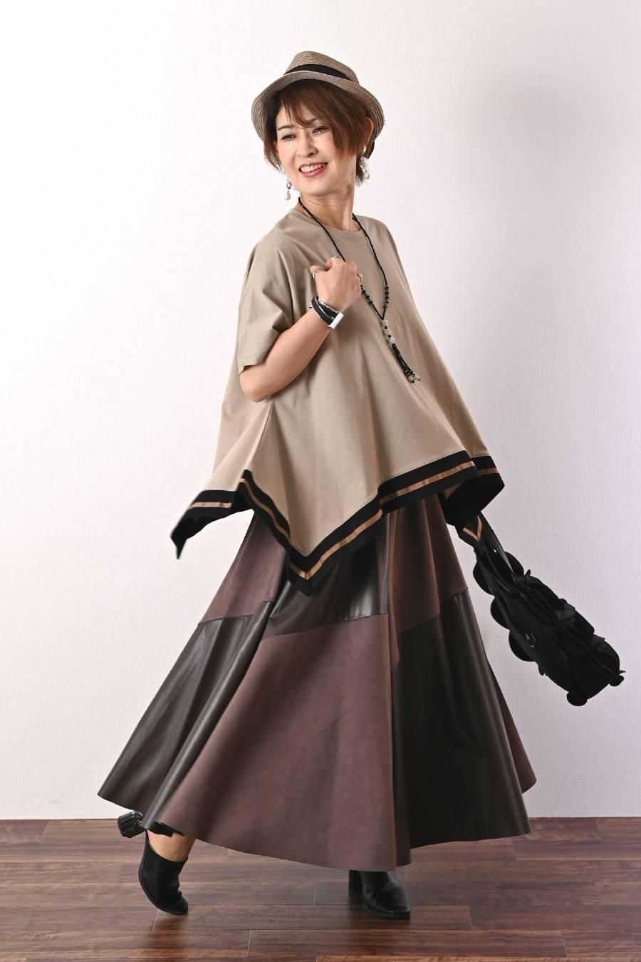 エコレザー&スエード切替えスカート+イレギュラーヘム裾切替えプルオーバー2点セット