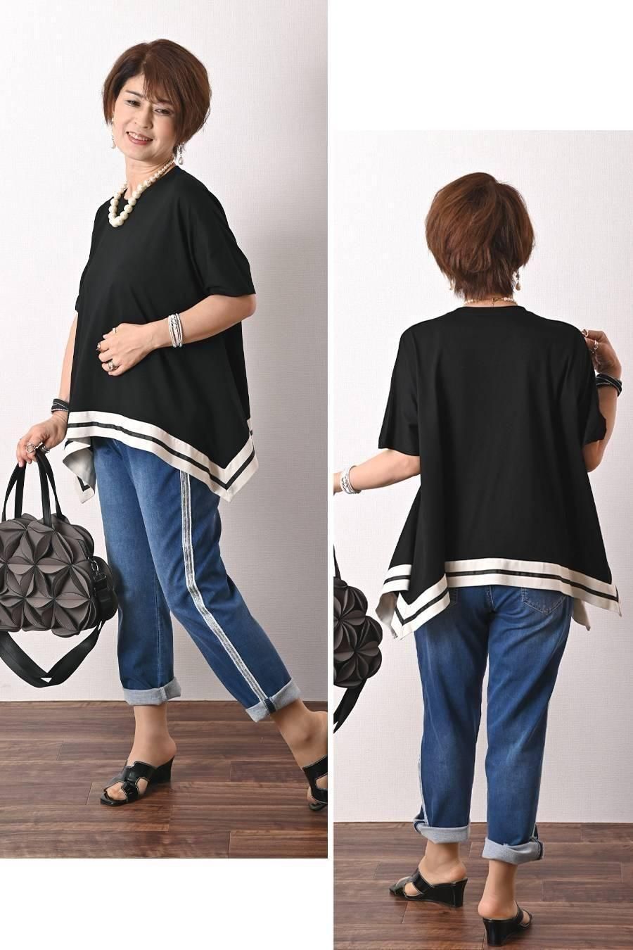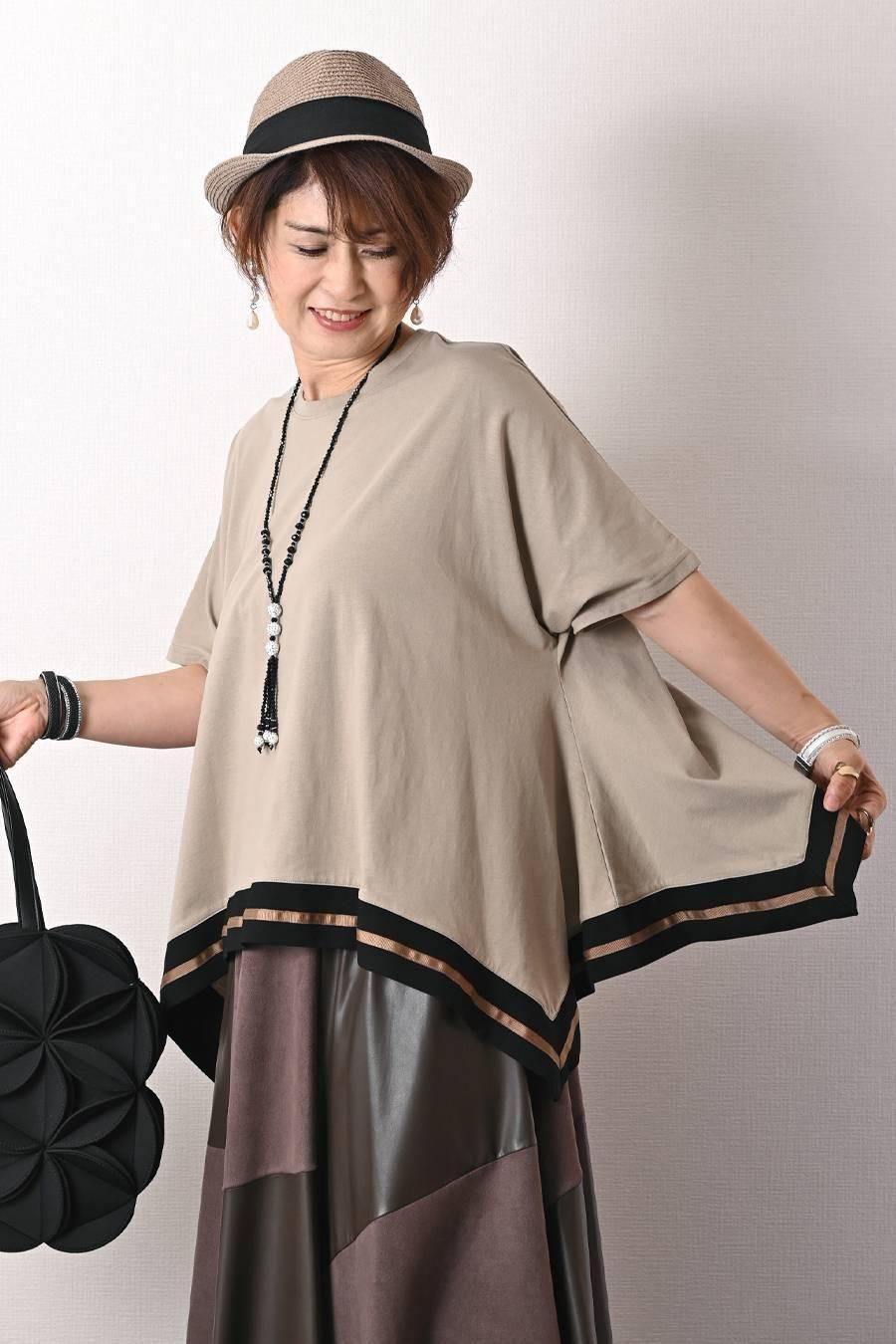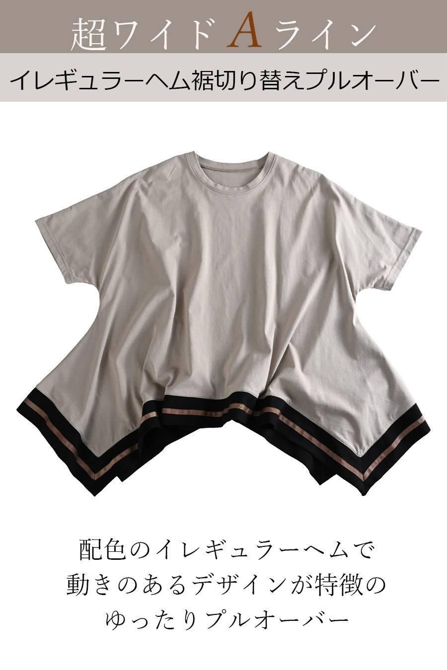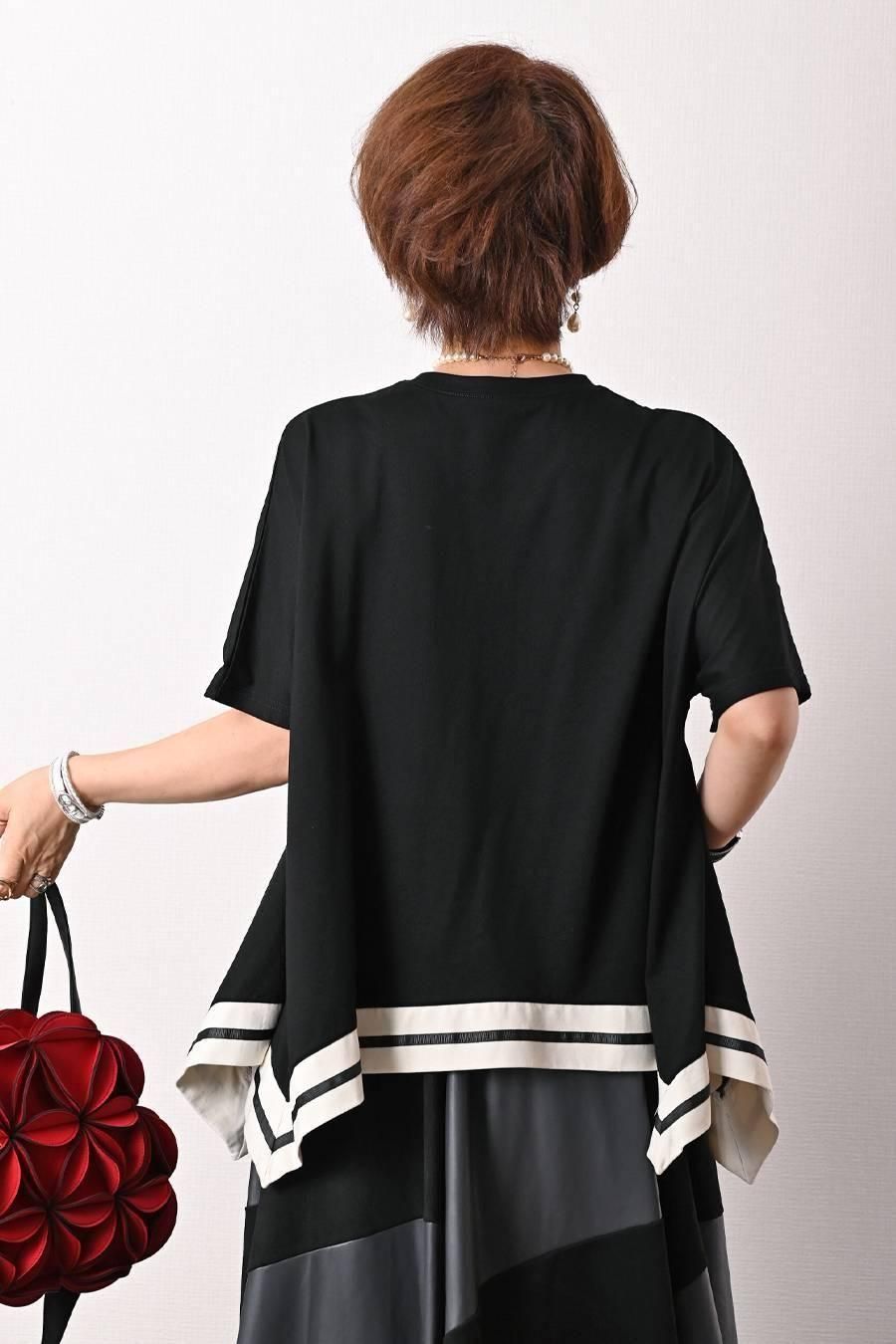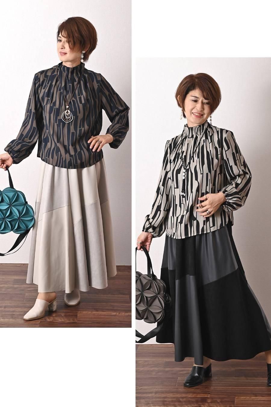 エコレザー&スエード切替えスカート+イレギュラーヘム裾切替えプルオーバー2点セット