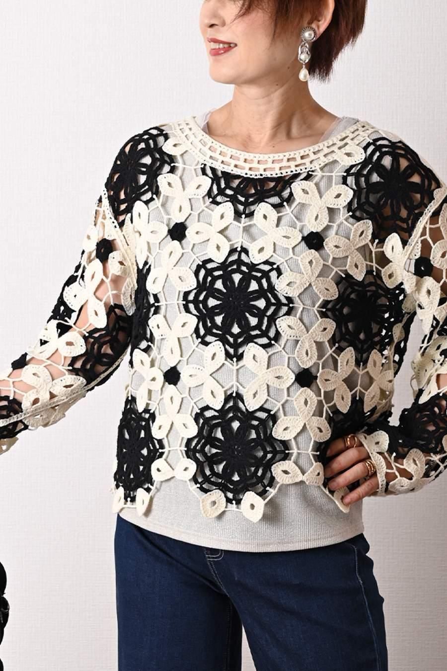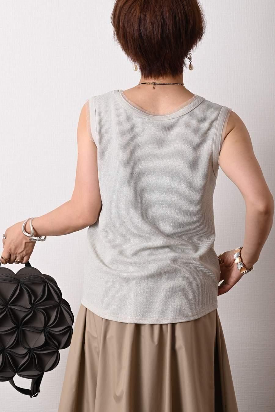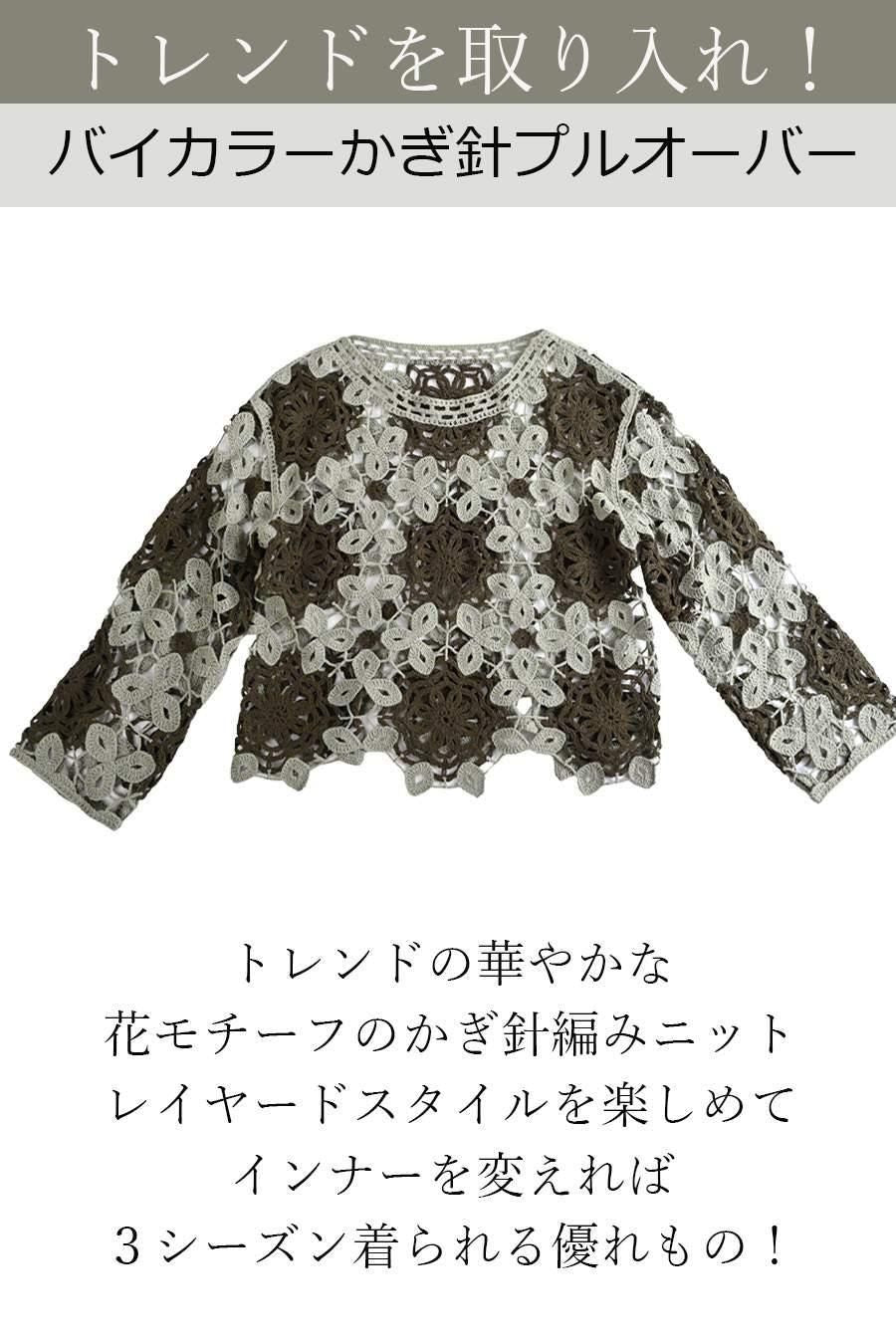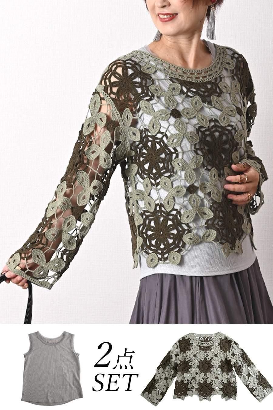 バイカラーかぎ針ニット+ラメタンクトップ2点セット<クーポンでメンバーPriceからMAX10%OFF>