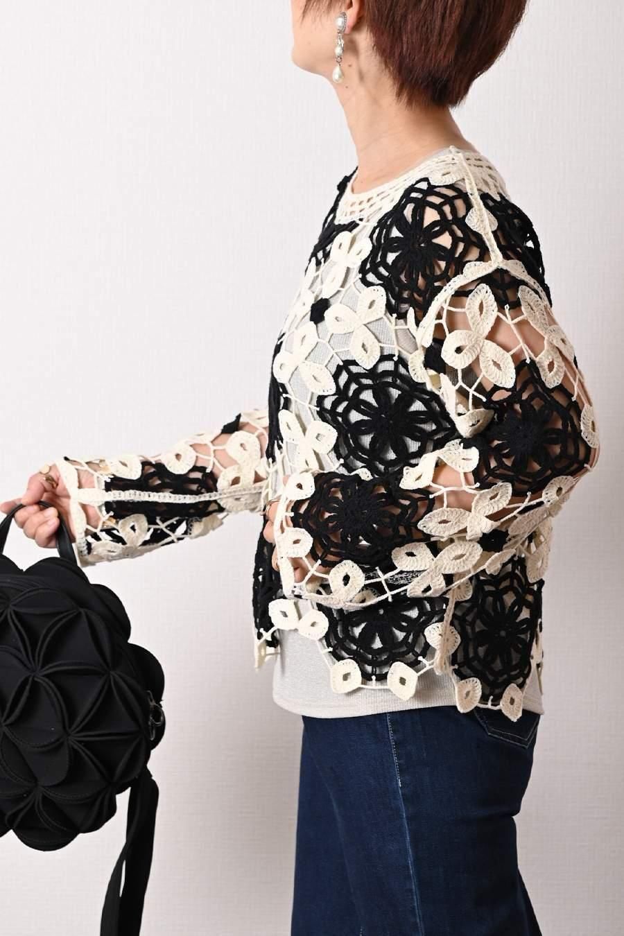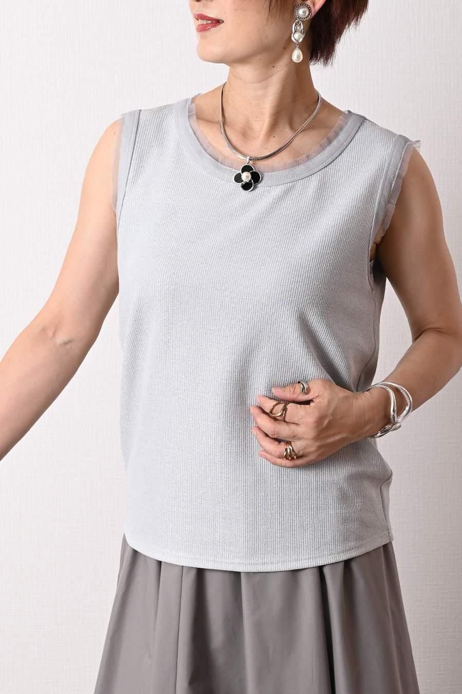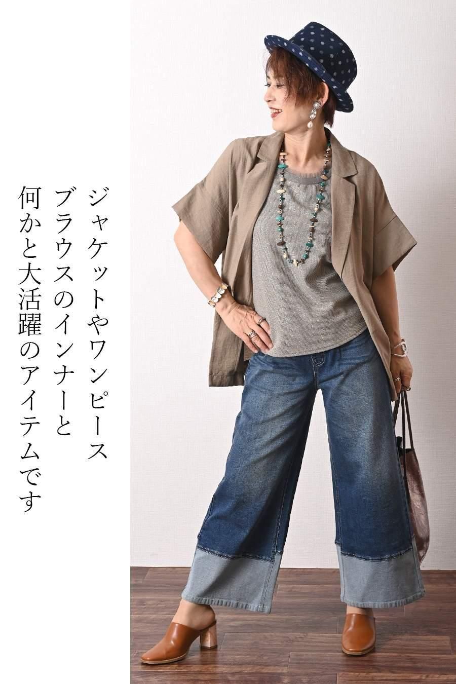 バイカラーかぎ針ニット+ラメタンクトップ2点セット<クーポンでメンバーPriceからMAX10%OFF>