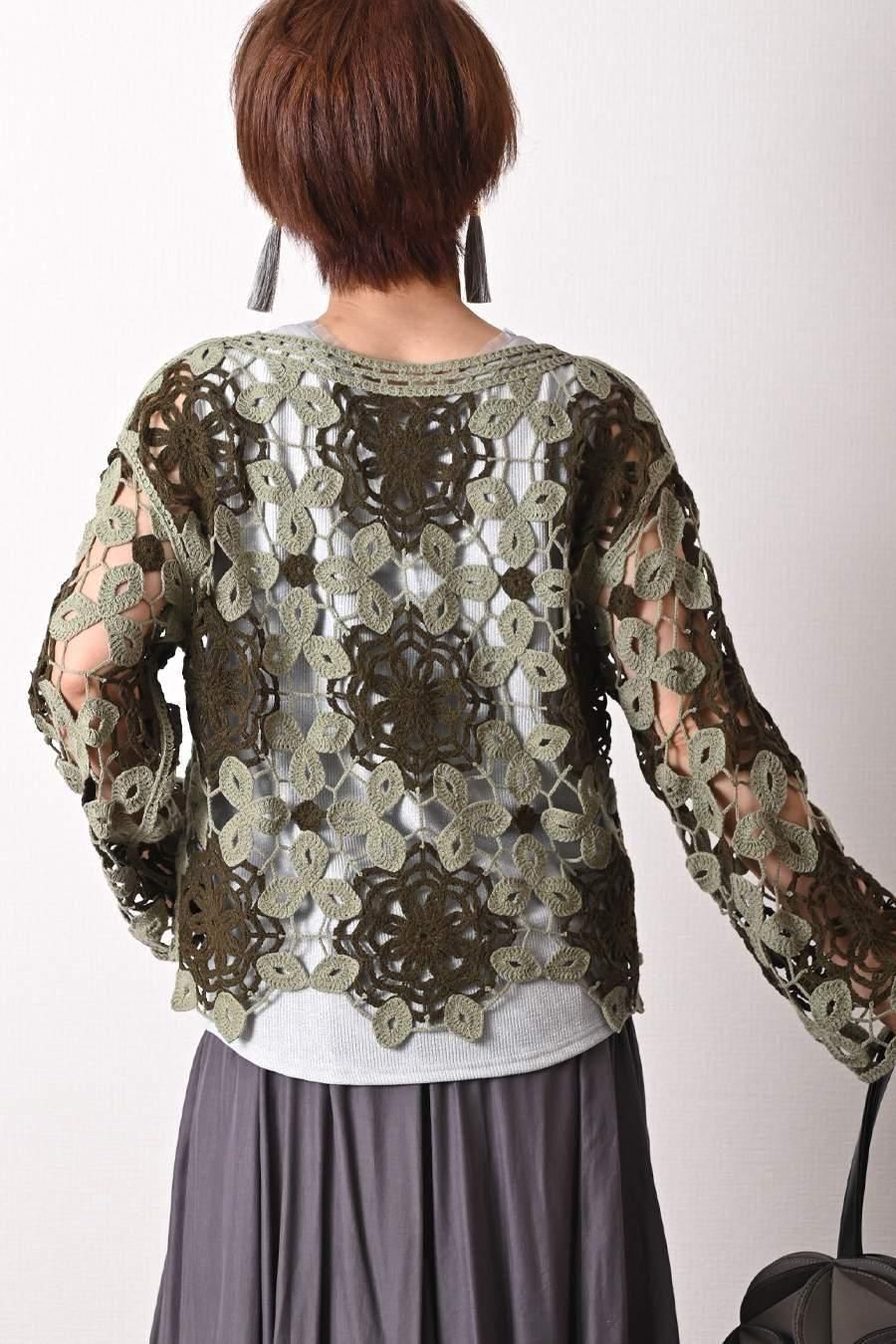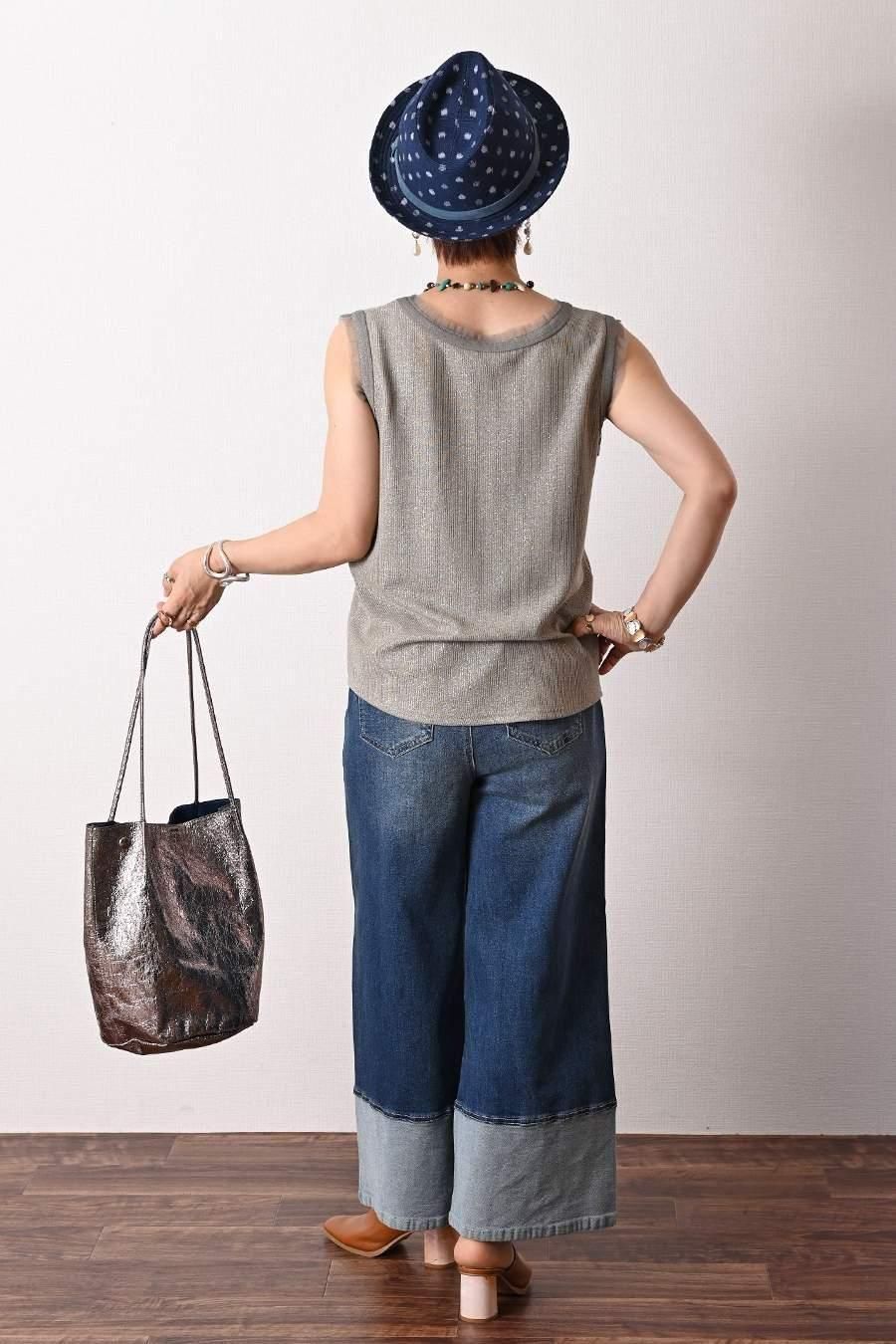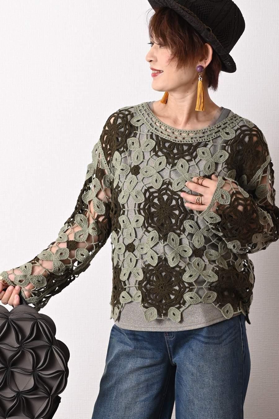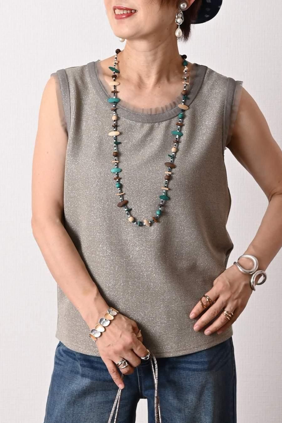 バイカラーかぎ針ニット+ラメタンクトップ2点セット<クーポンでメンバーPriceからMAX10%OFF>